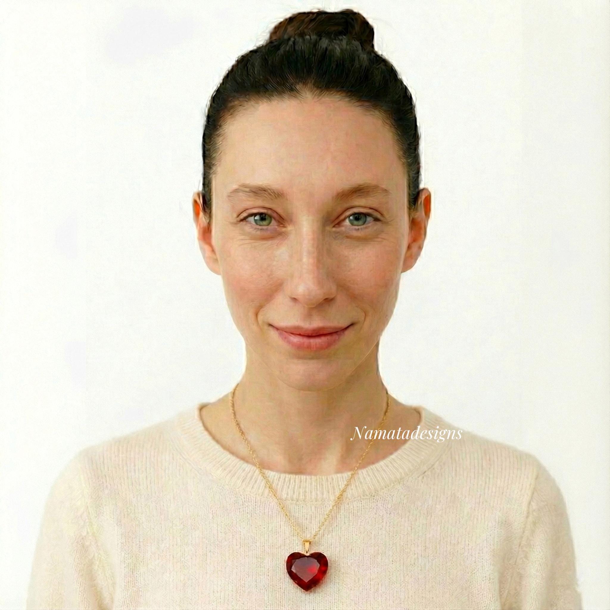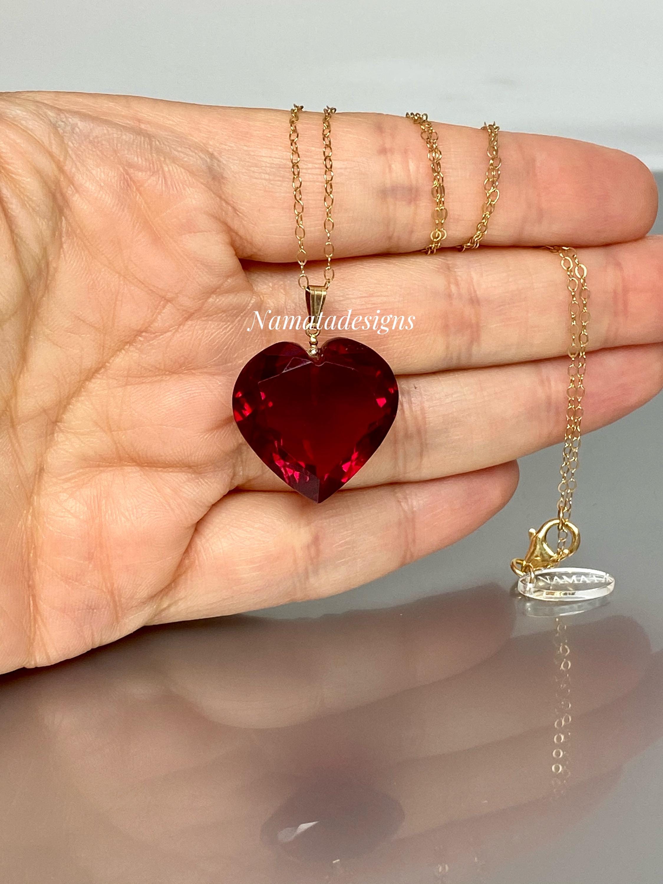 14K Gold Ruby Heart Necklace(17ct), Large Heart Pendant, Red Heart Pendant, Birthstone Necklace, Ruby Jewelry Gift For Her, Christmas Gifts