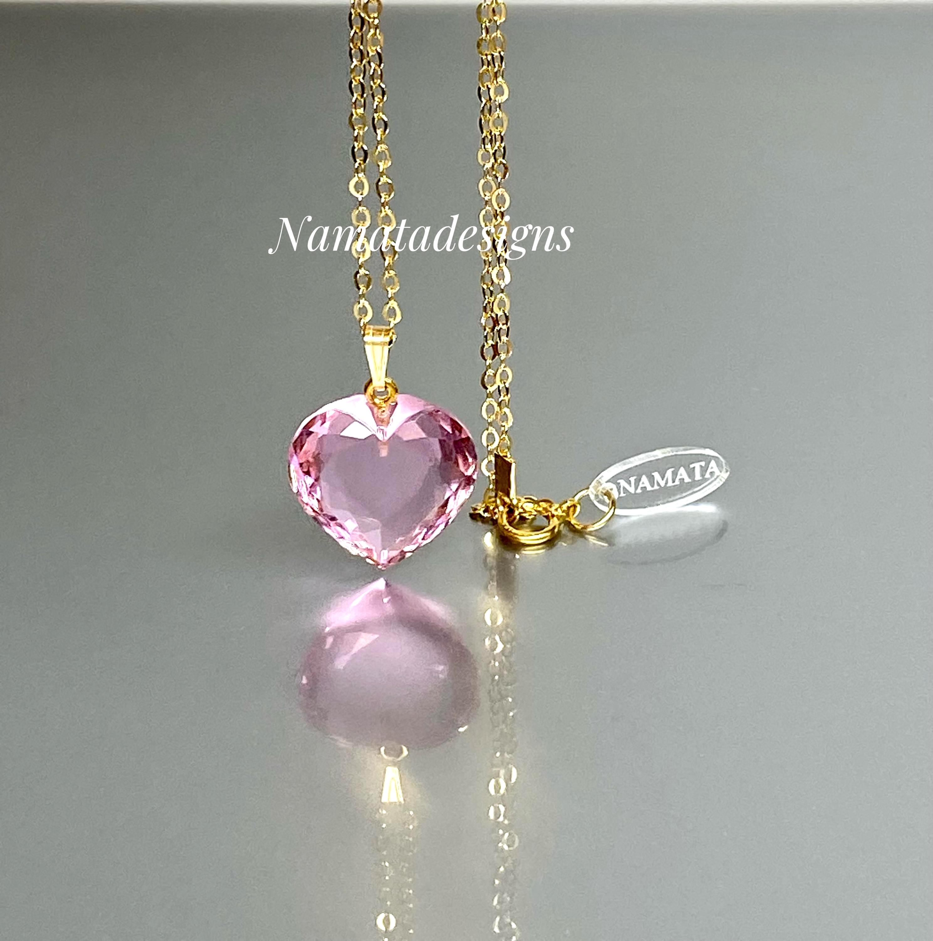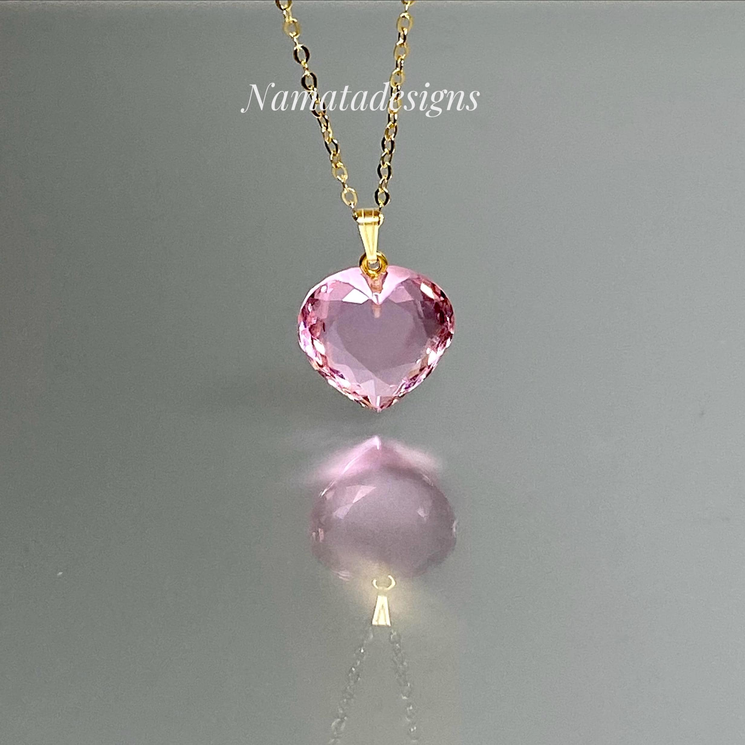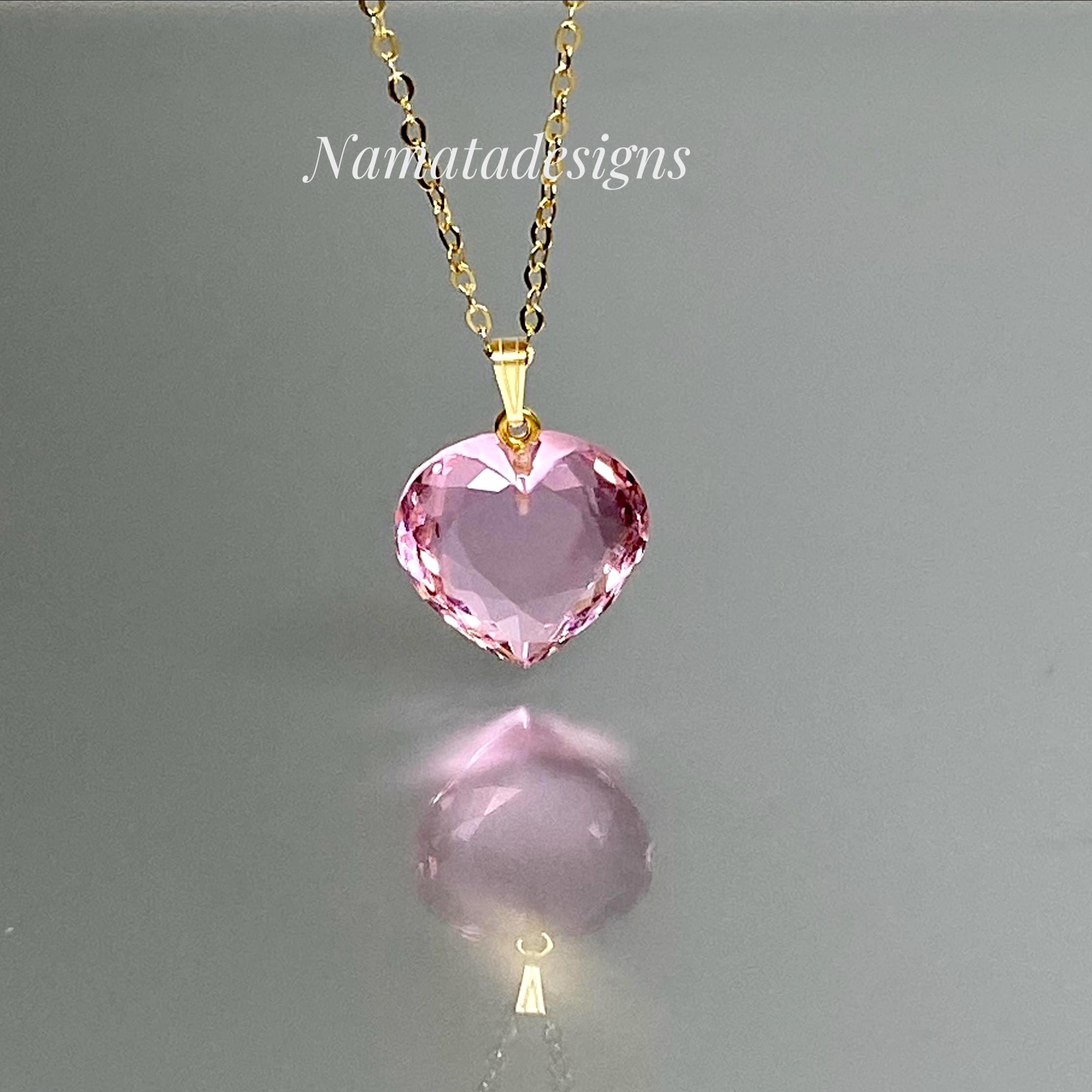 Fall in love with this sparkling pink topaz heart pendant, a perfect blend of elegance and charm. The faceted heart-shaped gemstone is flawlessly cut, revealing a soft, romantic pink hue that glows beautifully with every movement. Its brilliance and depth give the stone a luxurious, high-end feel.