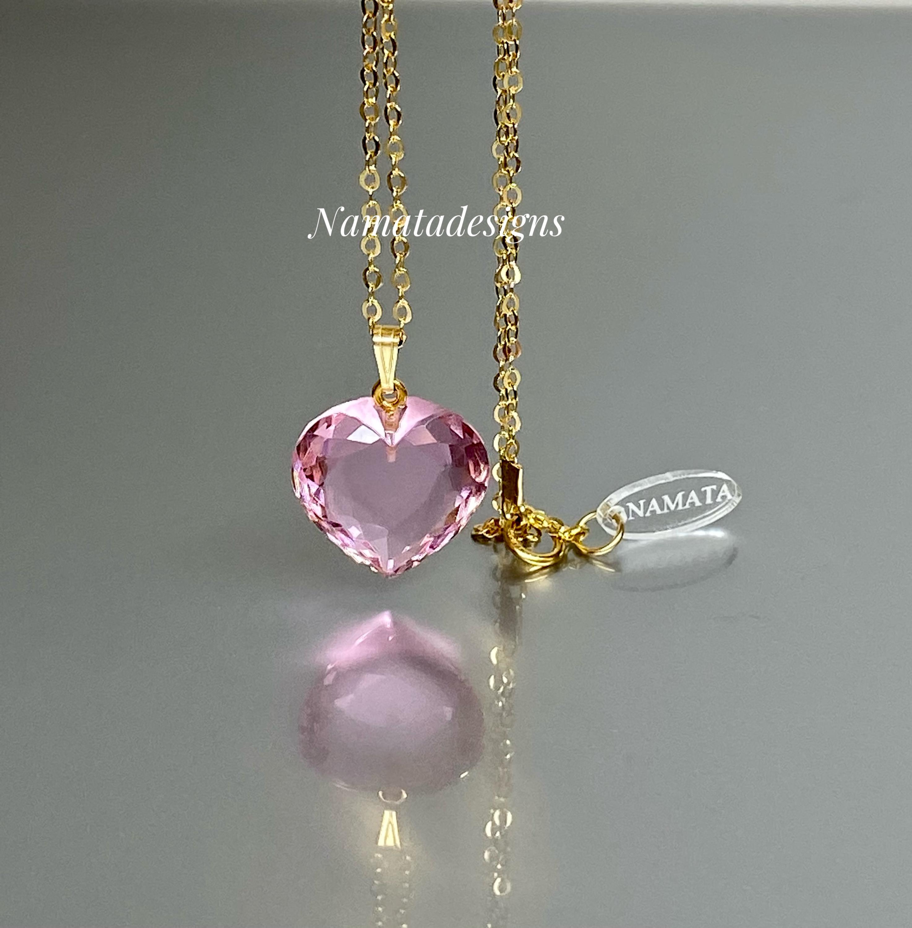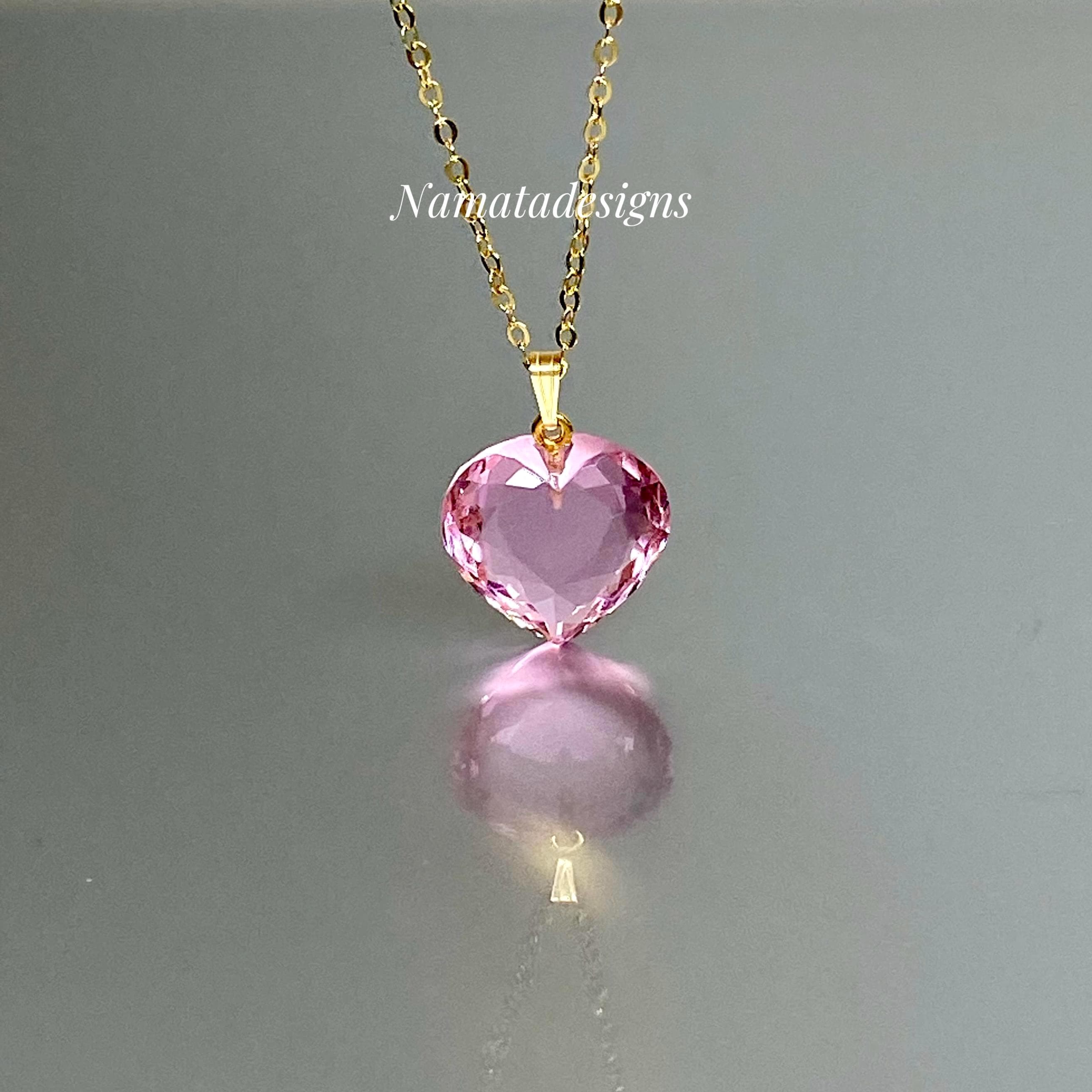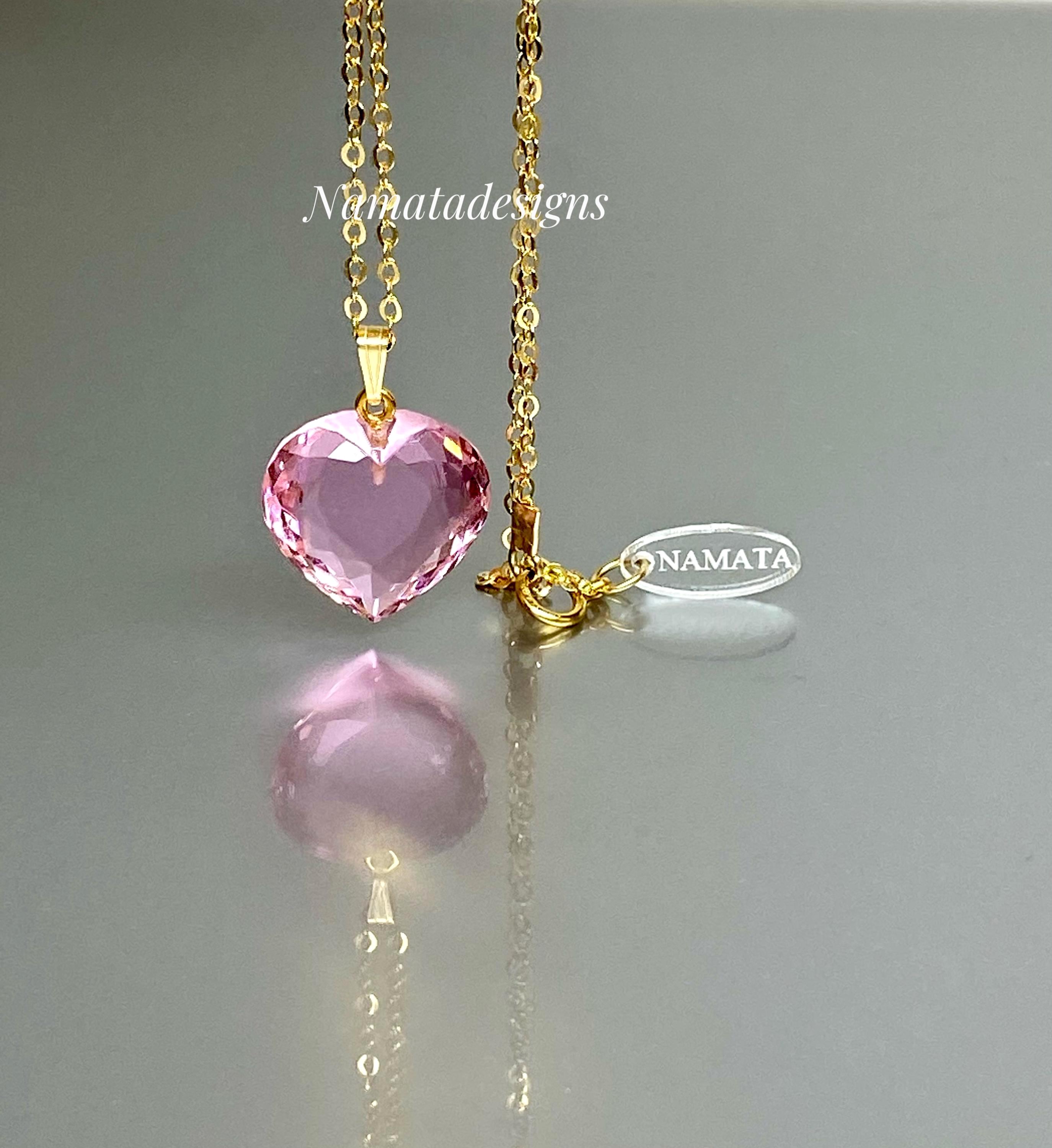 Fall in love with this sparkling pink topaz heart pendant, a perfect blend of elegance and charm. The faceted heart-shaped gemstone is flawlessly cut, revealing a soft, romantic pink hue that glows beautifully with every movement. Its brilliance and depth give the stone a luxurious, high-end feel.