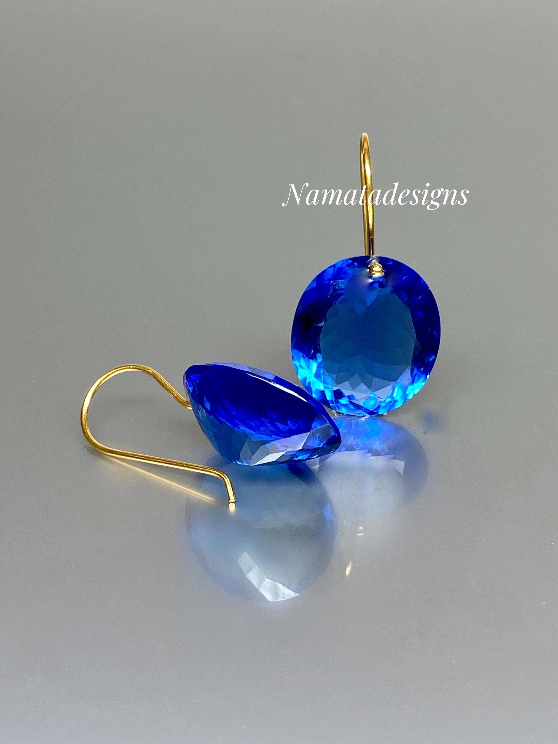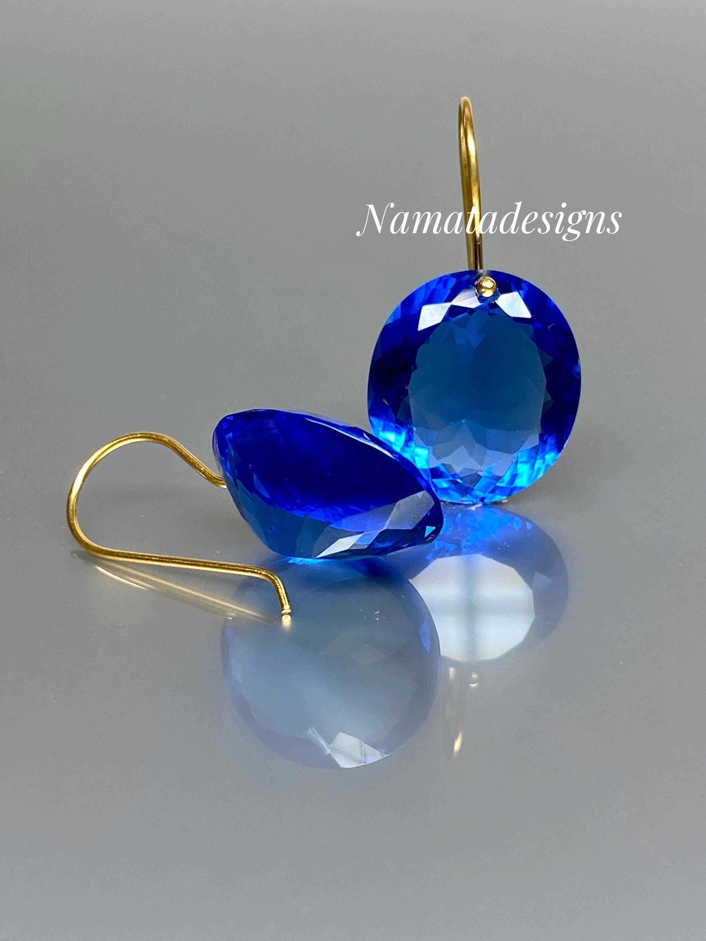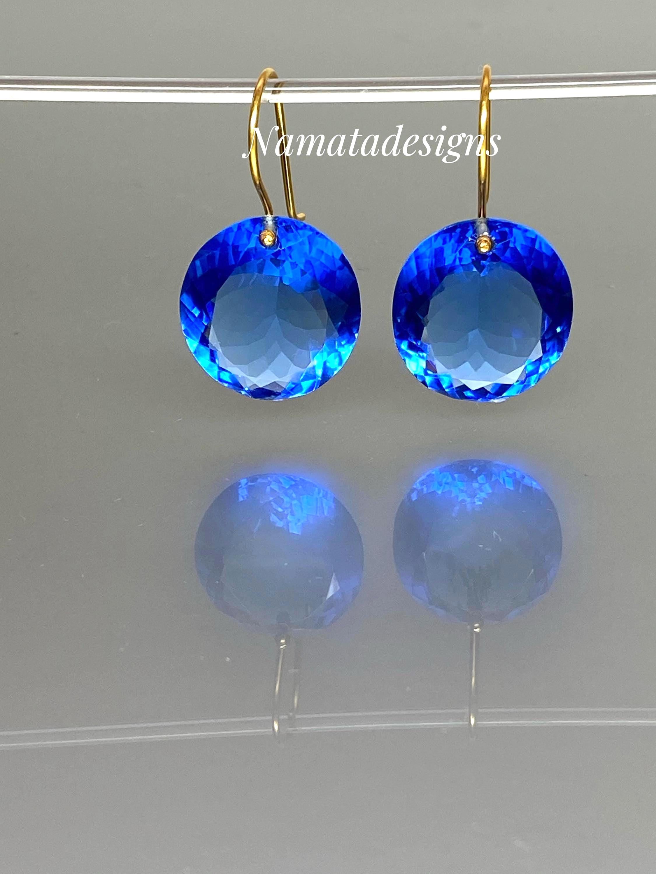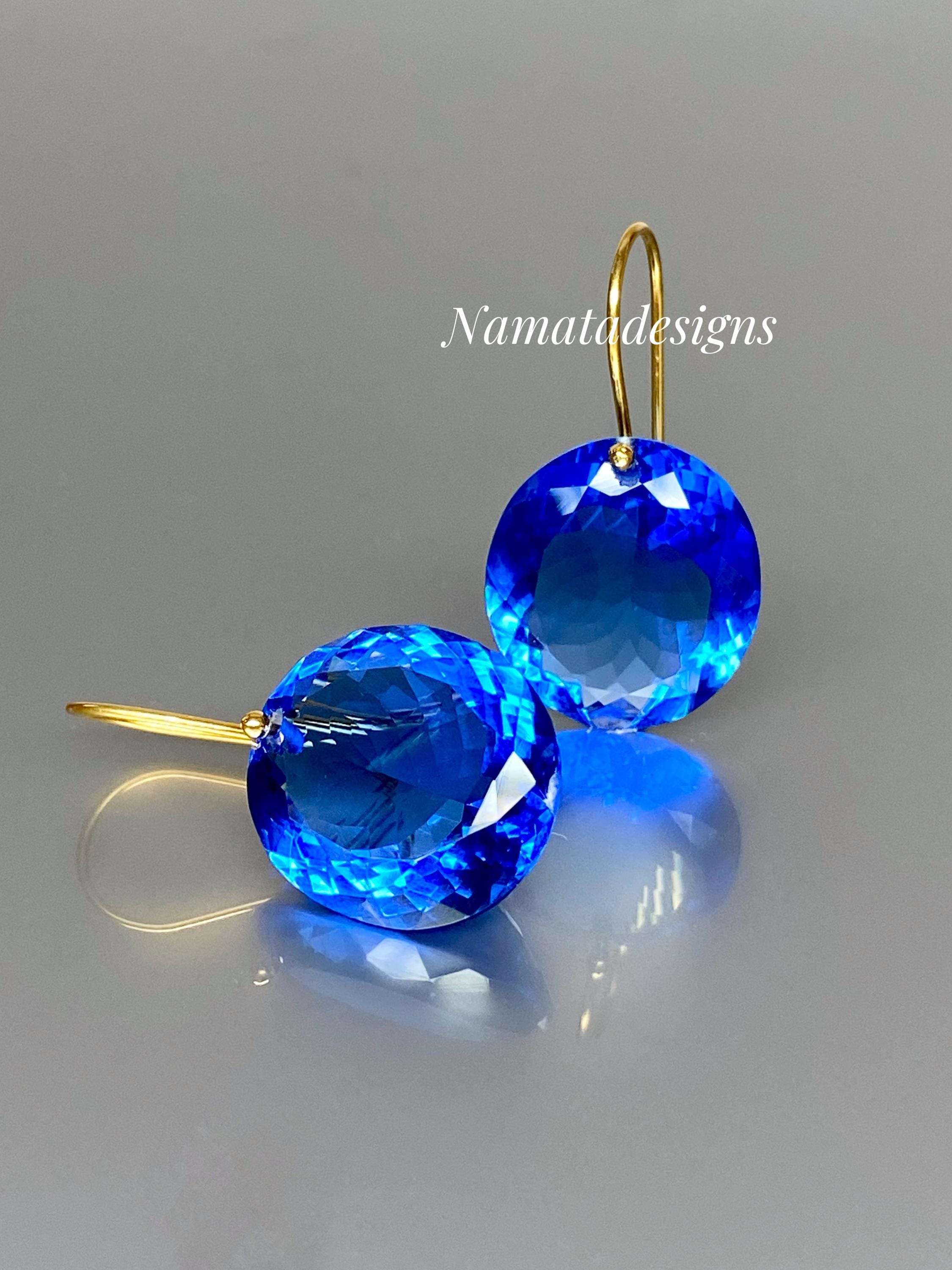 Gorgeous sparkly Swiss Blue Topaz earrings. The Faceted oval drops are flawless and eye-clean and have a beautiful vivid clear deep blue color. The earrings are elegant and bold and make a statement.