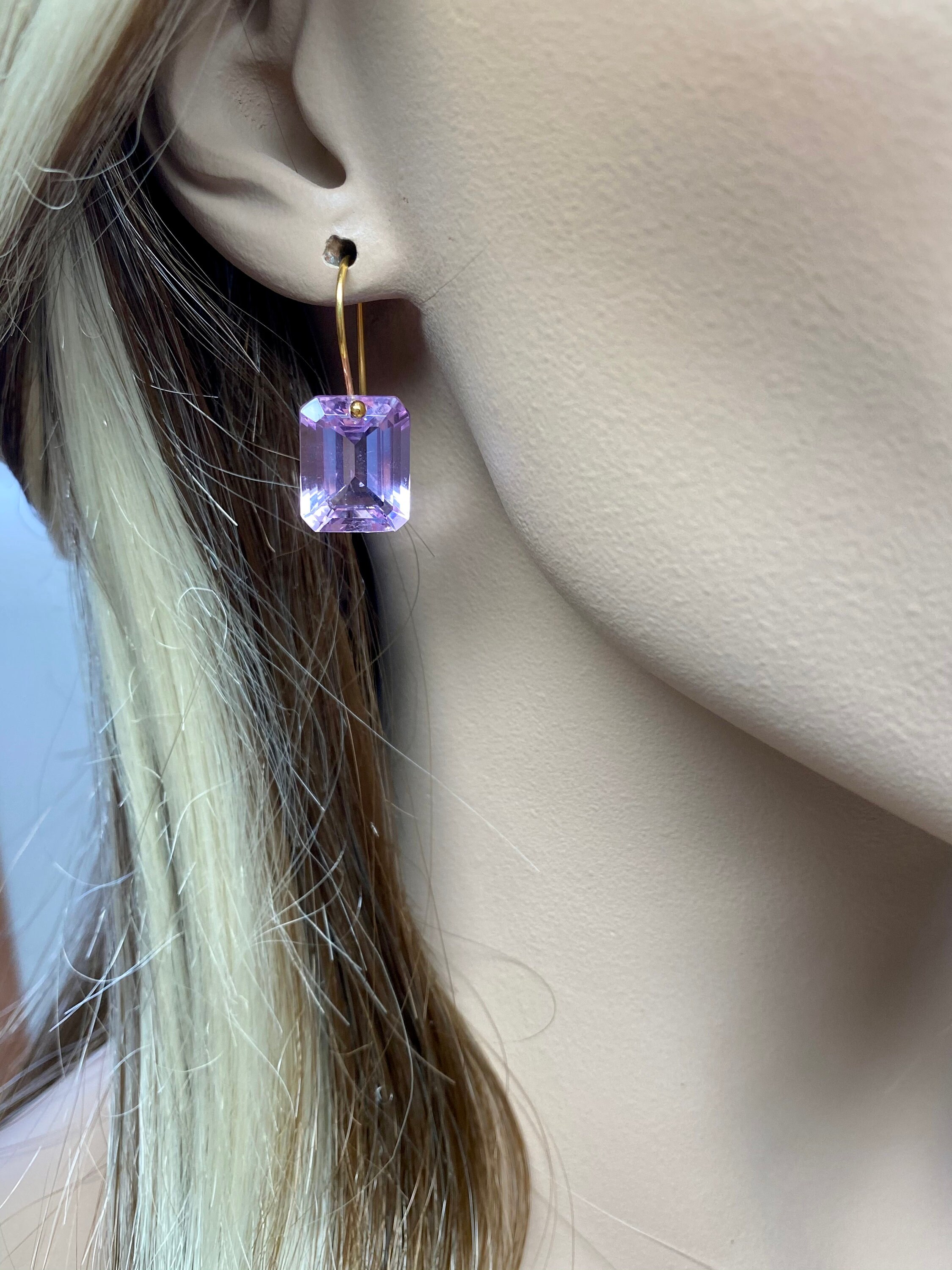 When 14K SOLID GOLD ear wires are being used, the ear wire ends are hand-stamped as proof of being 14K solid gold. In addition, extra work was done at the end of the ear wires to prevent any sort of pain or injury while inserting them through the ear lobes.
