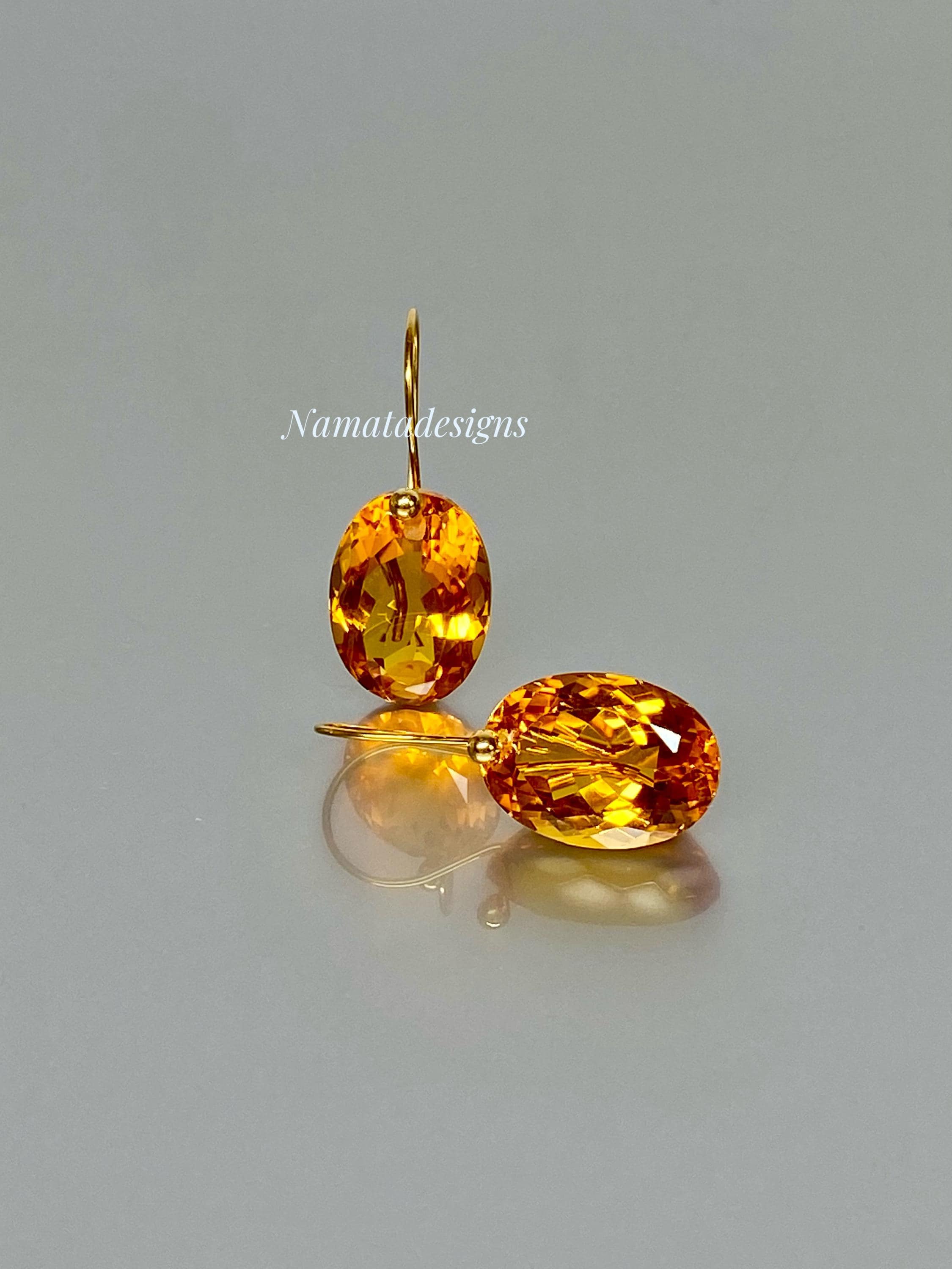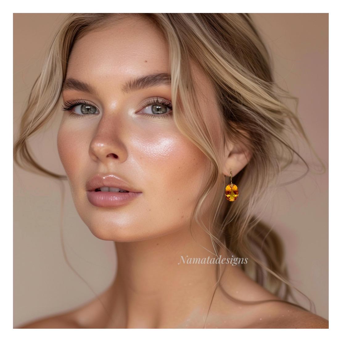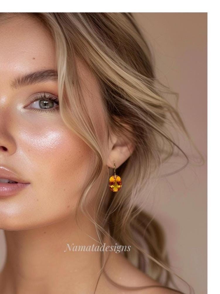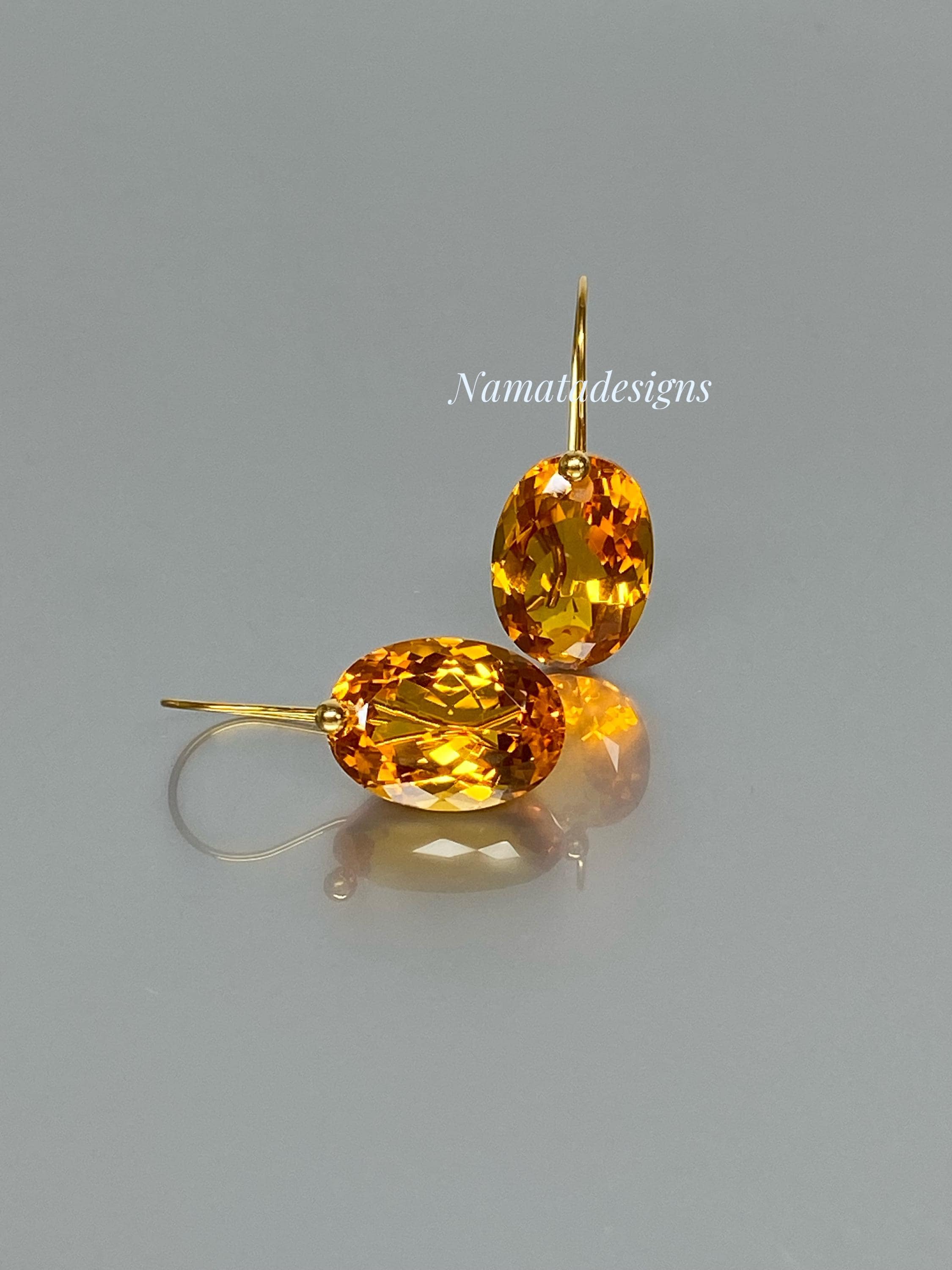 Exquisite earrings featuring faceted Citrine oval-shaped drops. The flawless citrine drops showcase stunning rich golden hues, suspended elegantly from 24K gold vermeil / 14K/18K SOLID GOLD ear wires. These earrings radiate sophistication and boast a luxurious aesthetic.