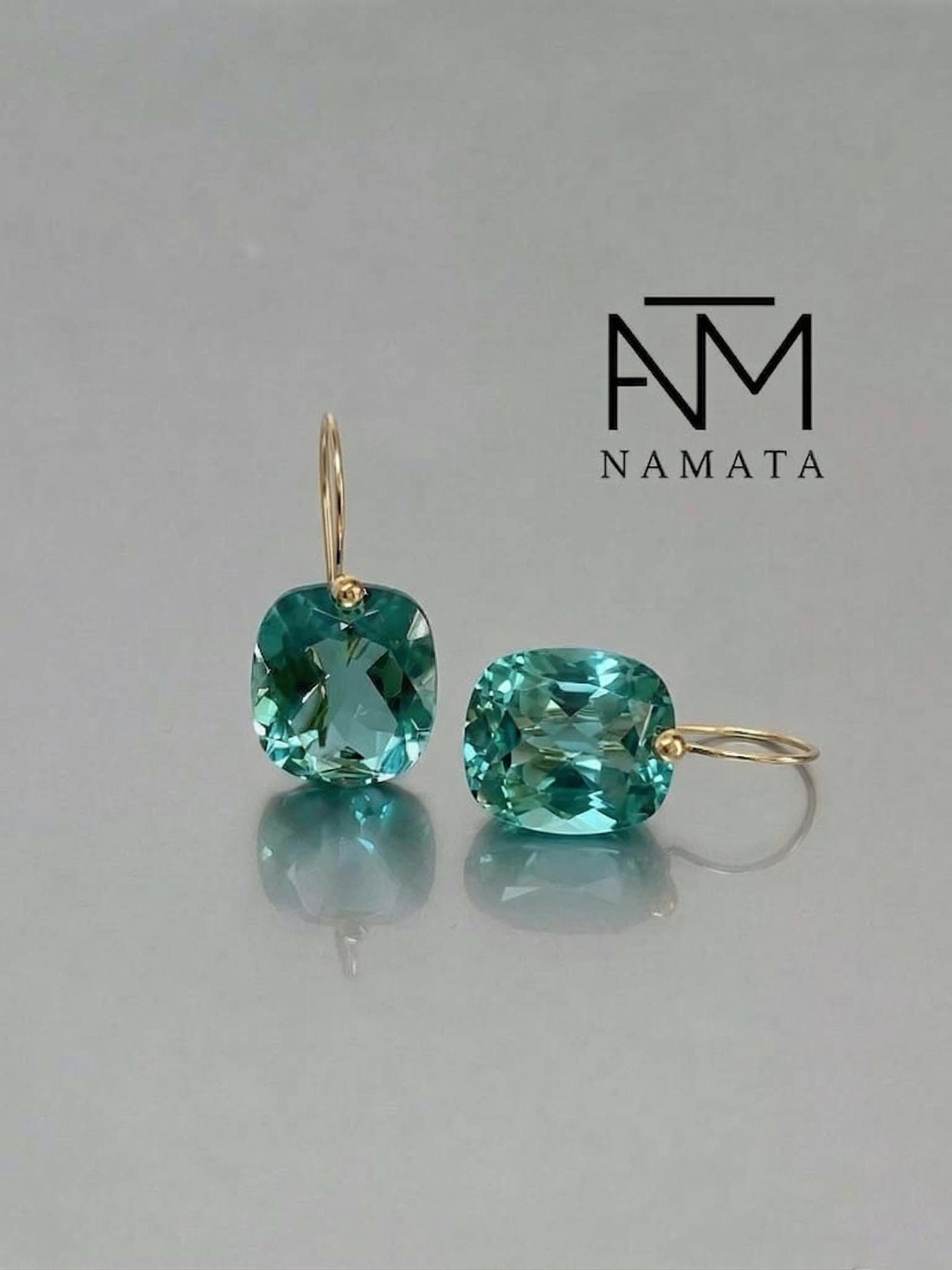 Beautiful Paraiba tourmaline earrings in Brilliant drops. The faceted rectangle drops have a gorgeous ocean blue color that brings lots of depth to the stone and reflects light beautifully. The fancy drops are attached to 24K Gold Vermeil/14K SOLID GOLD ear wires.