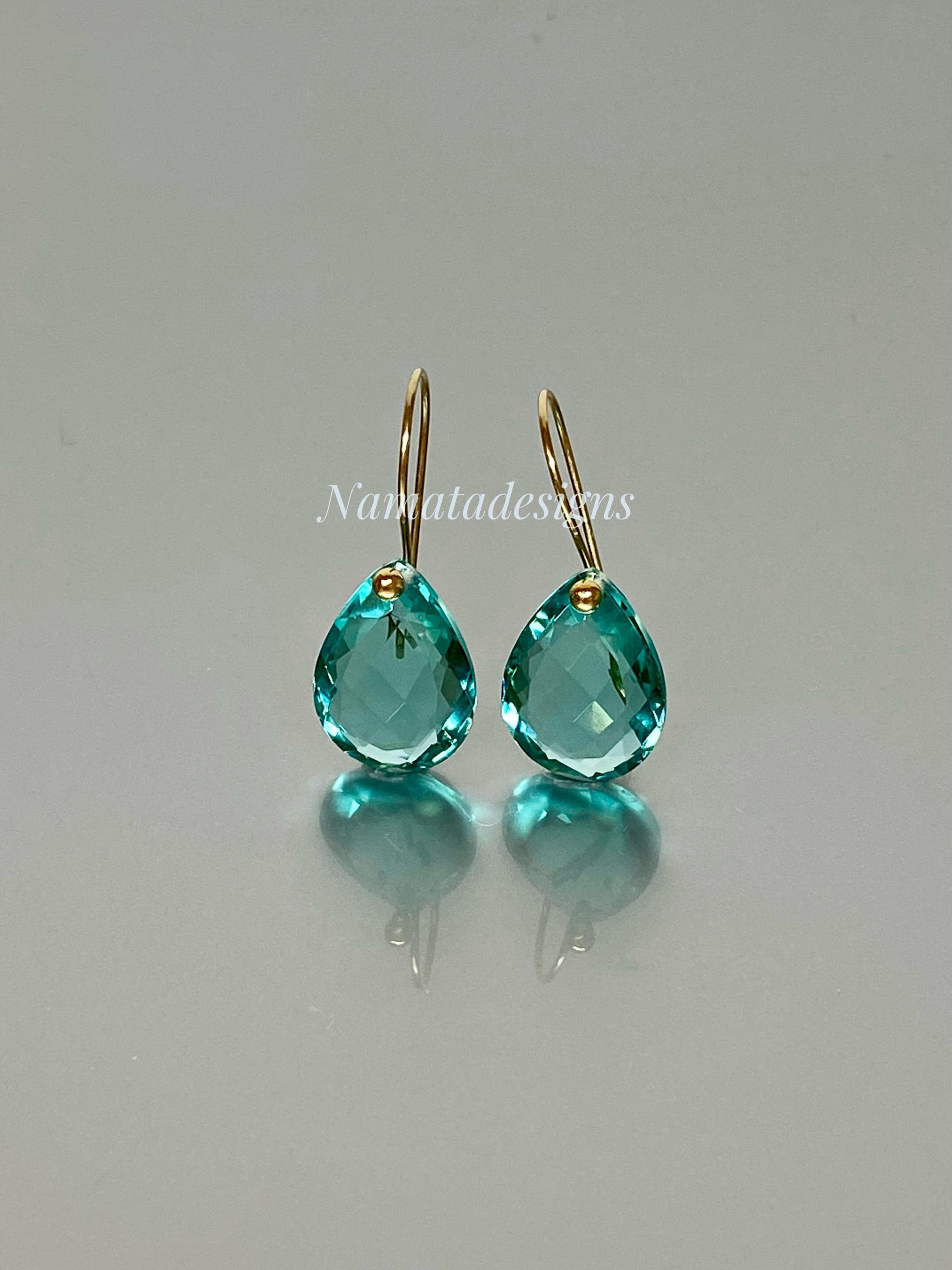 Gold Teardrop Paraiba Tourmaline Drop Earrings (22 ct), Blue-Green Tourmaline Earrings, Tourmaline Jewelry, Holiday Gifts For Her