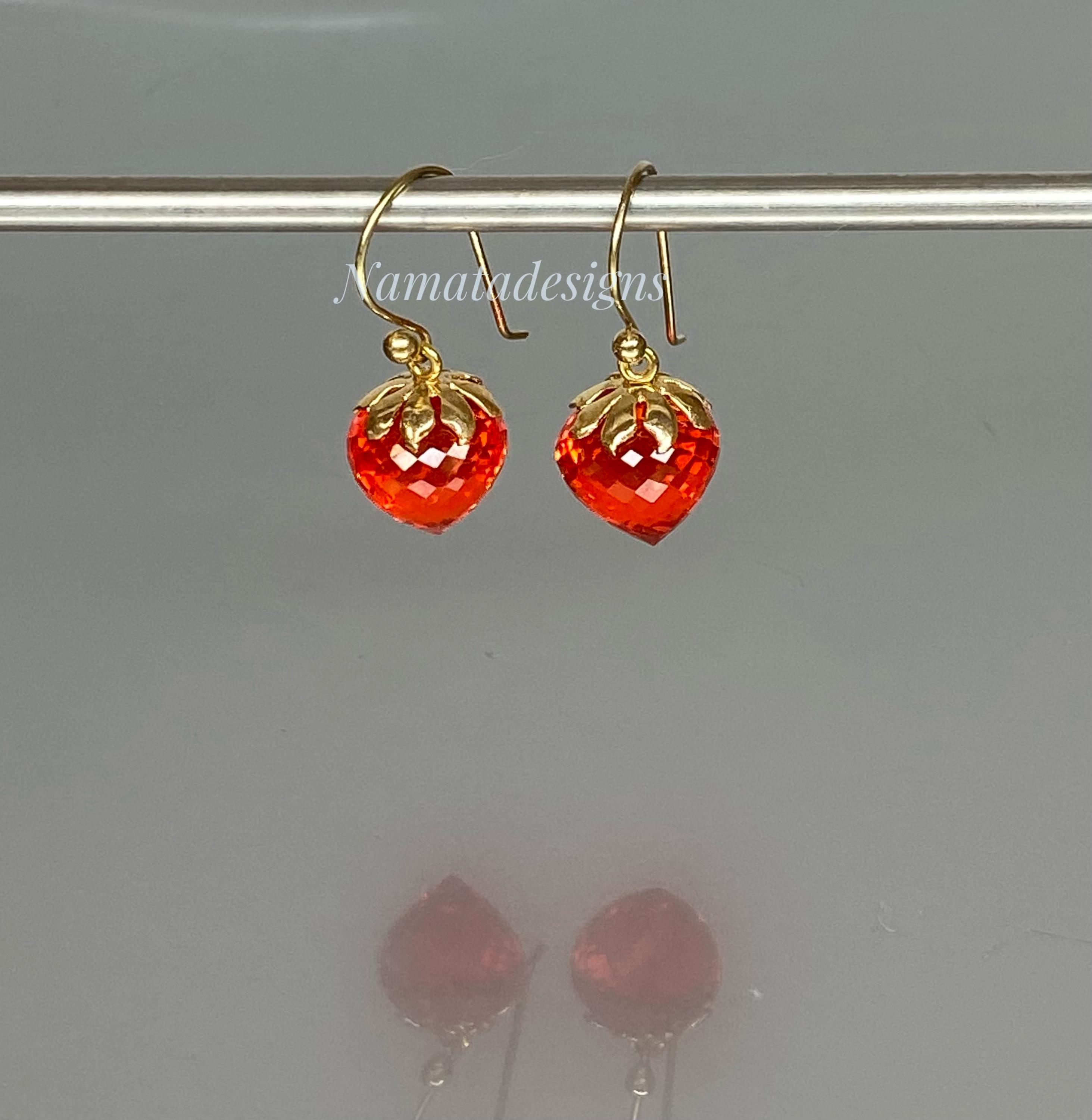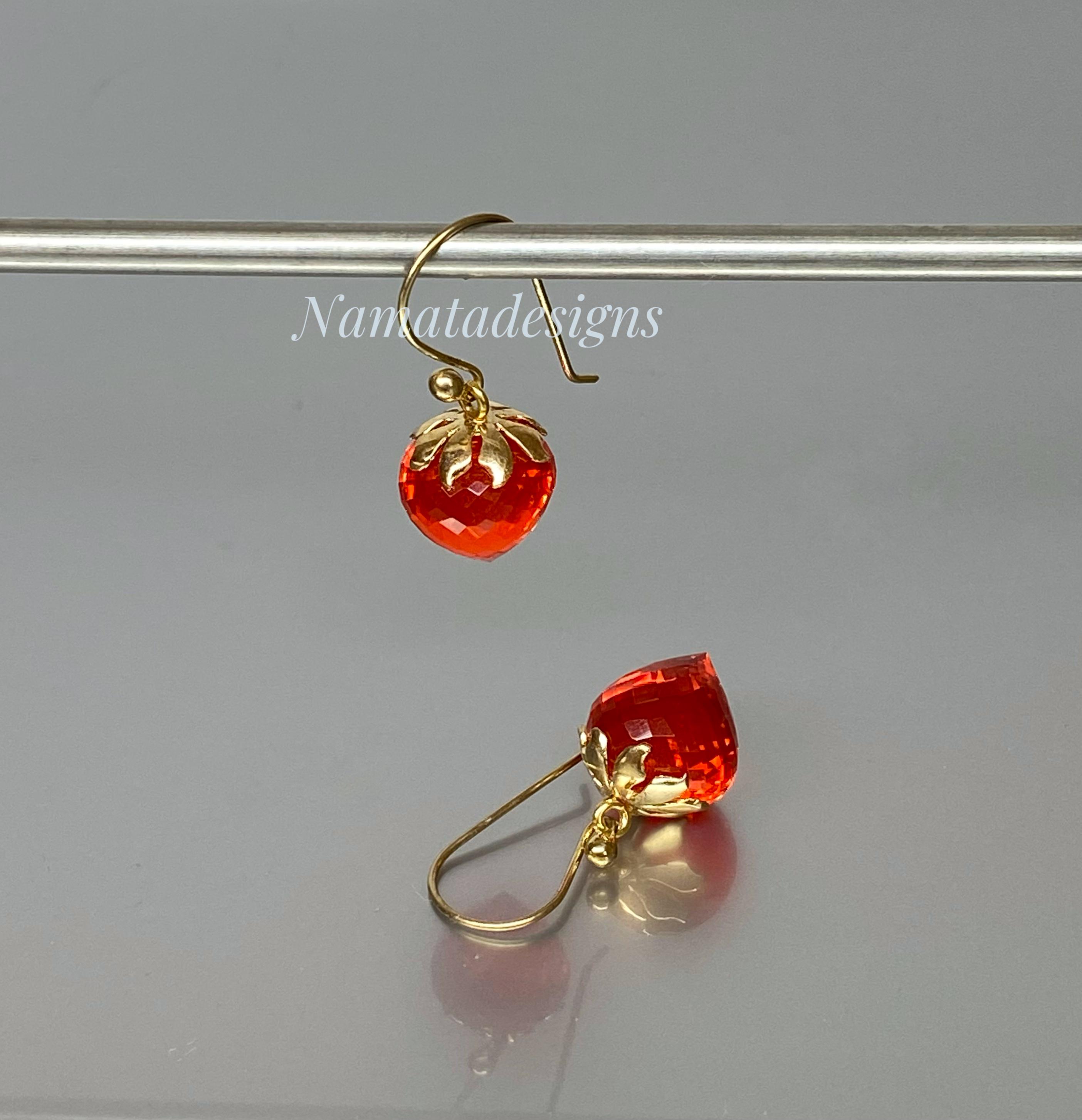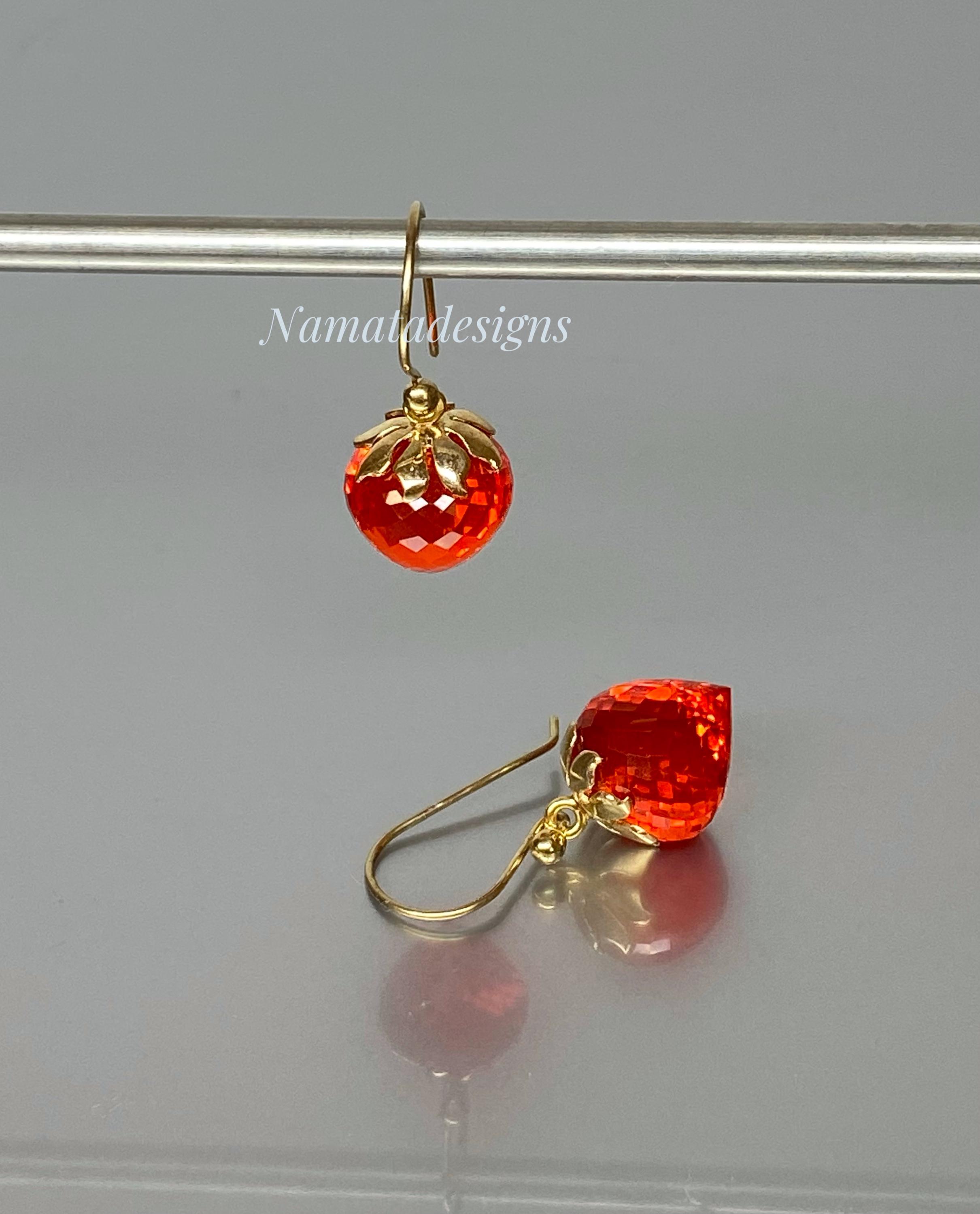 Sparkling with fiery brilliance, these fire opal inverted teardrop earrings glow in an intense flame-orange hue — a color that captures warmth, passion, and light.