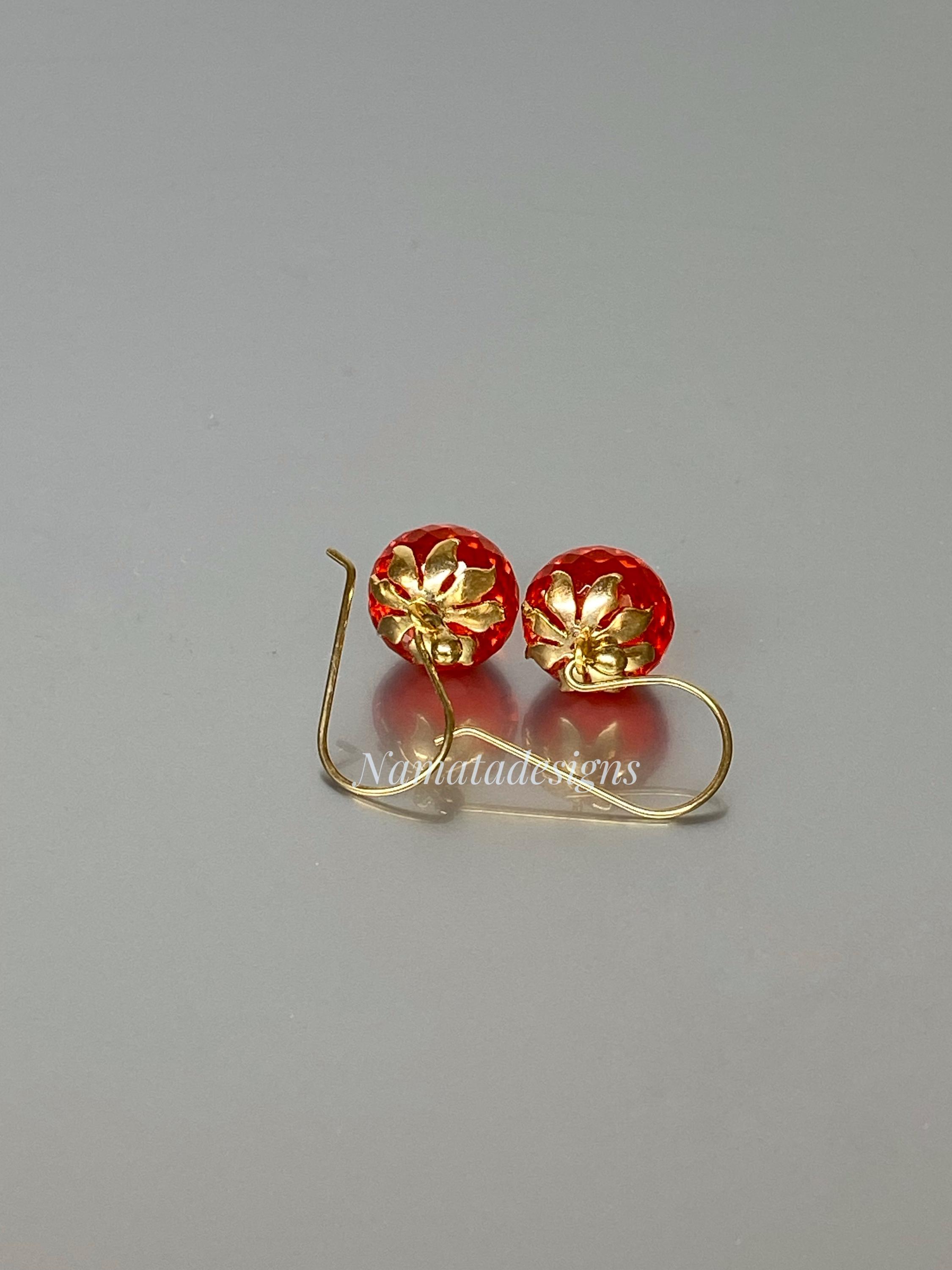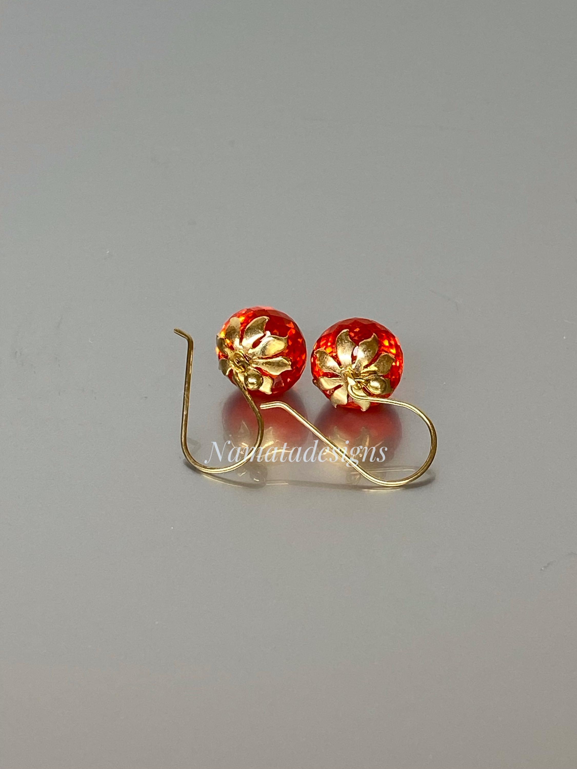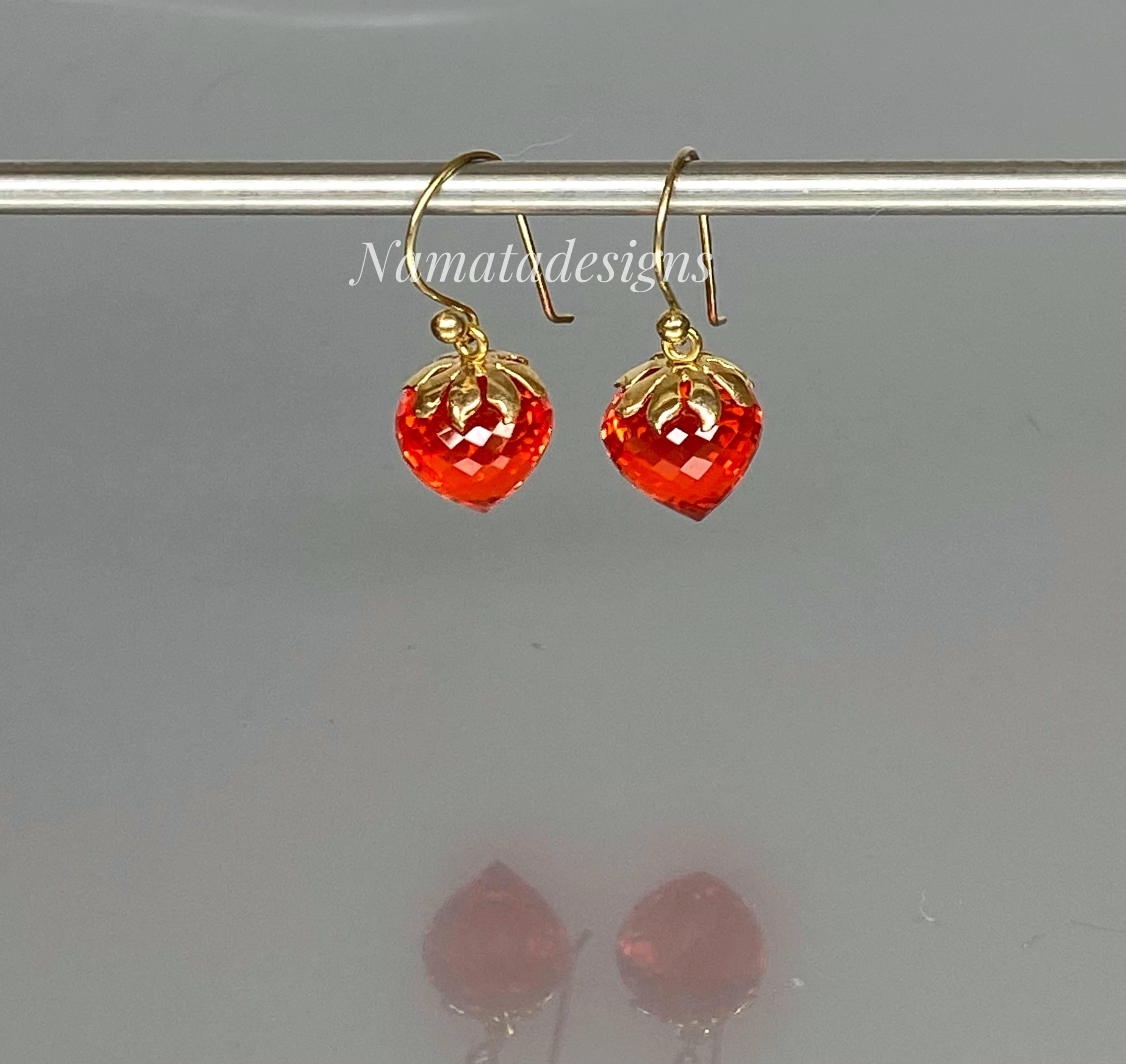 Sparkling with fiery brilliance, these fire opal inverted teardrop earrings glow in an intense flame-orange hue — a color that captures warmth, passion, and light.