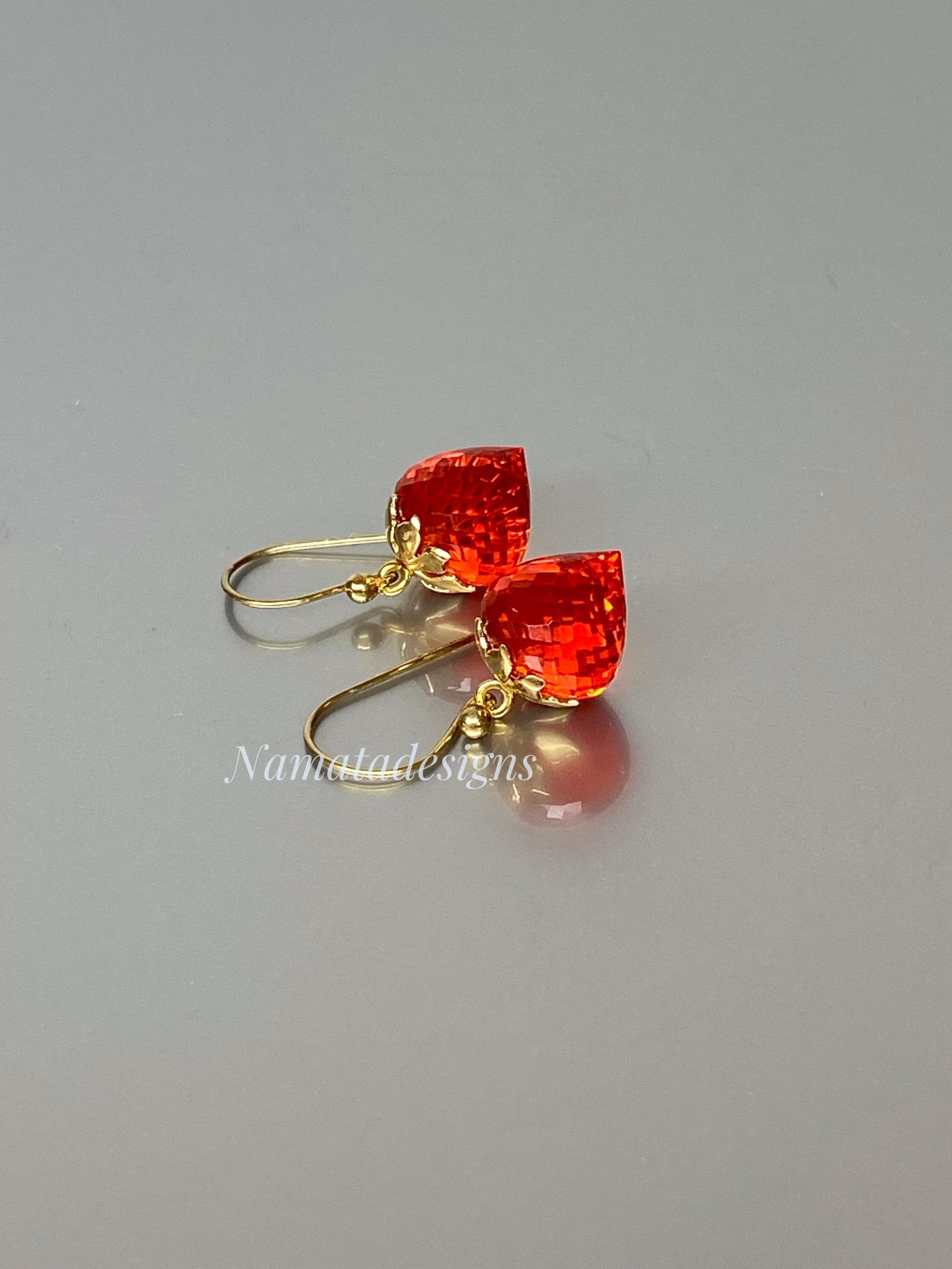 Fire Opal Earrings Gold Drop • Inverted Teardrop Earrings • Flame Orange Opal Jewelry • Sterling Silver or 24K Gold Vermeil • Luxury Gift for Her