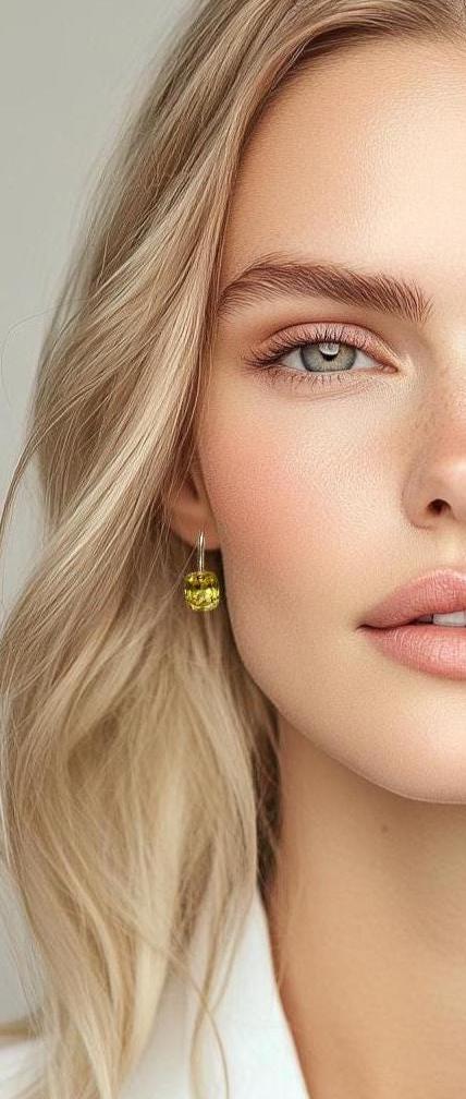 ** The earrings showcased on the model offer a visual reference for their size and proportions.