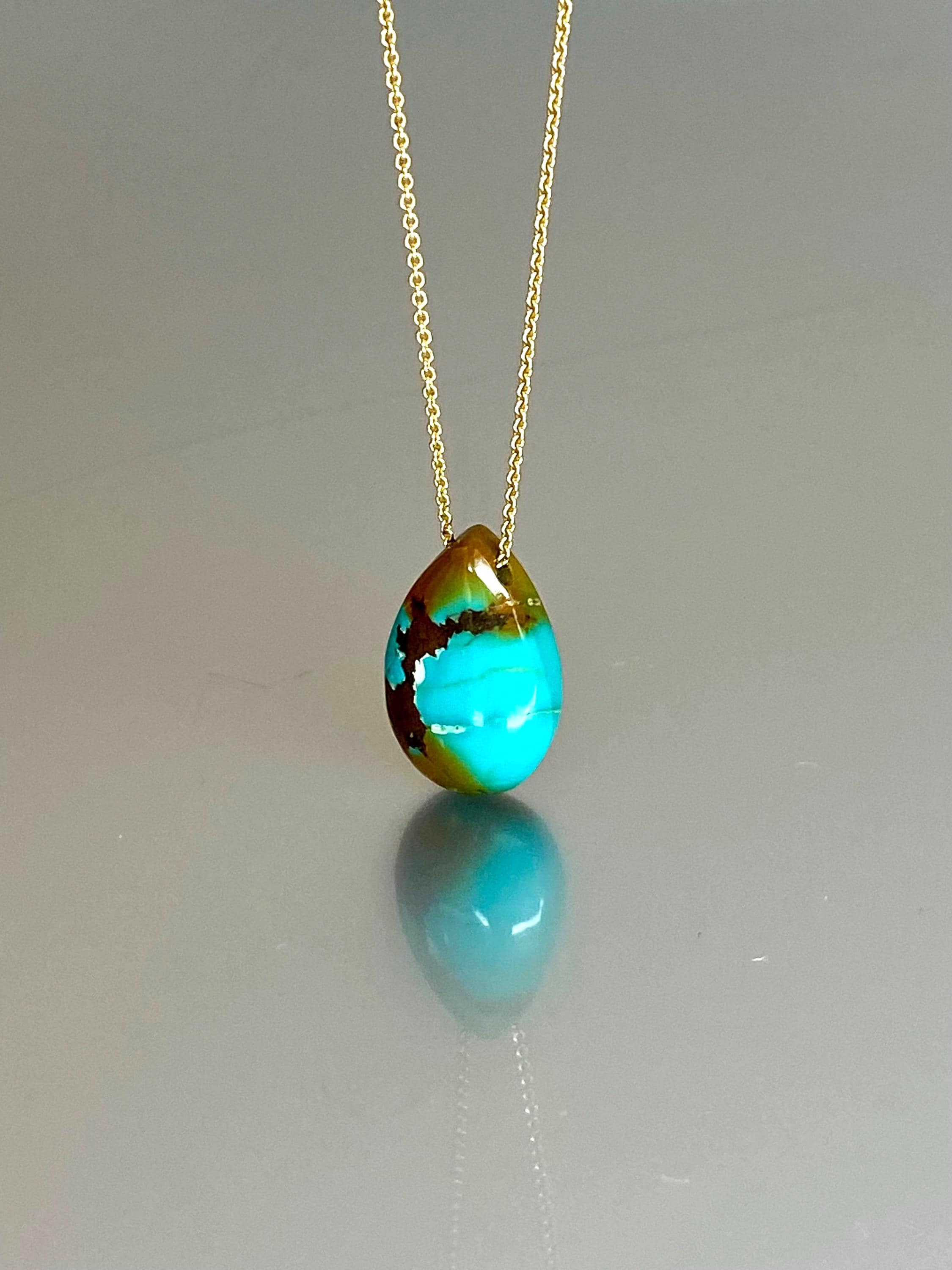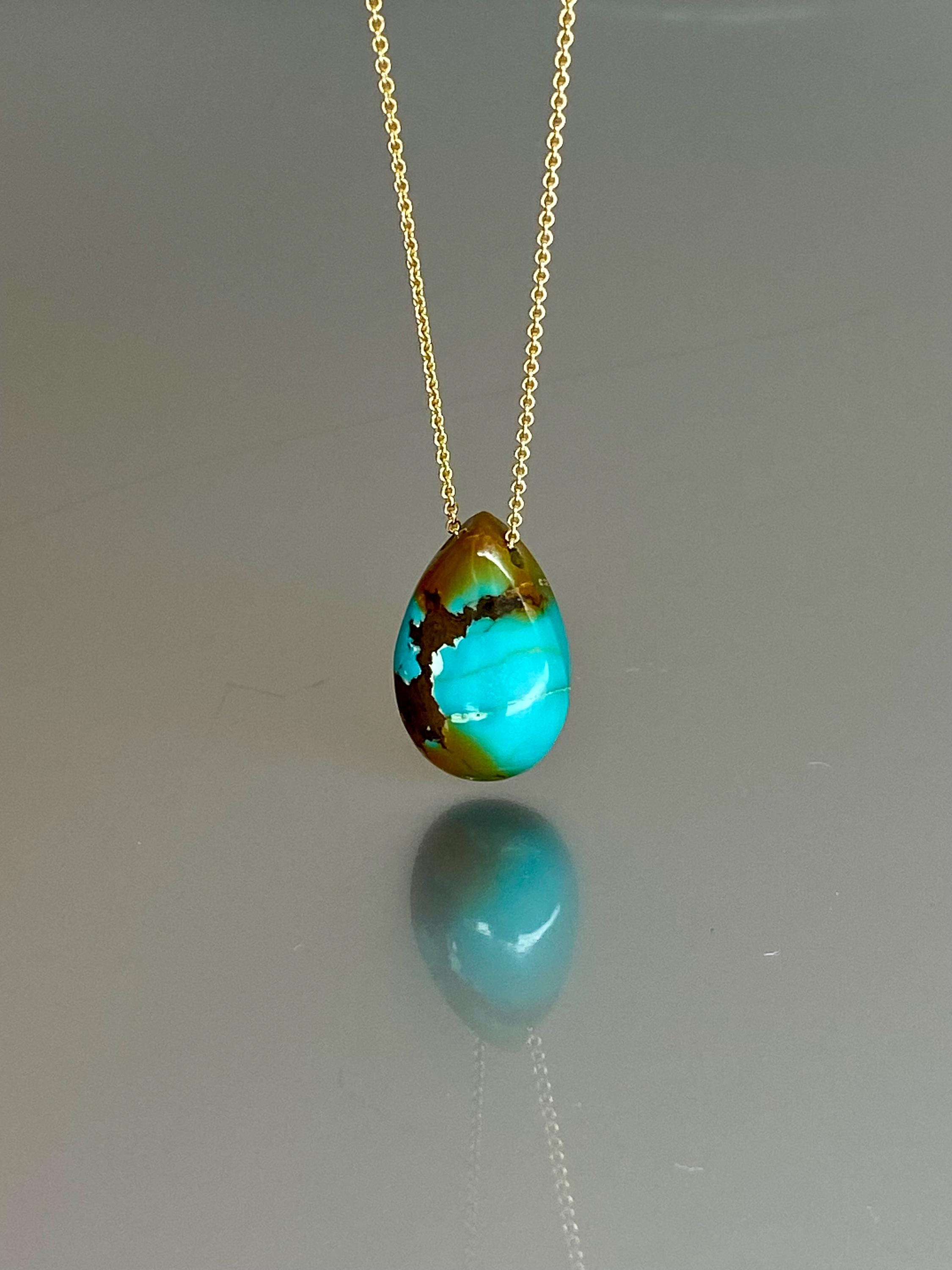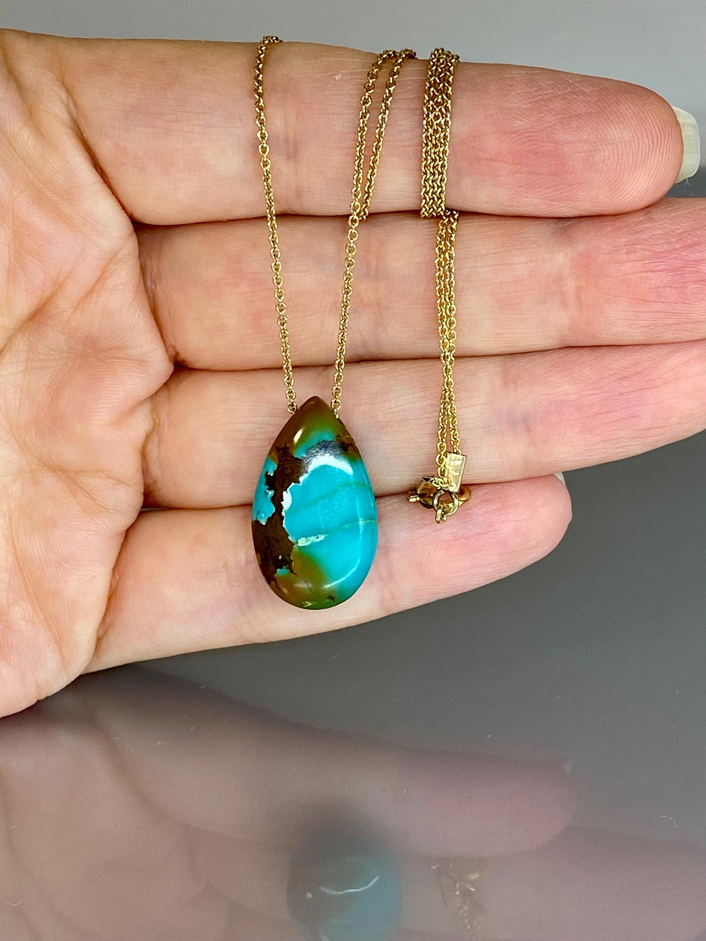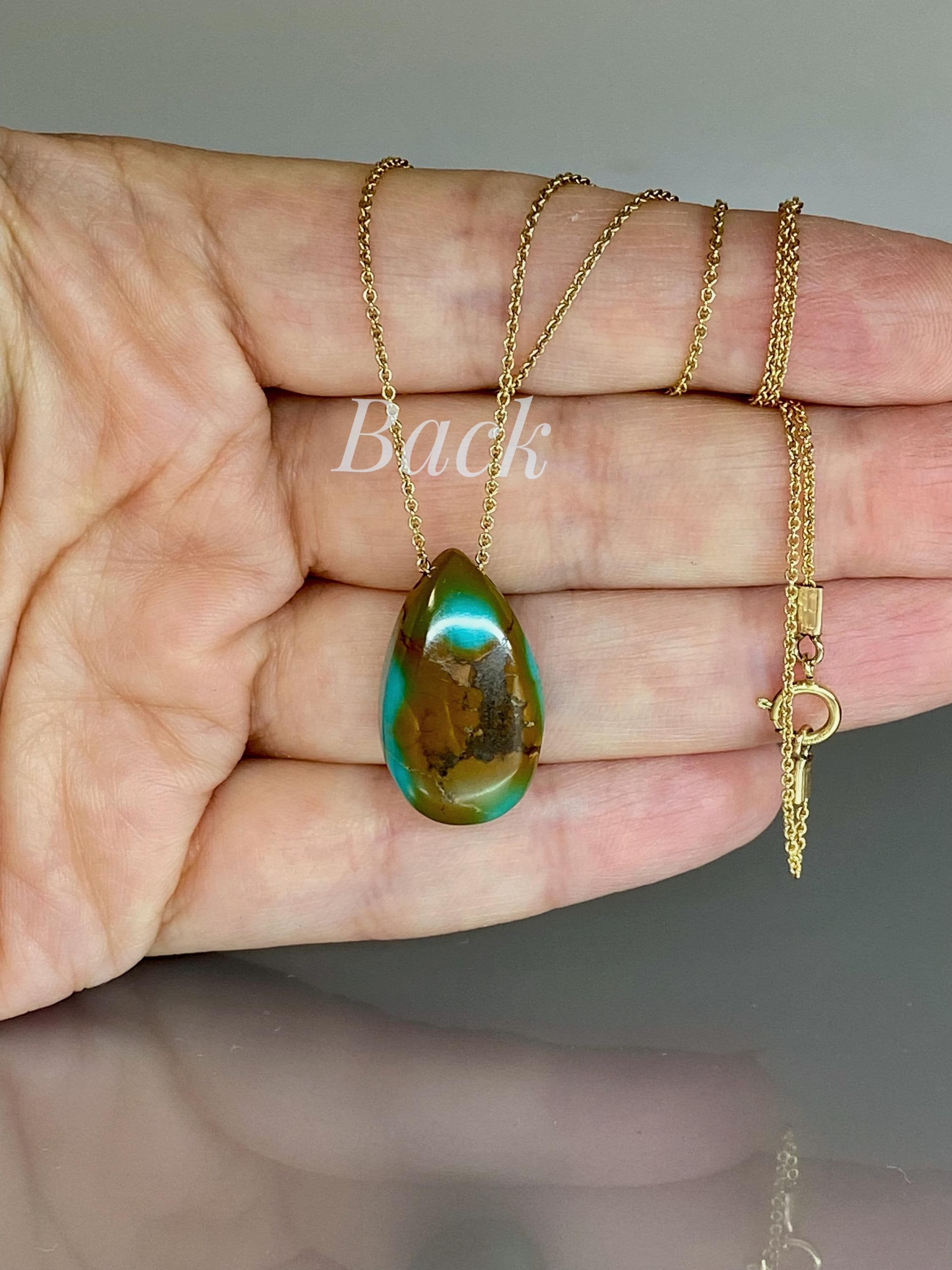 Gorgeous natural turquoise pendant necklace with the most STUNNING vibrant colors of blue, turquoise, and rusty brown that resemble the colors of the Caribbean Sea. The turquoise pendant is unique and lightweight. The pendant is strung on a 14K gold-filled chain. It is perfect for layering or looks great when worn alone.