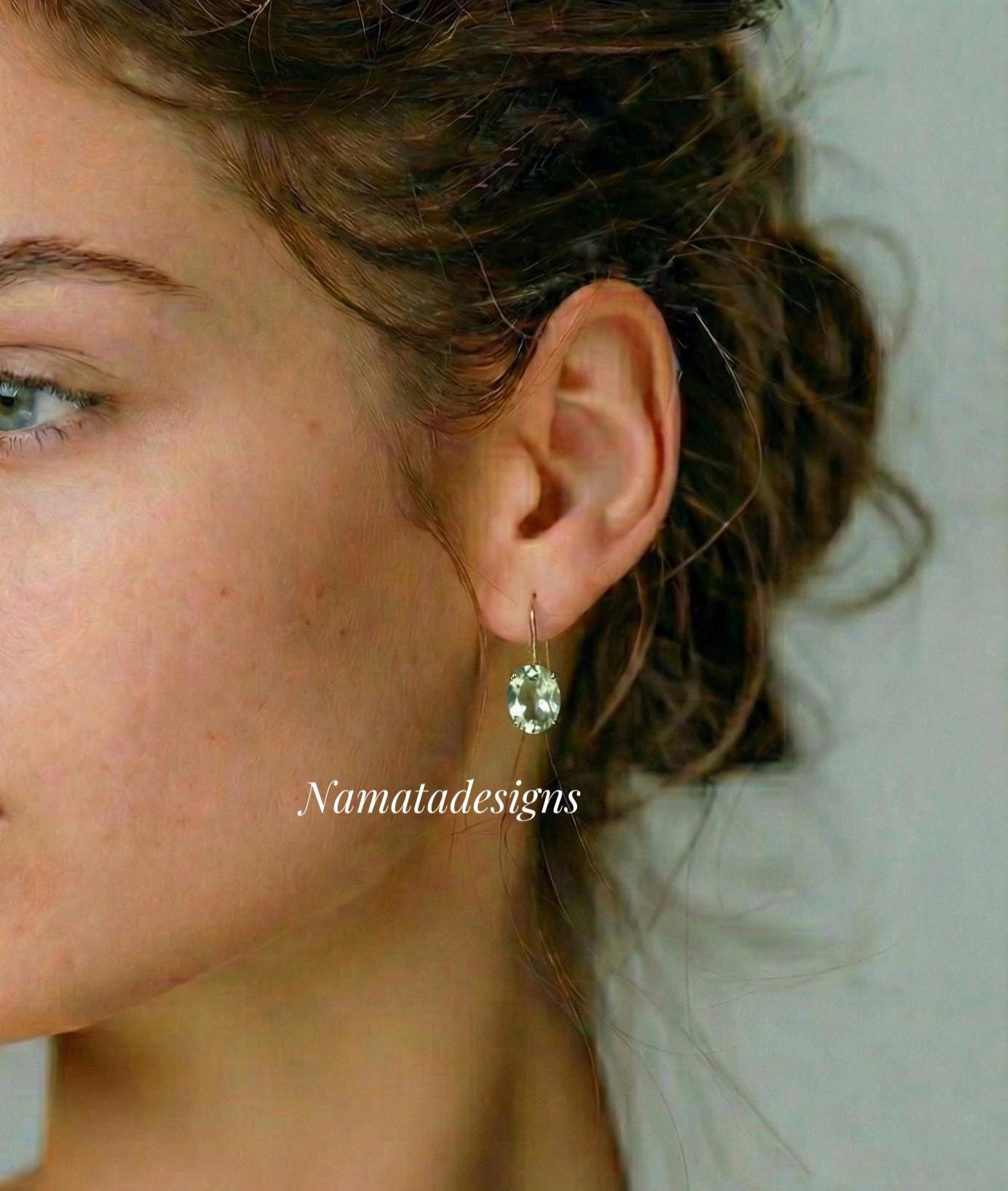 Green Amethyst Dangle Earrings • Gold Drop Earrings • Minimalist Amethyst Jewelry • Gift for Her