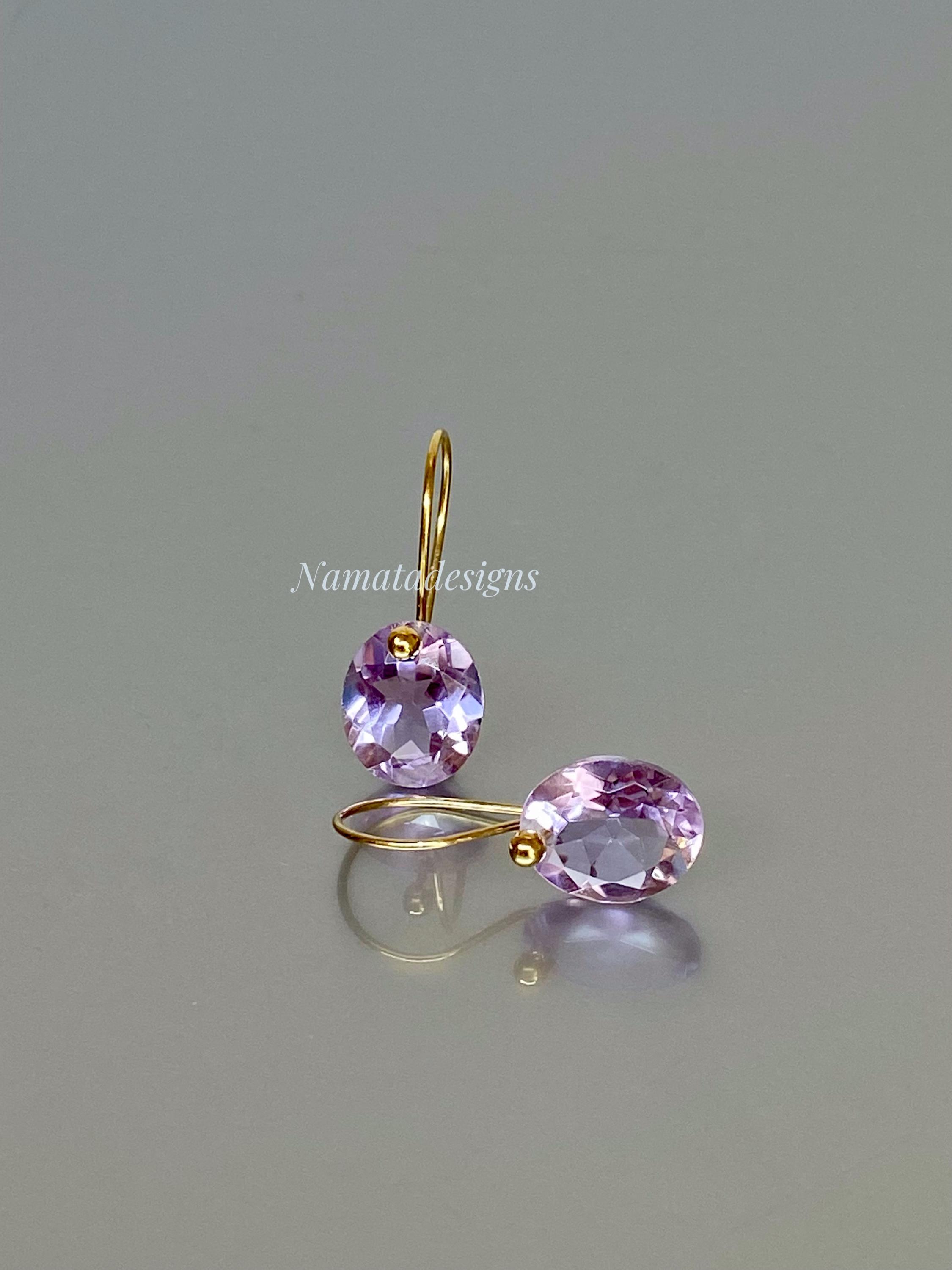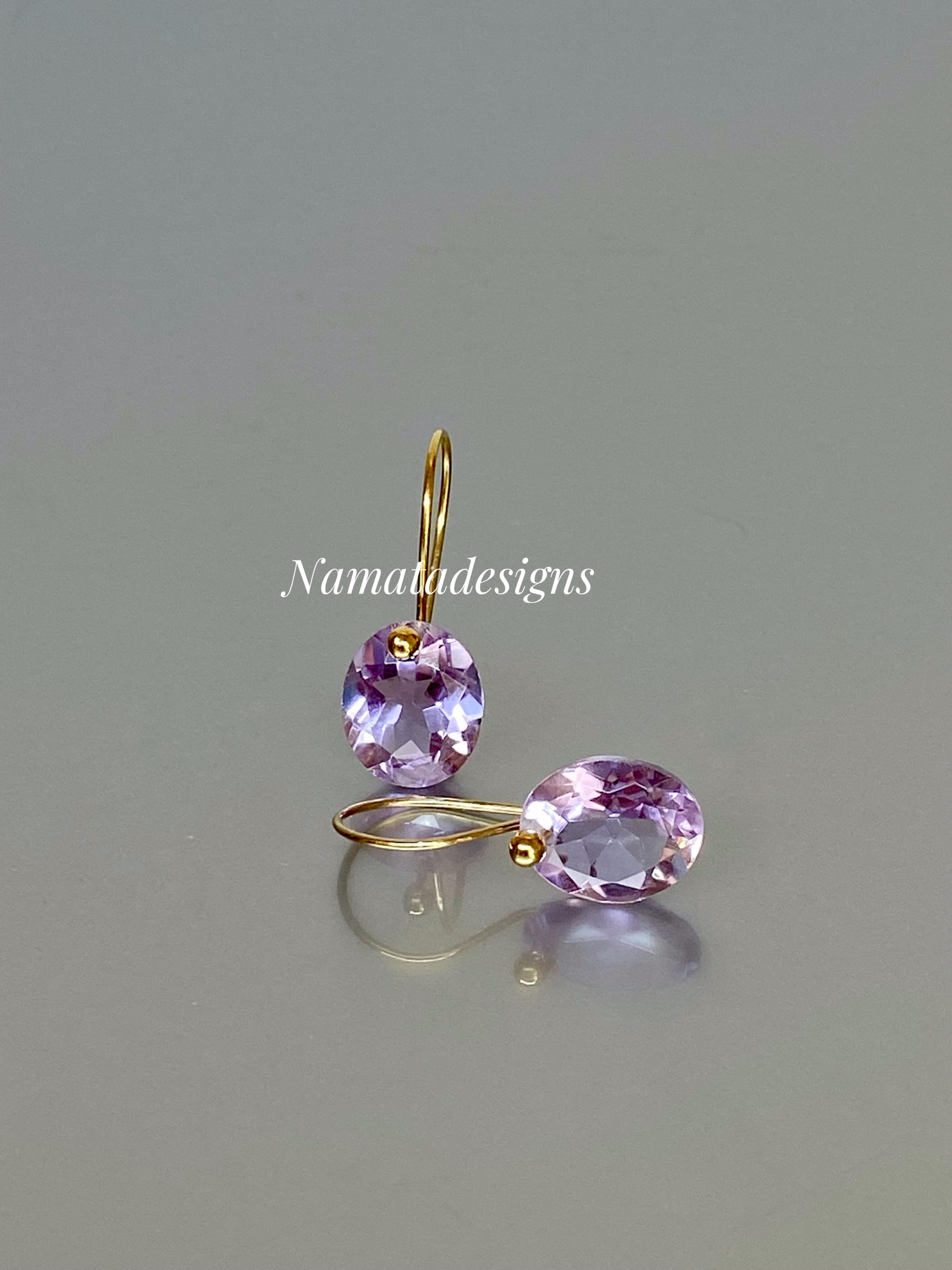 Natural Pink Amethyst Dangle Earrings, Gemstone Drop Earrings, Pink Stone Earrings, Gift for Her, Minimalist Amethyst Earrings