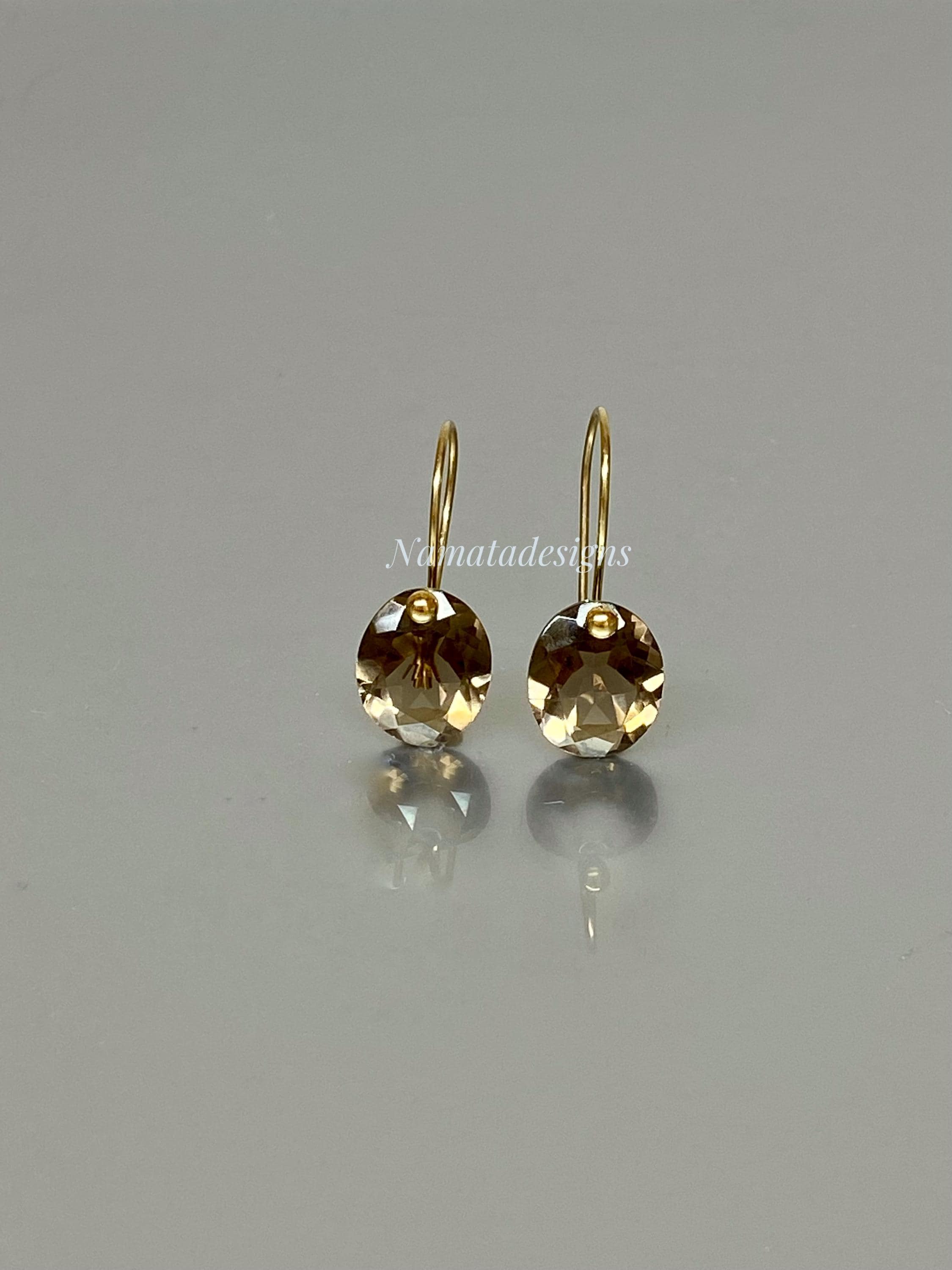 Natural smoky quartz Dangle Earrings, Gemstone Drop Earrings, Brown Stone Earrings, Gift for Her, Minimalist qurrtz Earrings