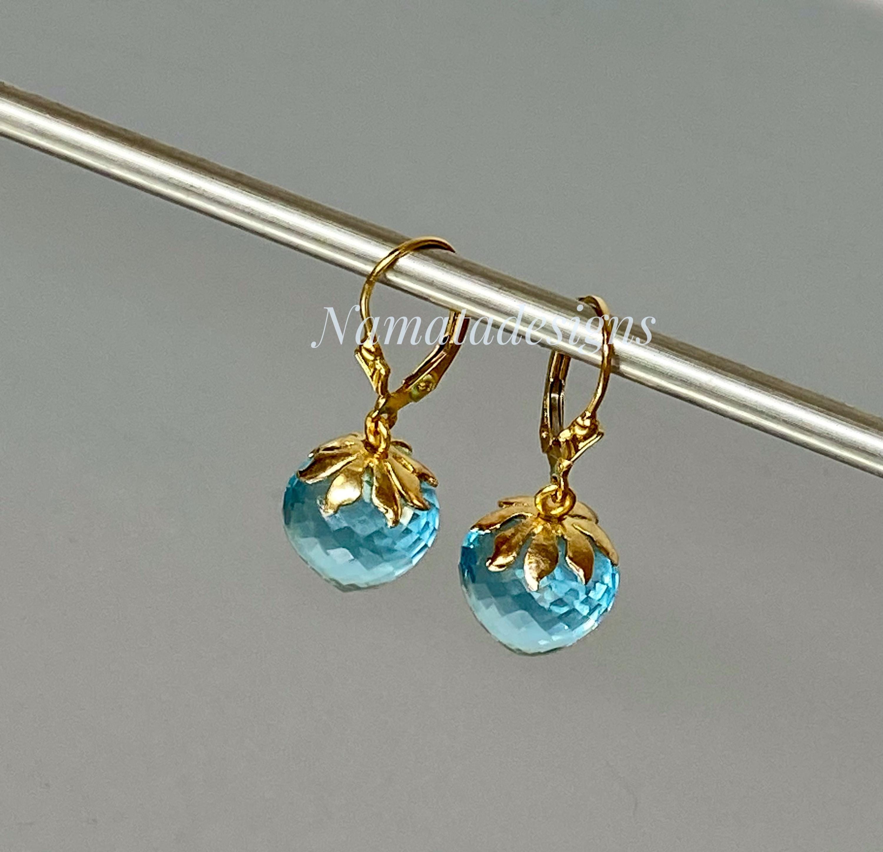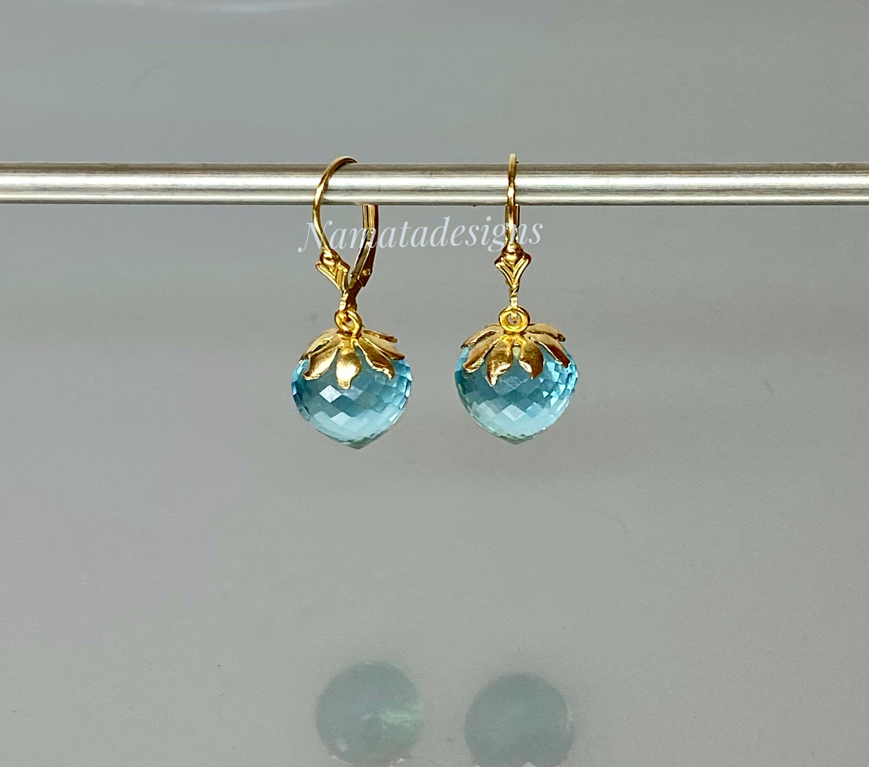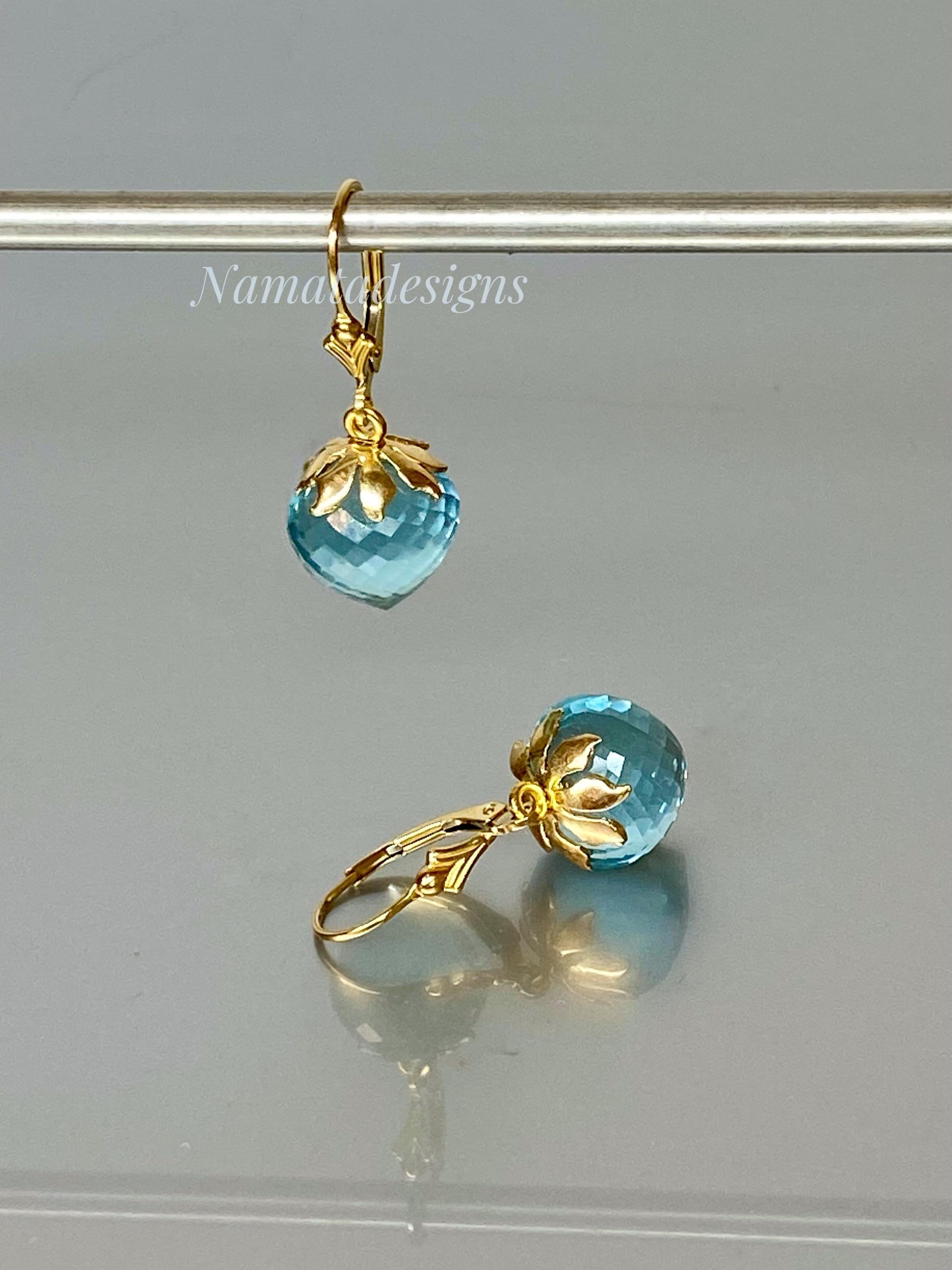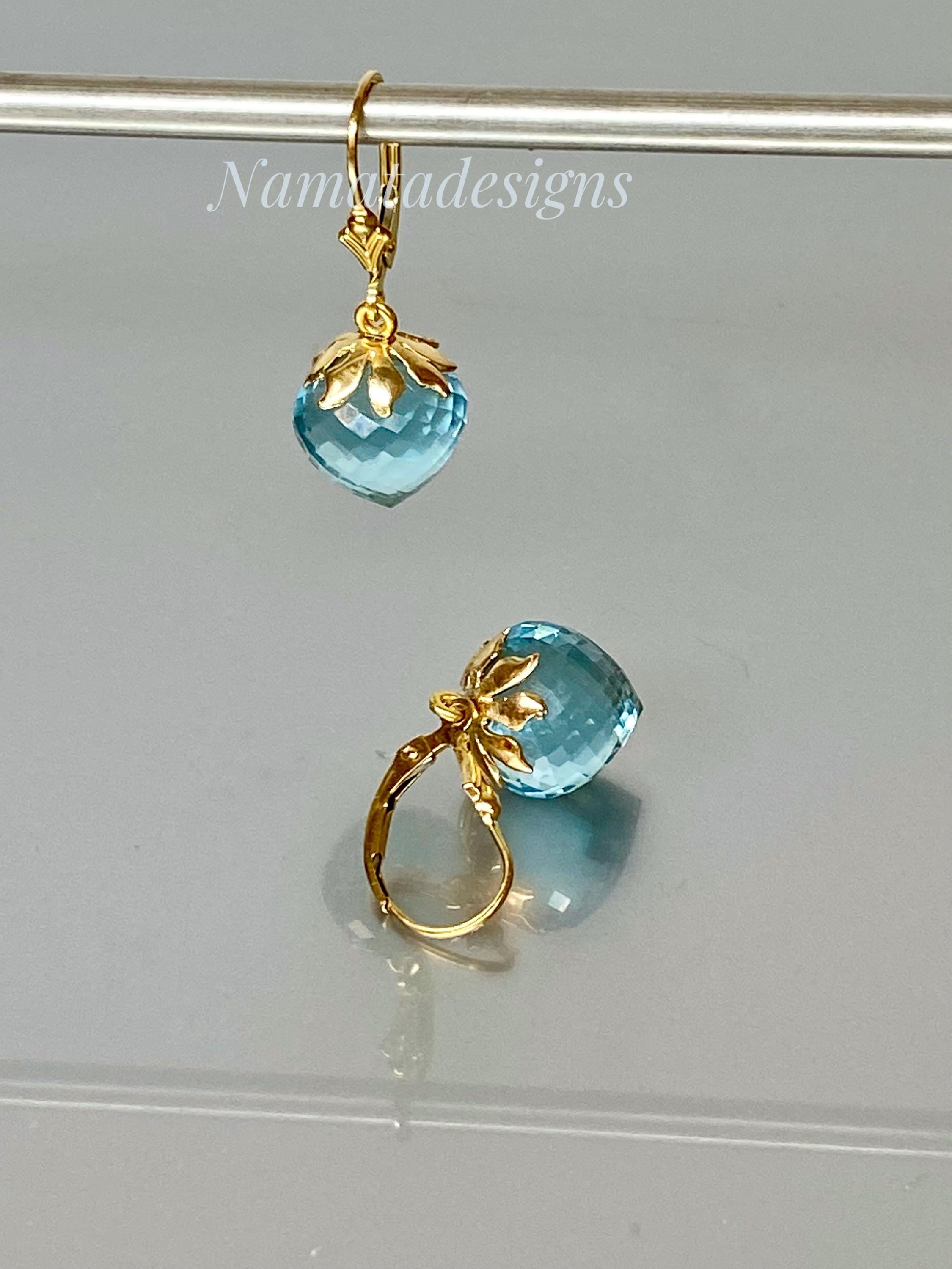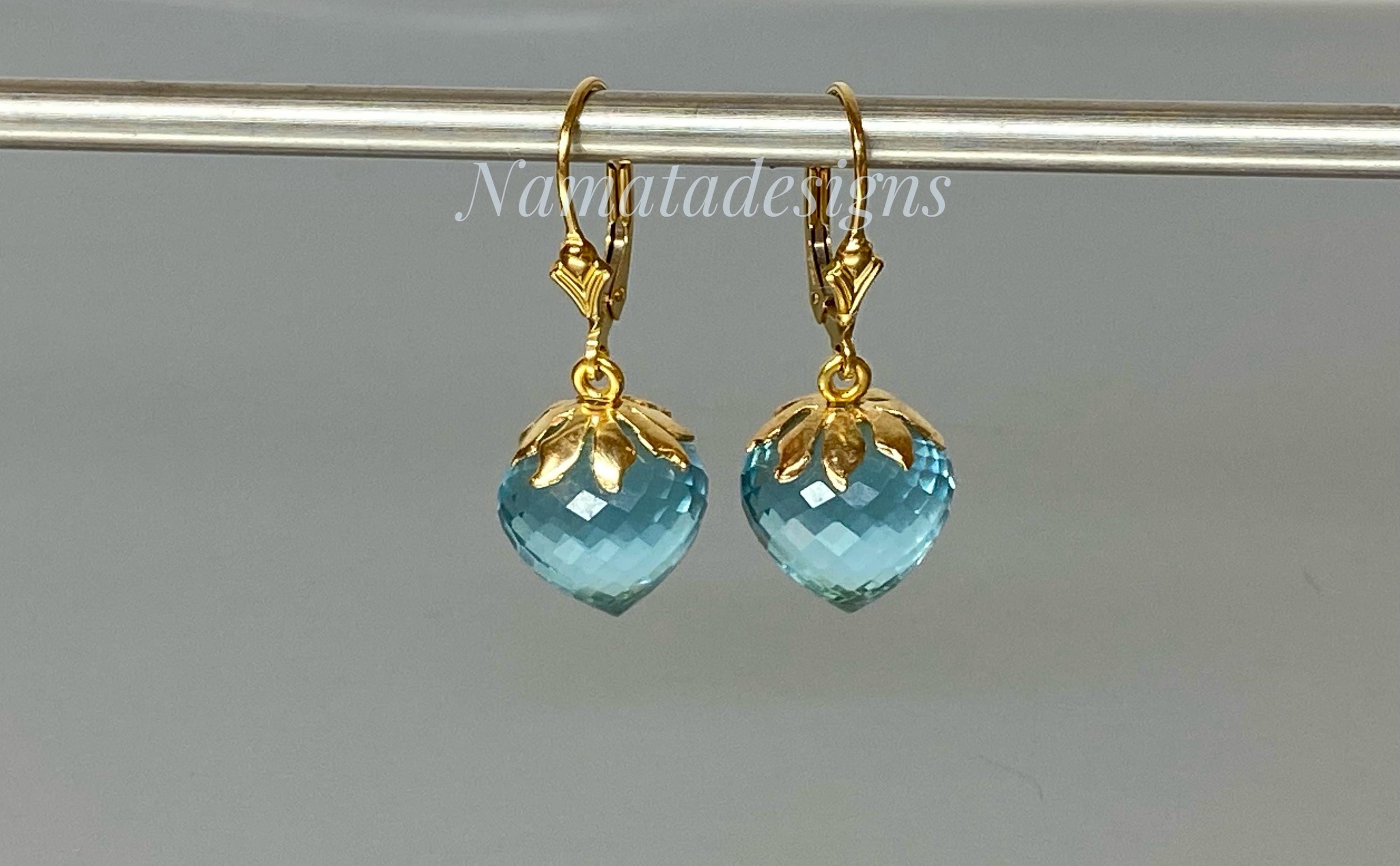 Each flawless aquamarine drop (approximately 12 mm) is a testament to perfection, delicately paired with gold vermeil floral caps that add a unique and timeless charm.