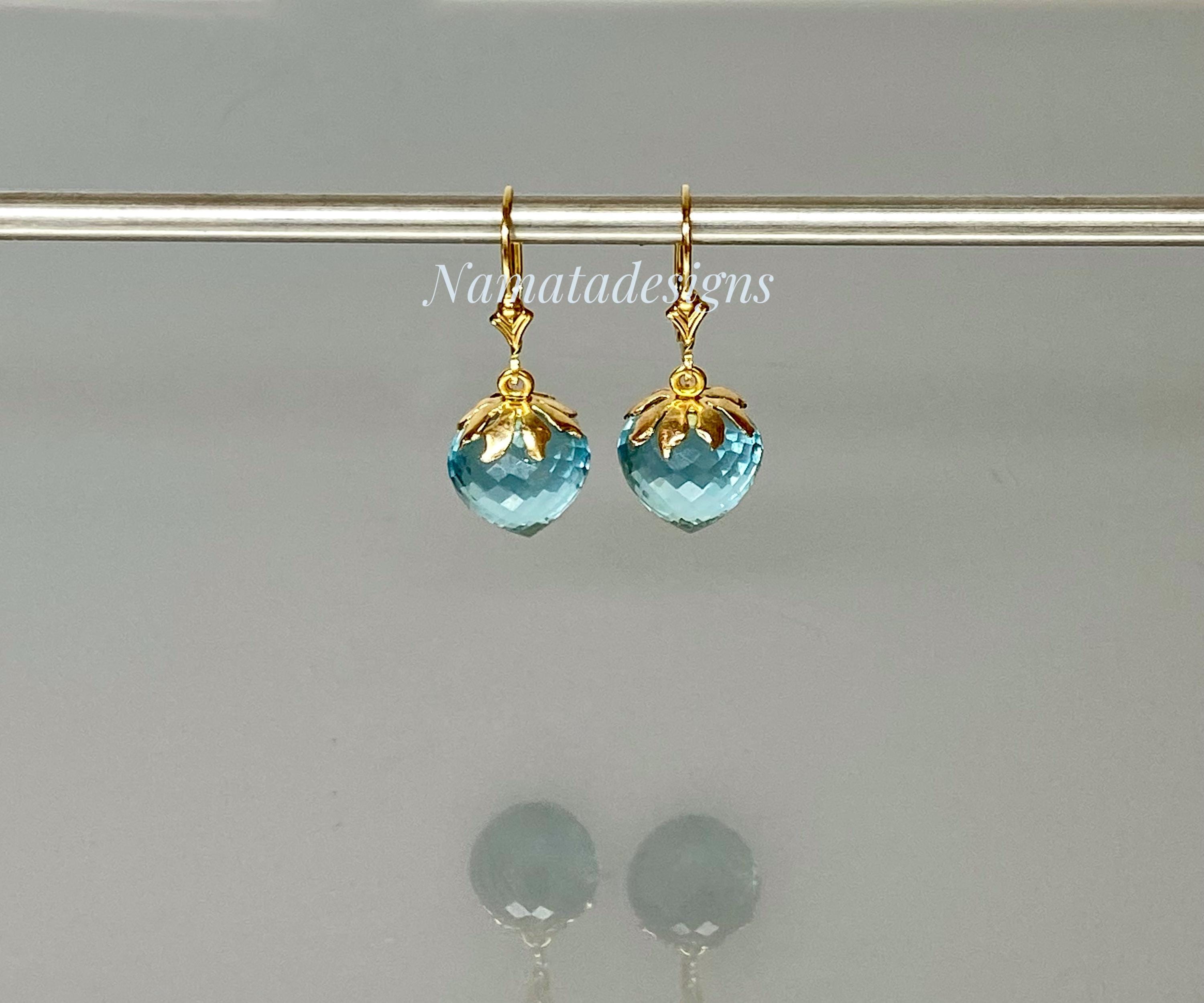 These Sparkling aquamarine inverted teardrop earrings shimmer with a delicate sea-blue tone hue — a color that captures warmth, passion, and light.