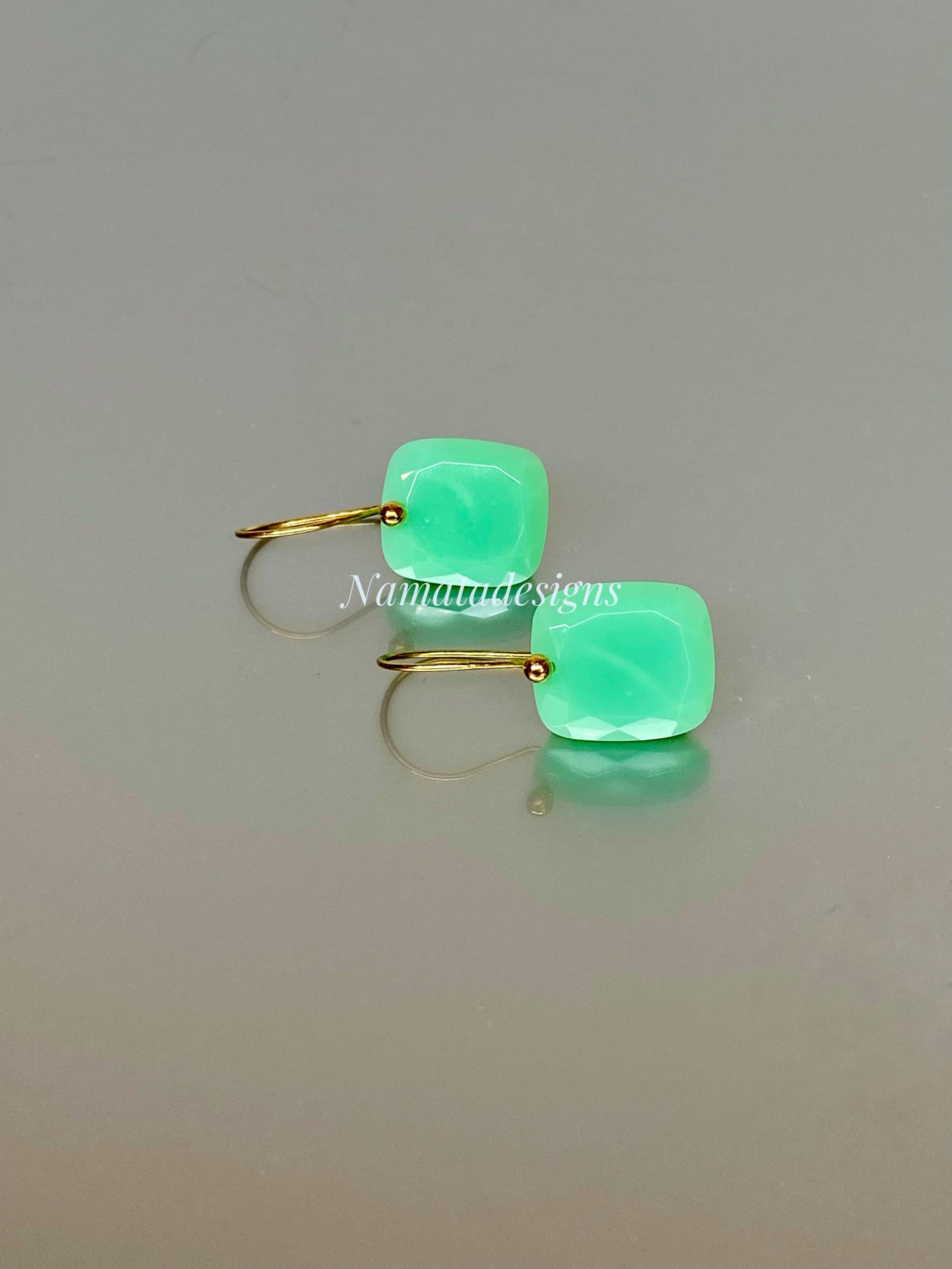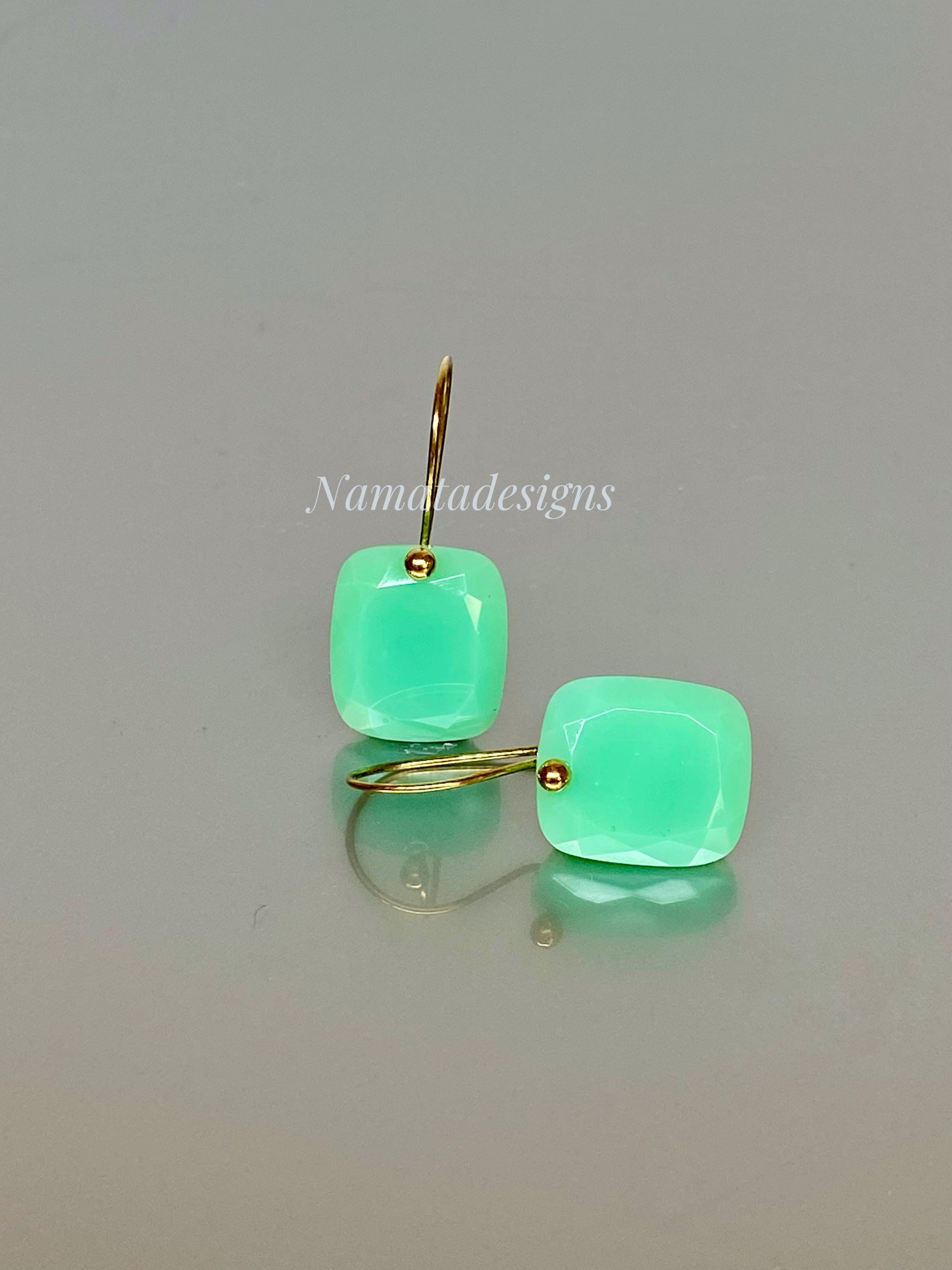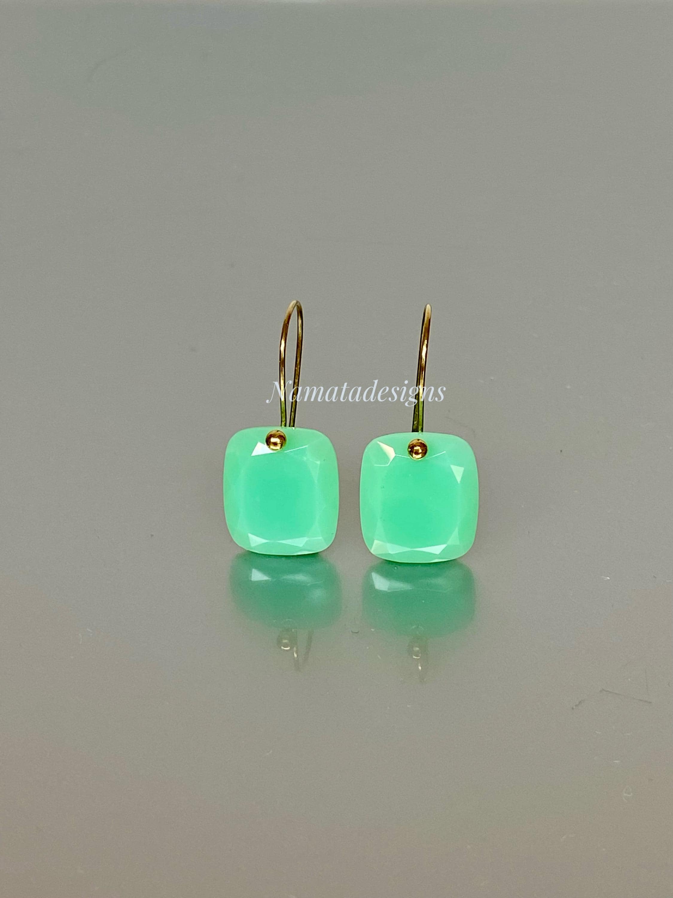 Add a pop of refreshing color to your outfit with these elegant mint green chrysoprase gemstone earrings, cut in faceted rectangles and set on 24K gold vermeil or 14K/18K solid gold ear wires. The minimalist design makes them versatile for casual or formal occasions, effortlessly elevating any outfit. Perfectly suited for everyday wear or special events, these earrings blend simplicity with sophistication.