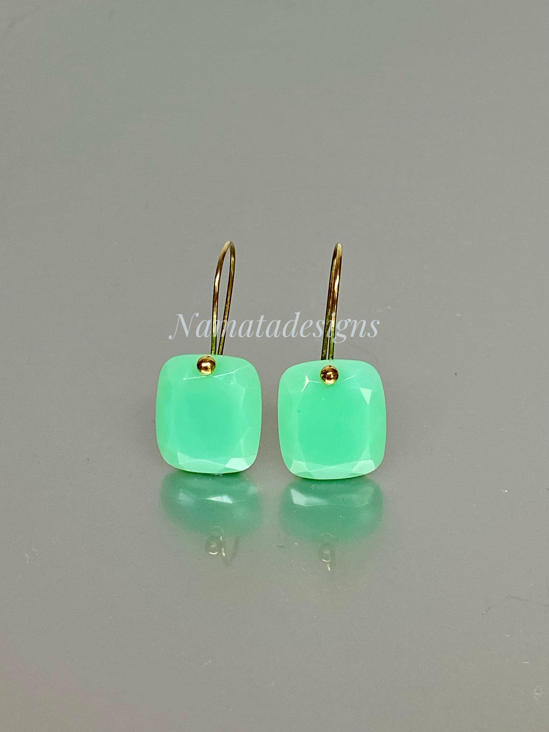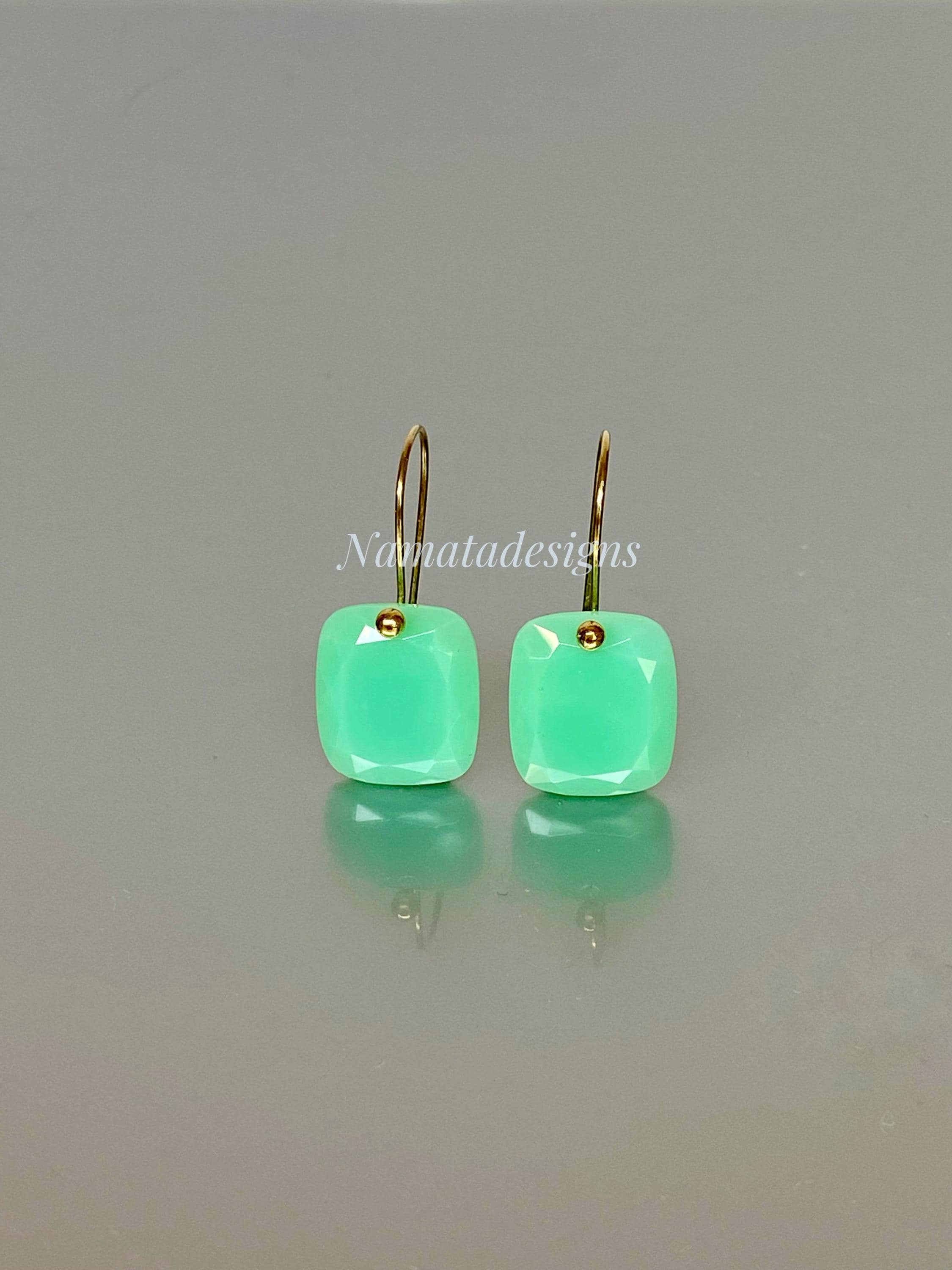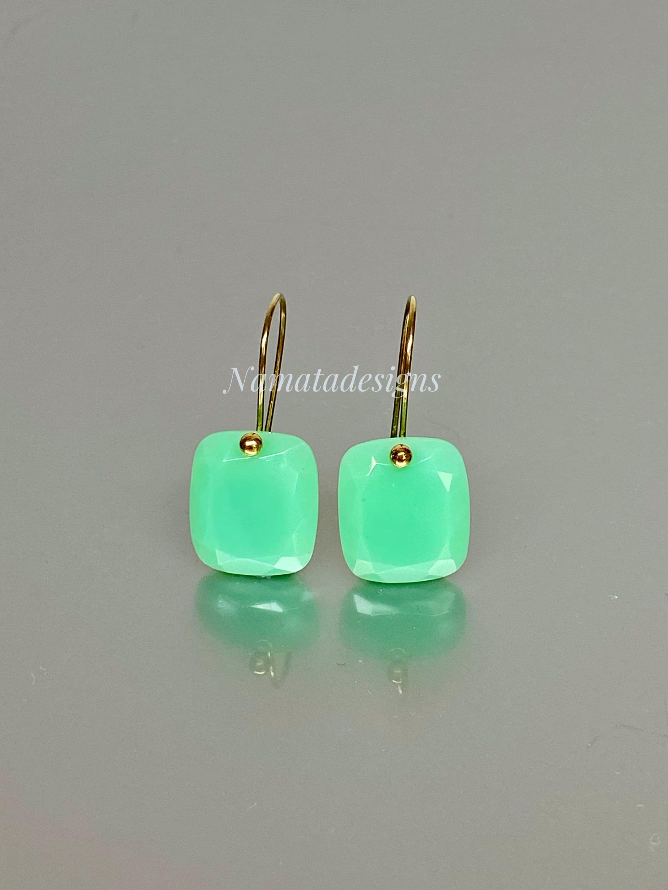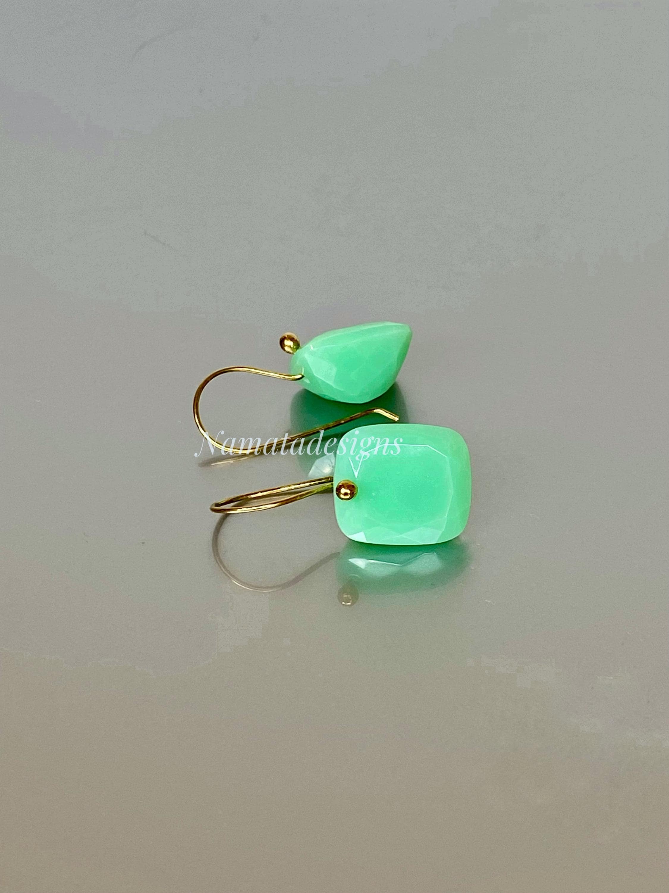 Add a pop of refreshing color to your outfit with these elegant mint green chrysoprase gemstone earrings, cut in faceted rectangles and set on 24K gold vermeil or 14K/18K solid gold ear wires. The minimalist design makes them versatile for casual or formal occasions, effortlessly elevating any outfit. Perfectly suited for everyday wear or special events, these earrings blend simplicity with sophistication.