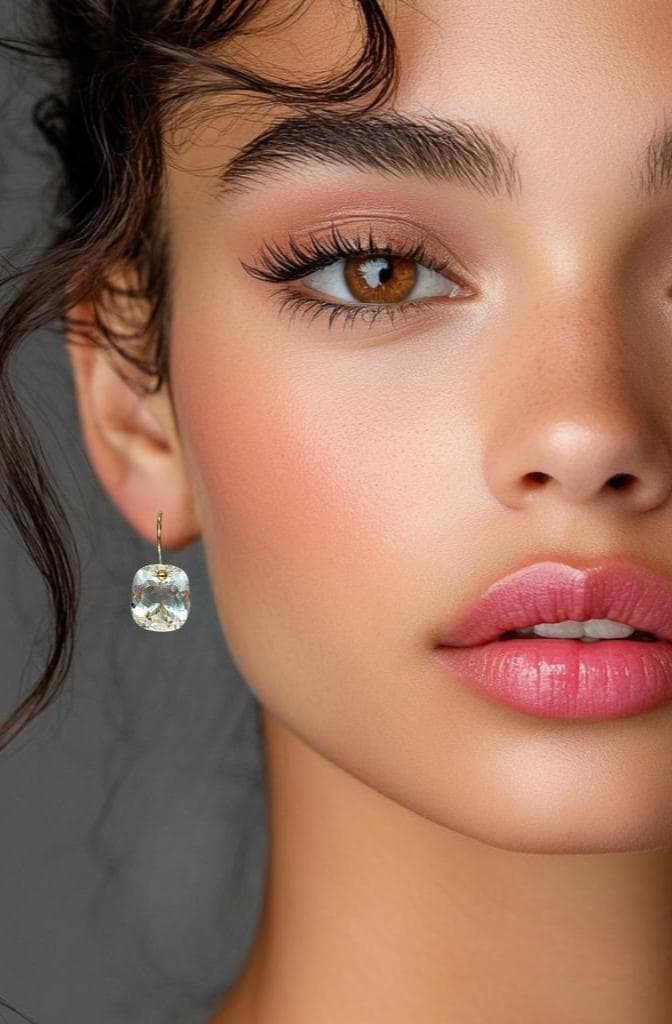 The earrings showcased on the model offer a visual reference for their size and proportions.