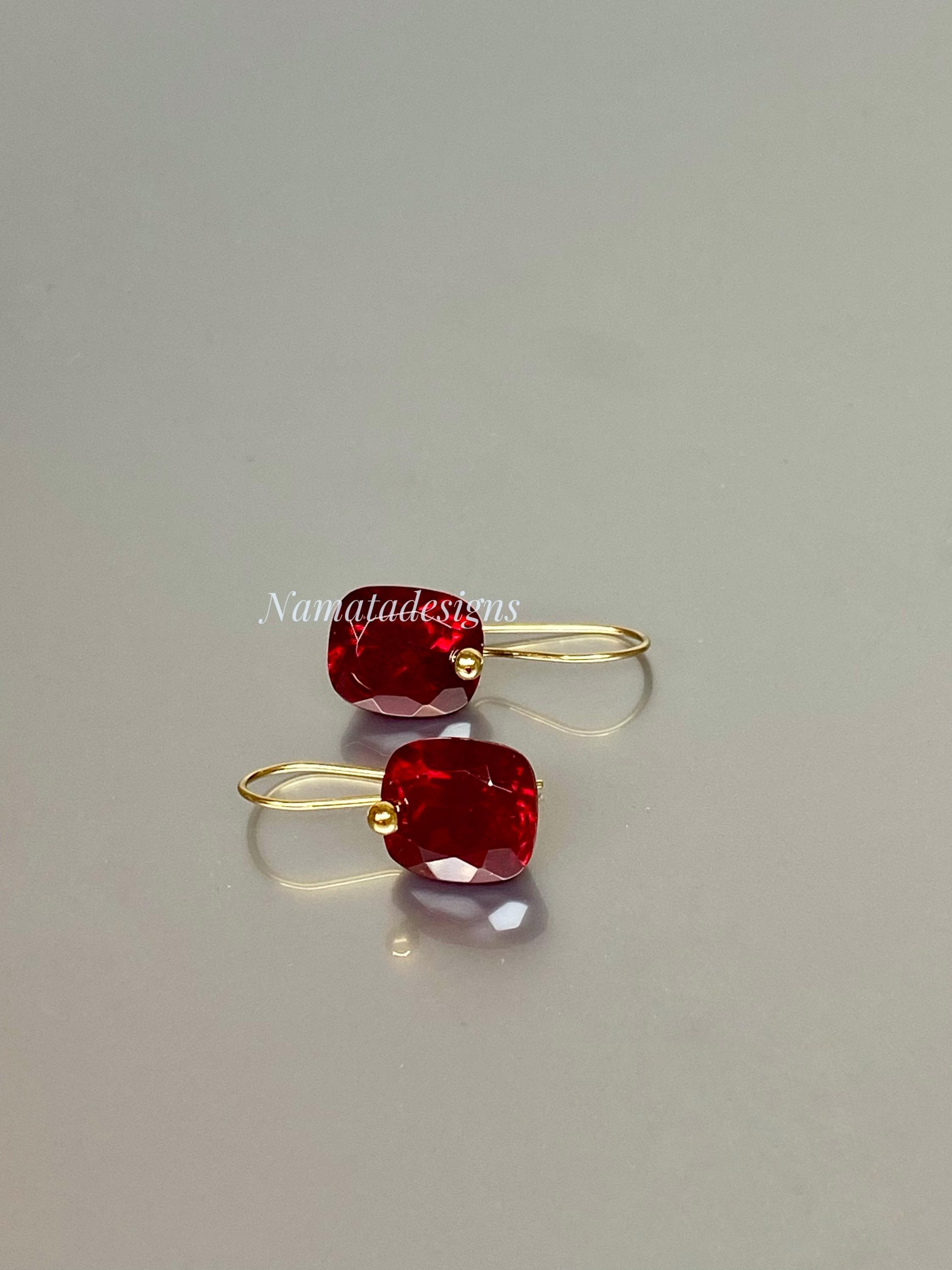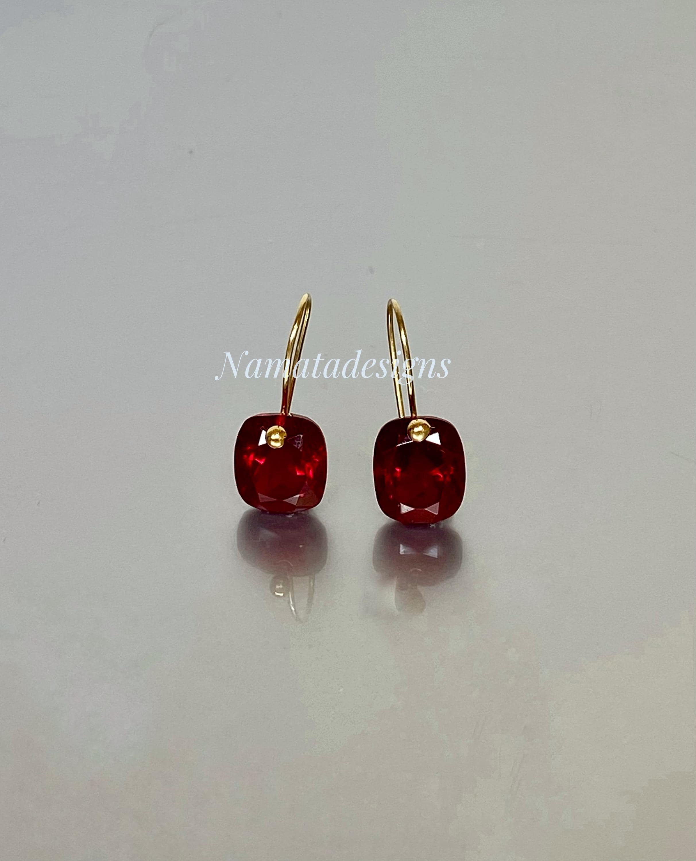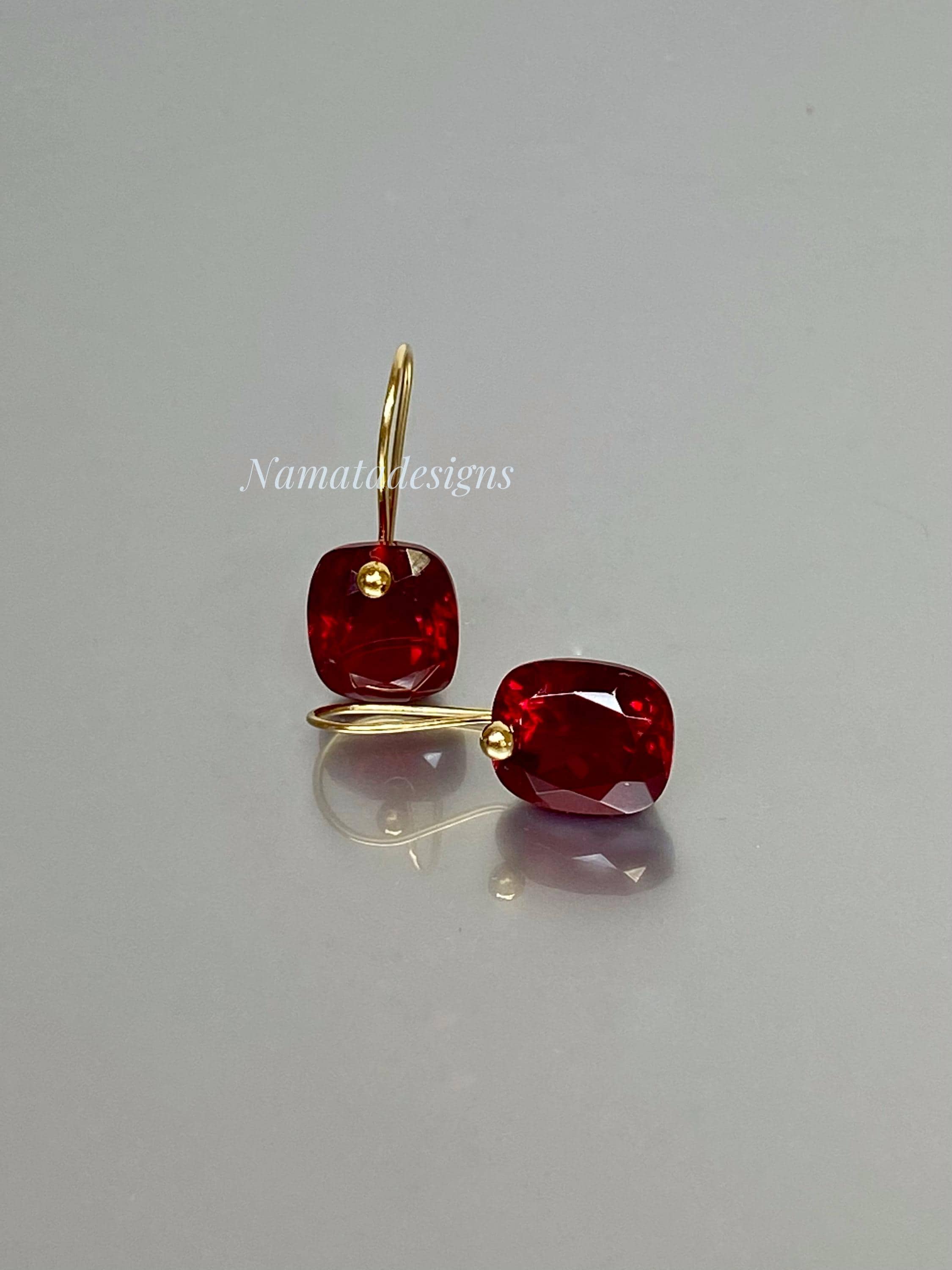 Red Ruby Earrings • Gold Drop Earrings • Minimalist Ruby Jewelry • Gift for Her