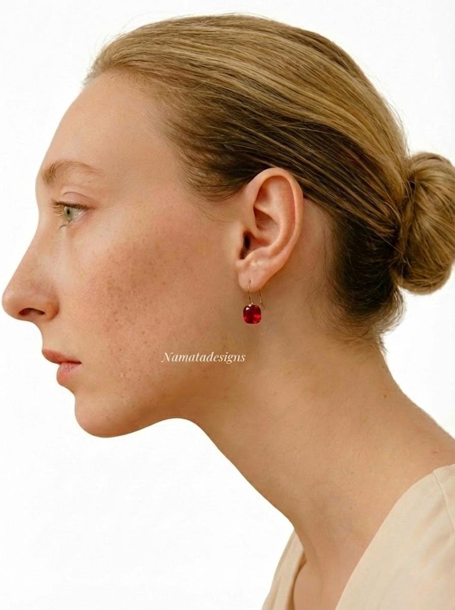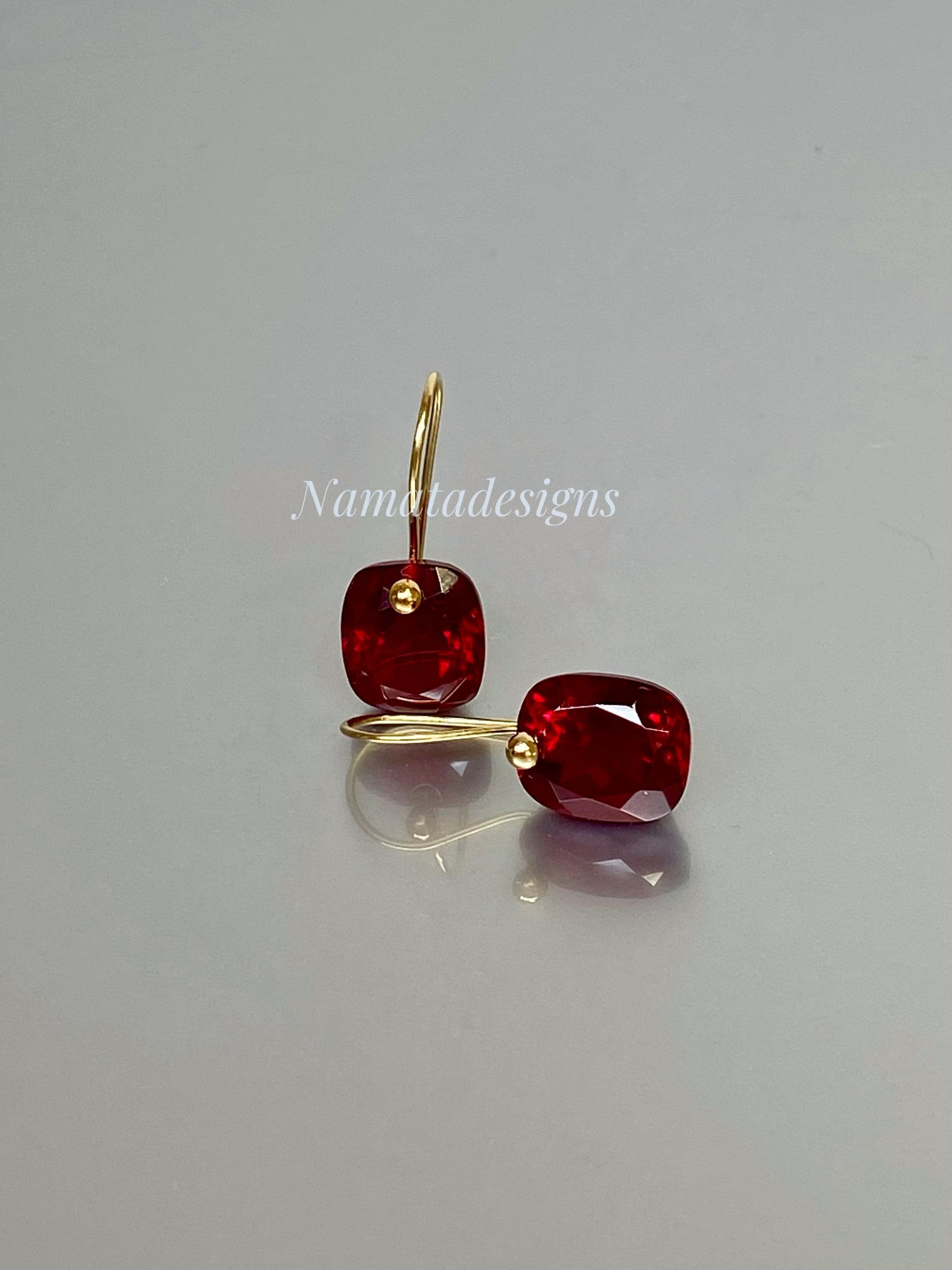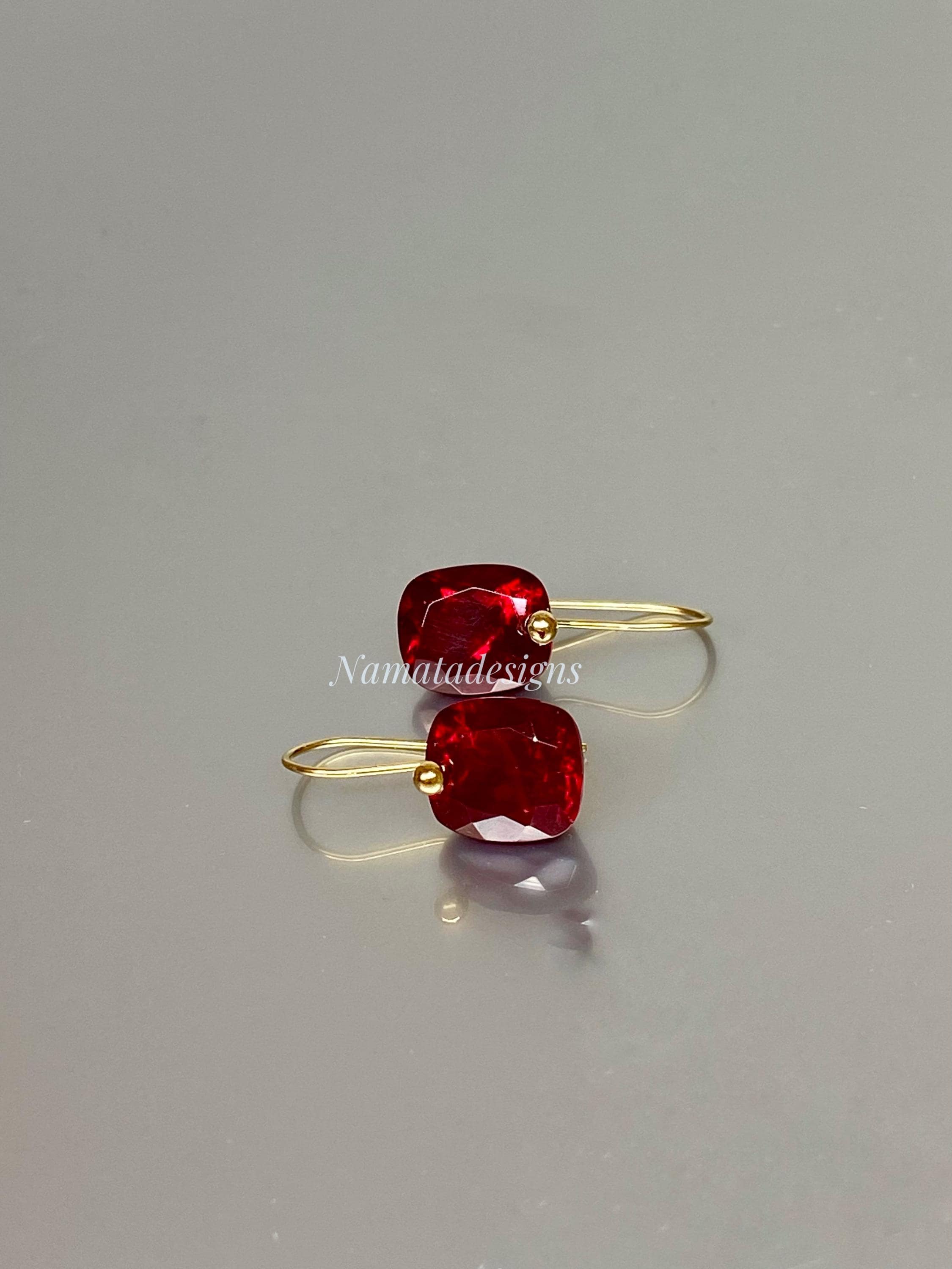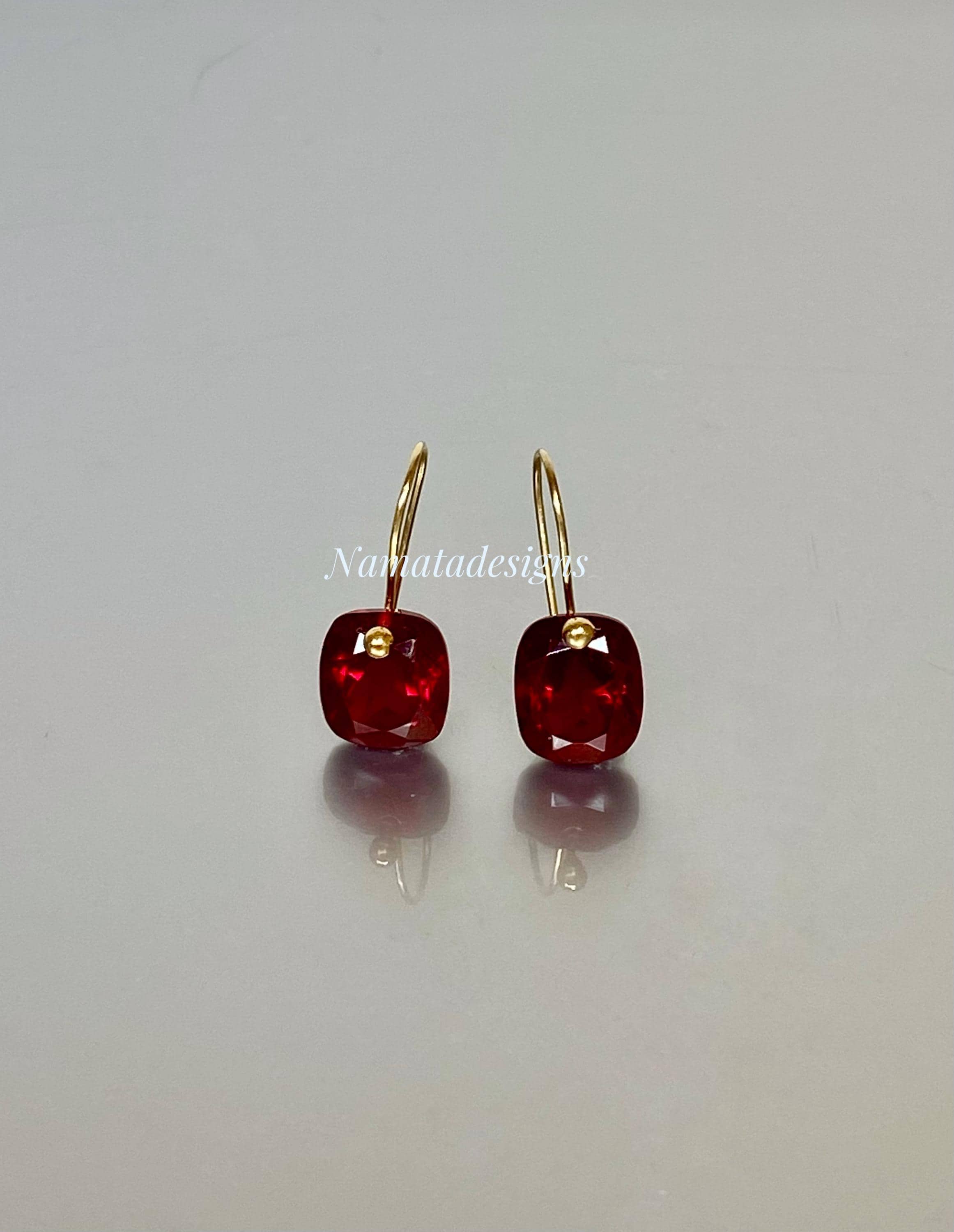Red Ruby Earrings • Gold Drop Earrings • Minimalist Ruby Jewelry • Gift for Her