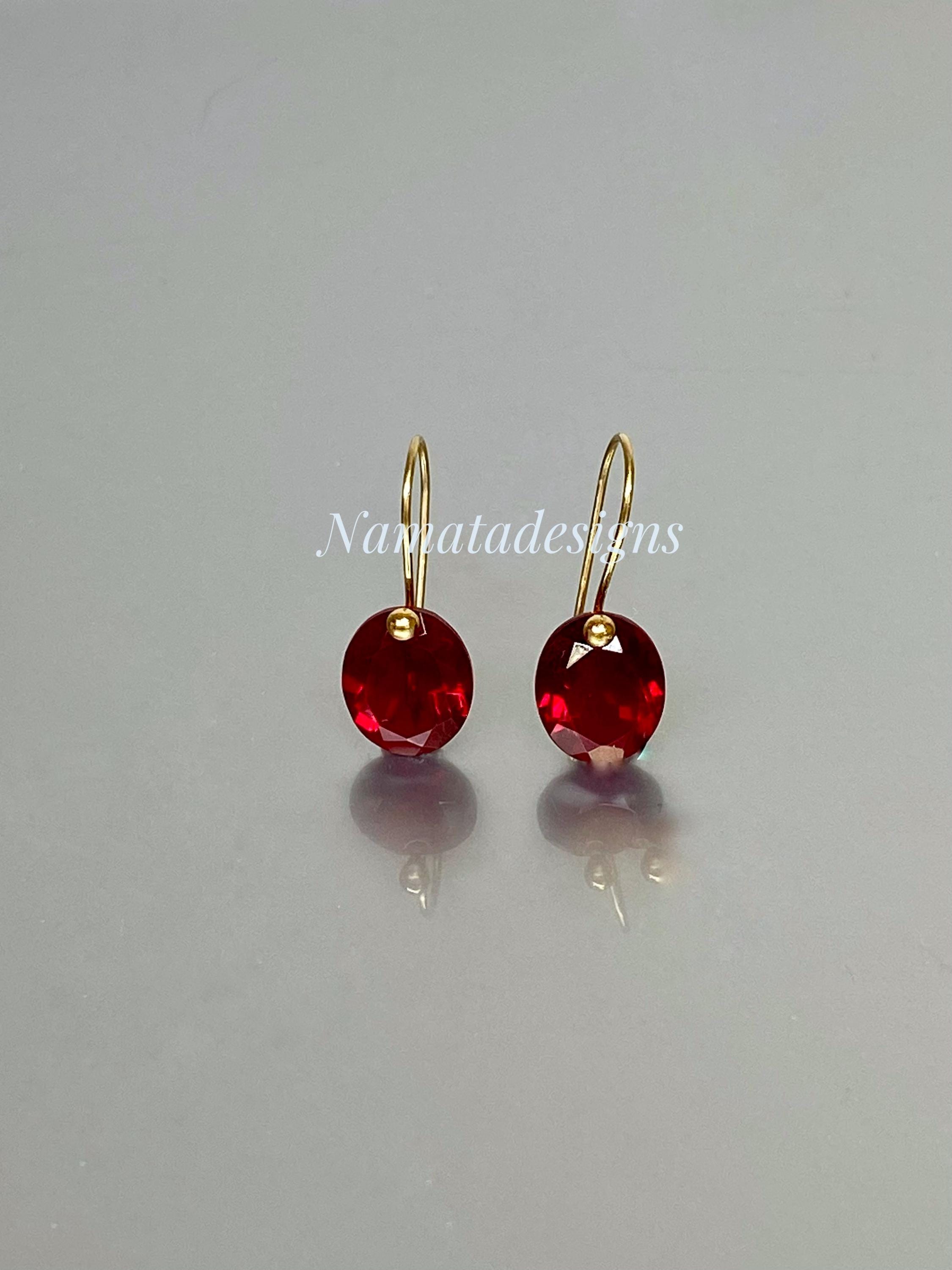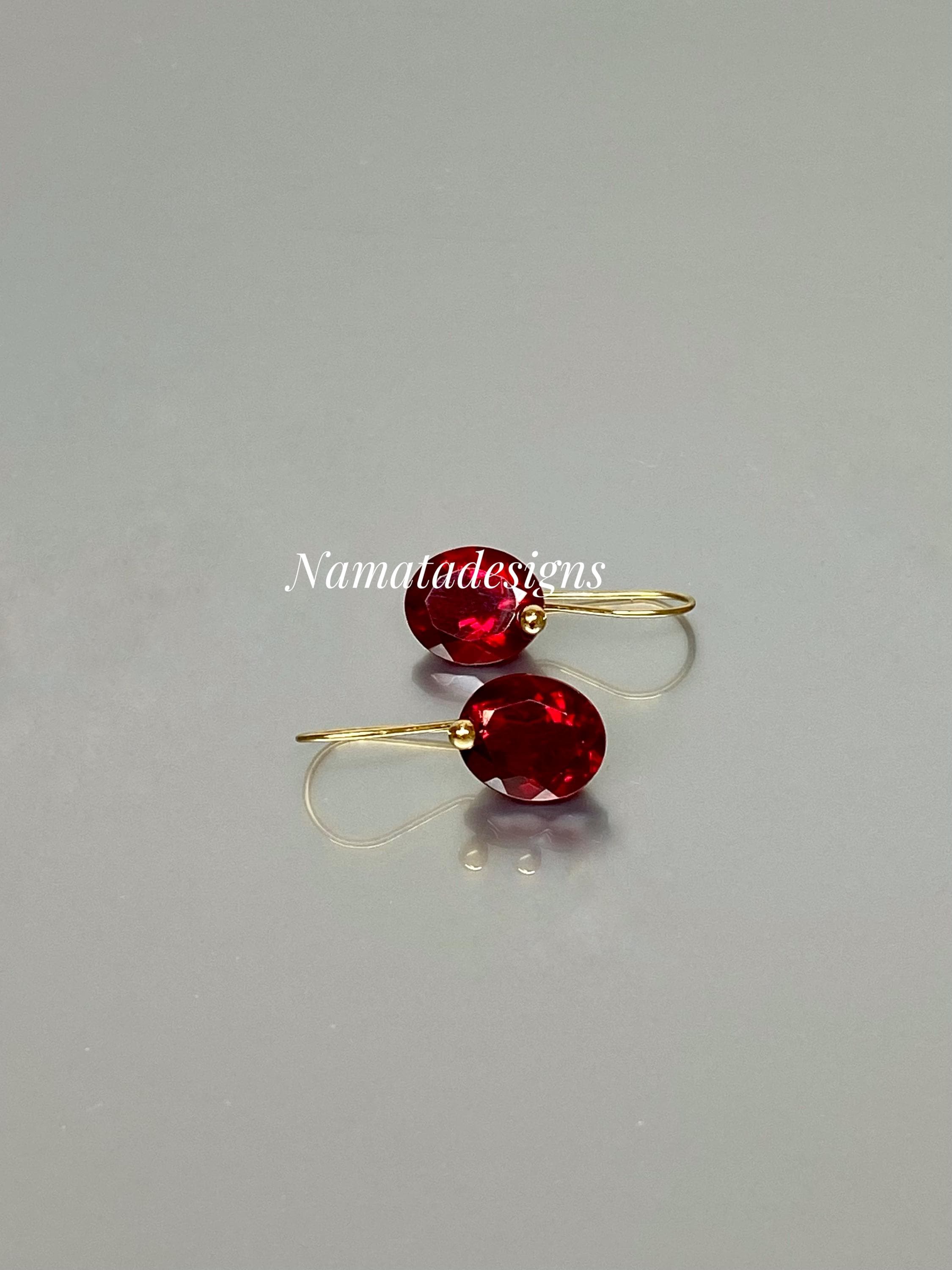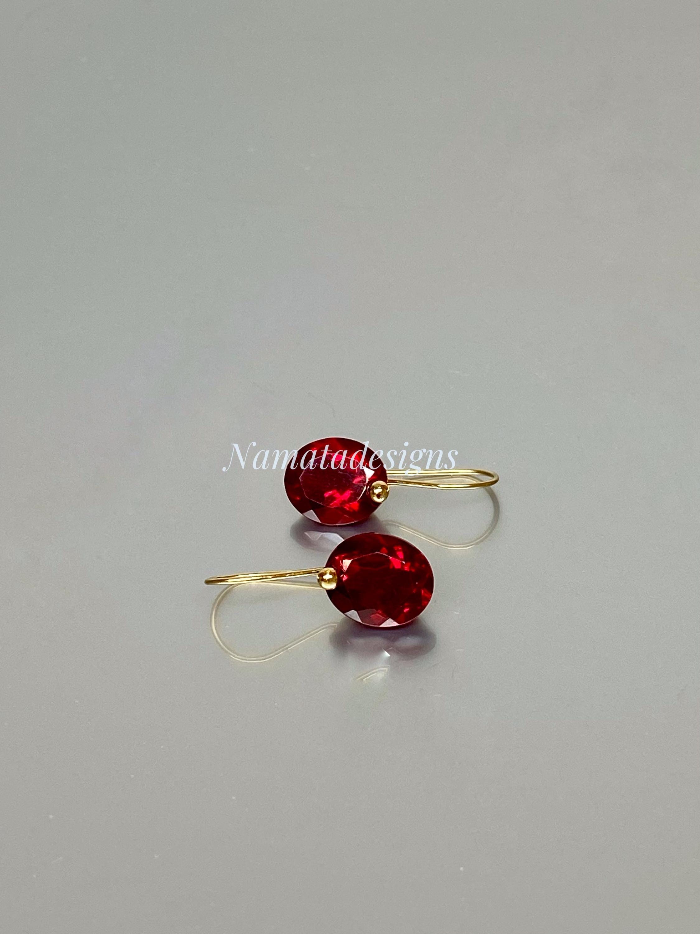 Red Ruby Earrings • Gold Drop Earrings • Minimalist Ruby Jewelry • Gift for Her