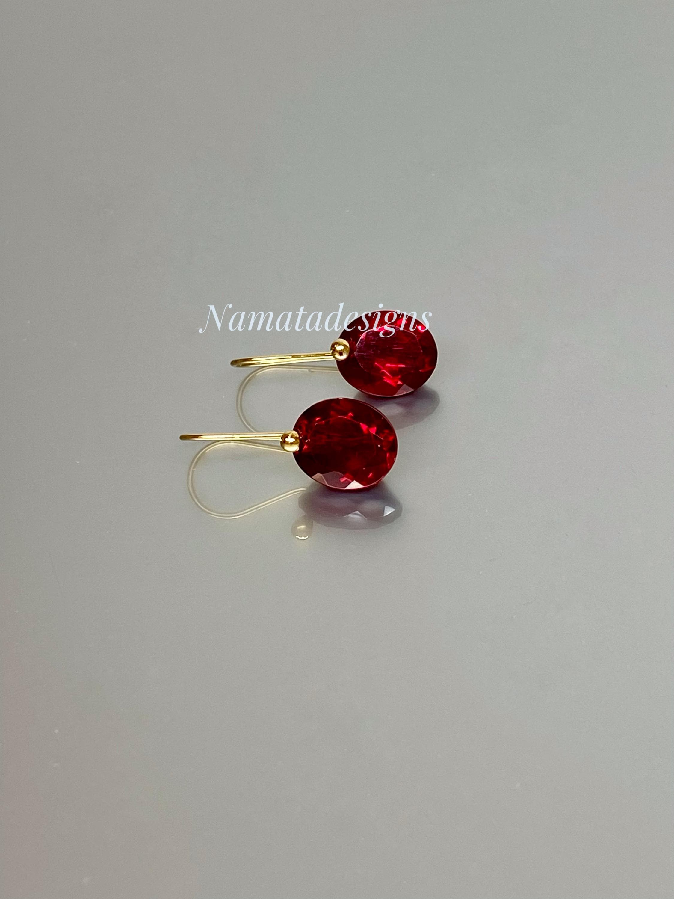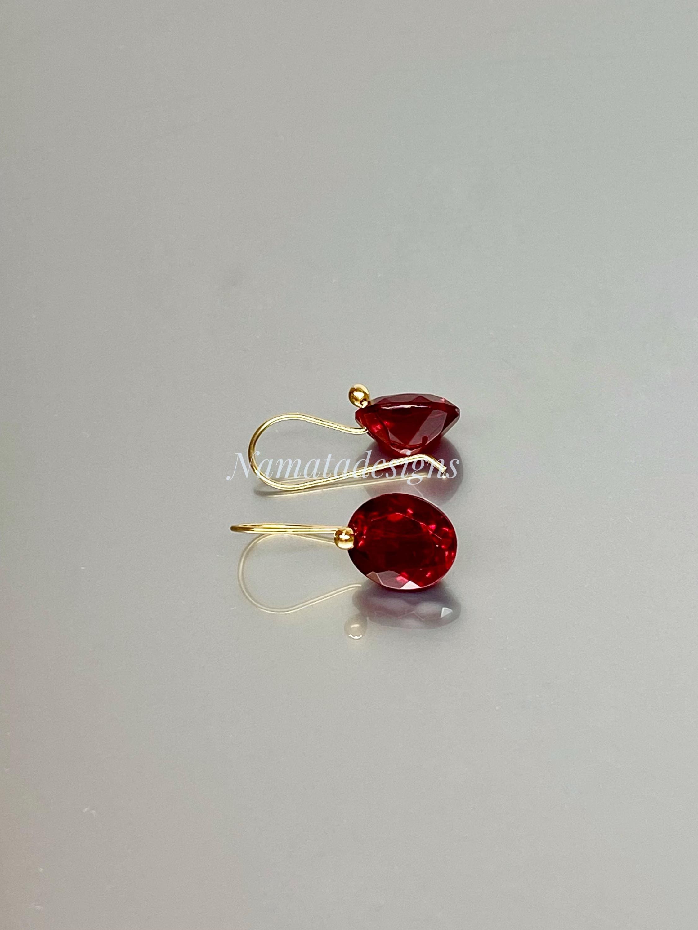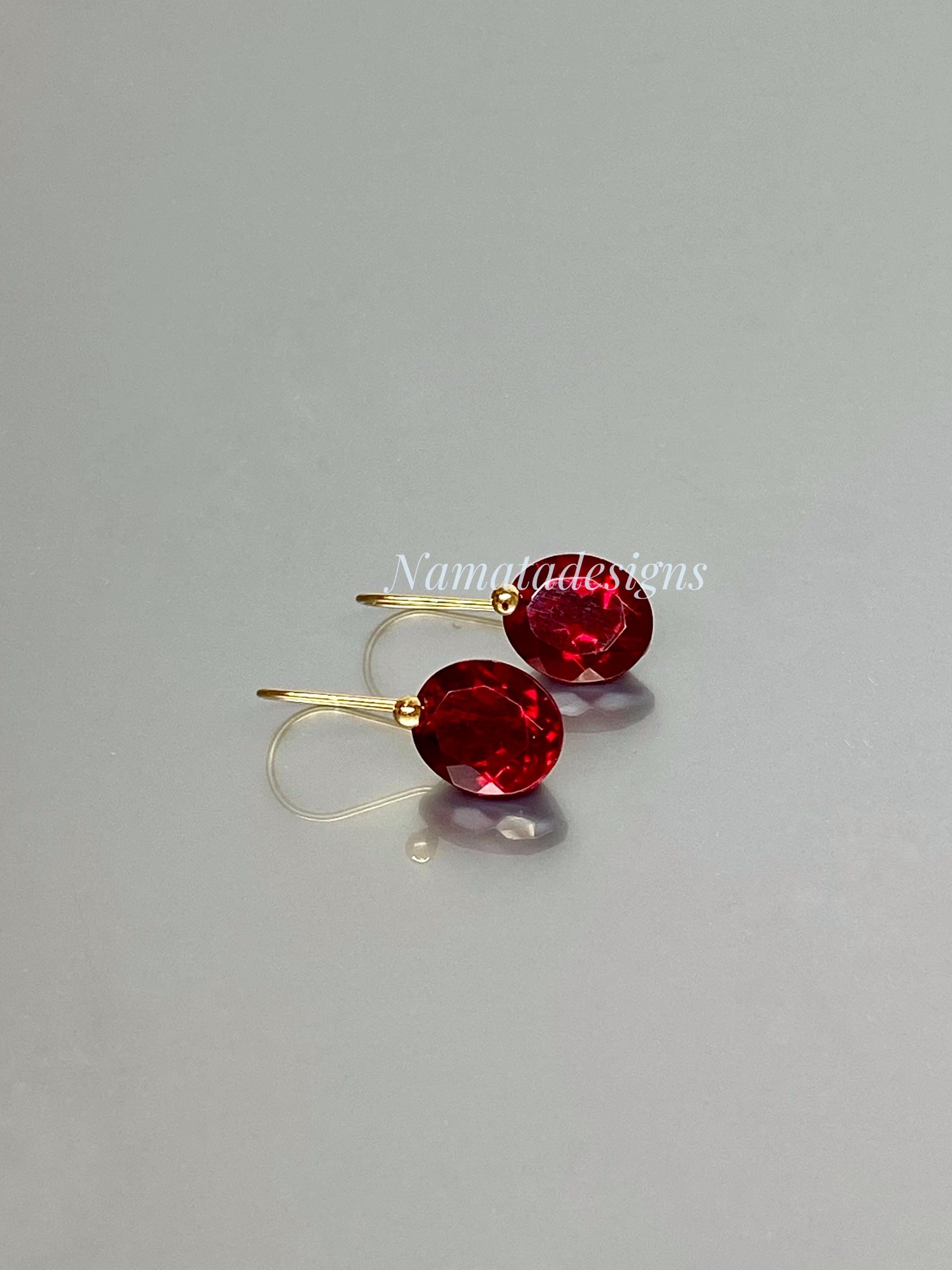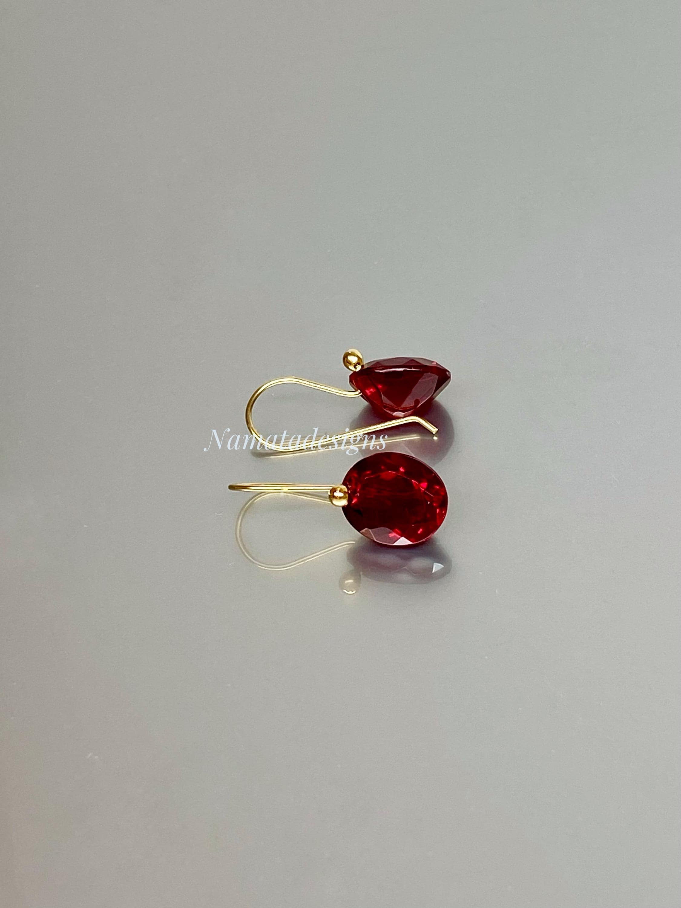 Red Ruby Earrings • Gold Drop Earrings • Minimalist Ruby Jewelry • Gift for Her