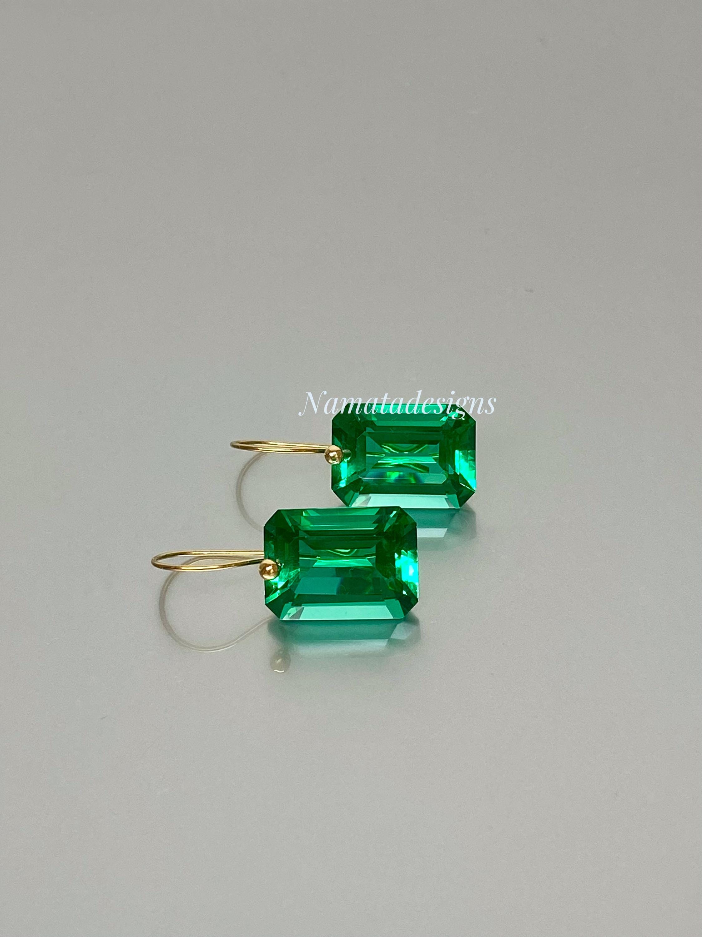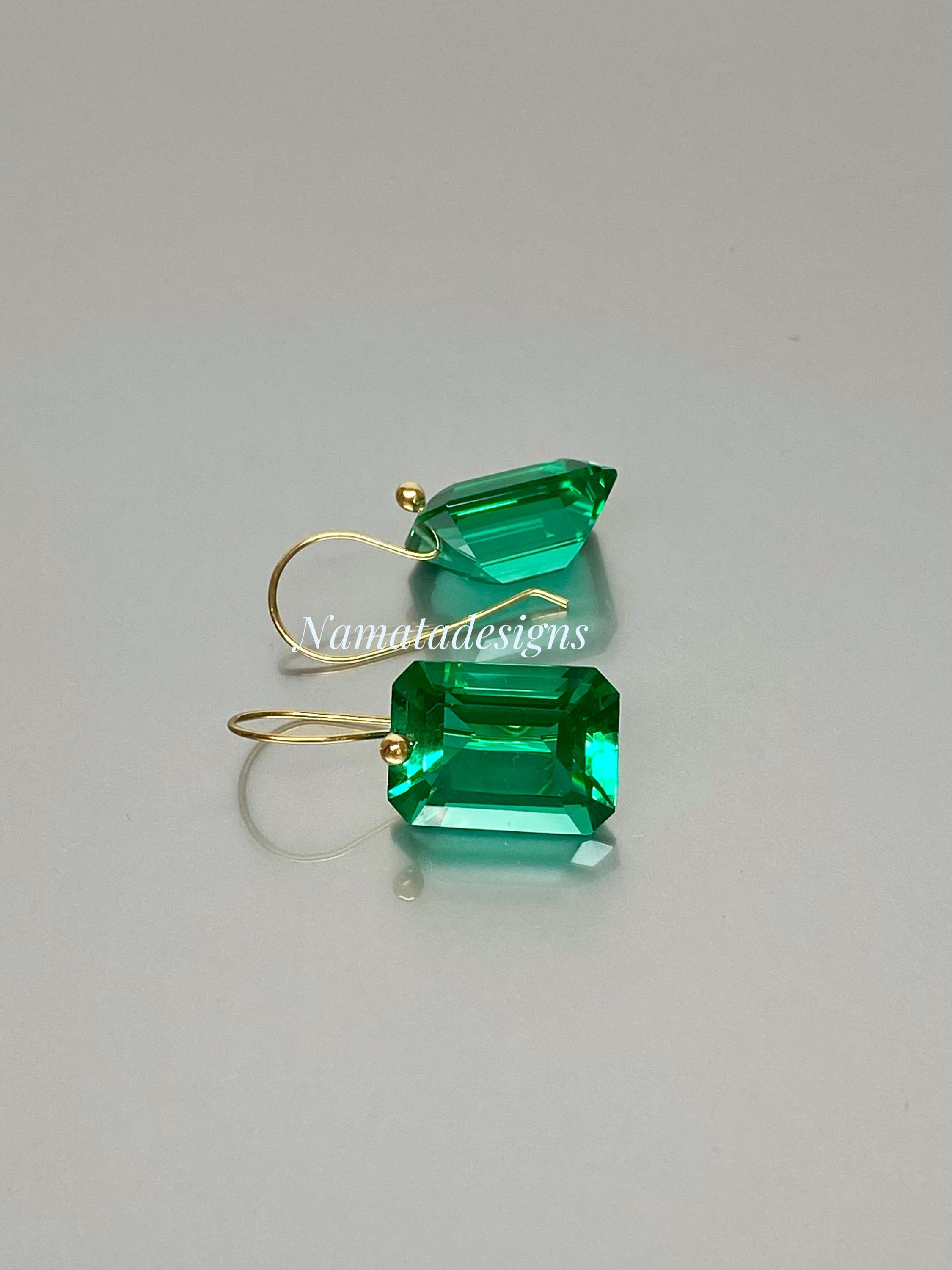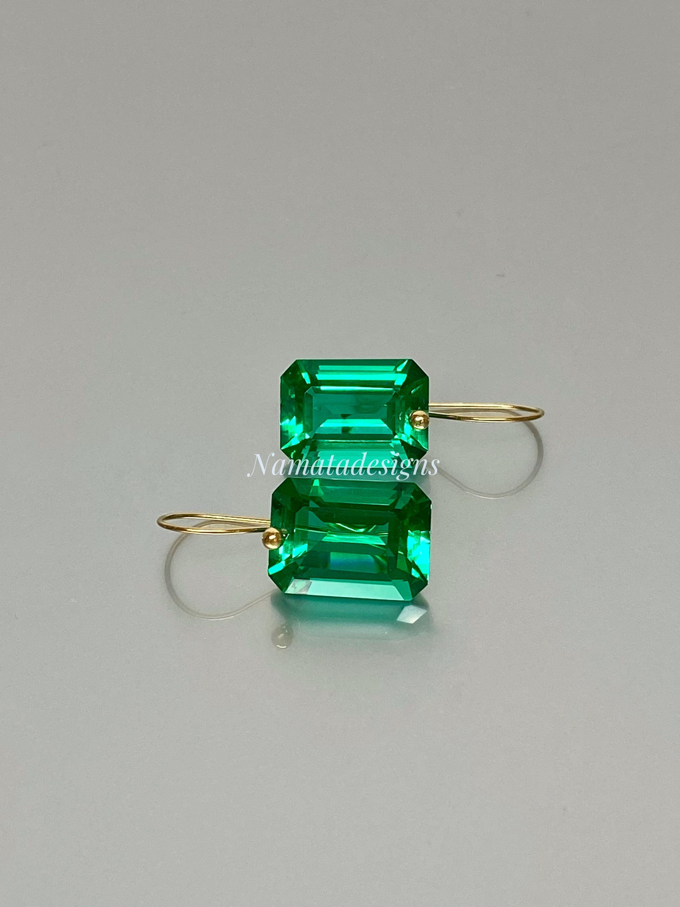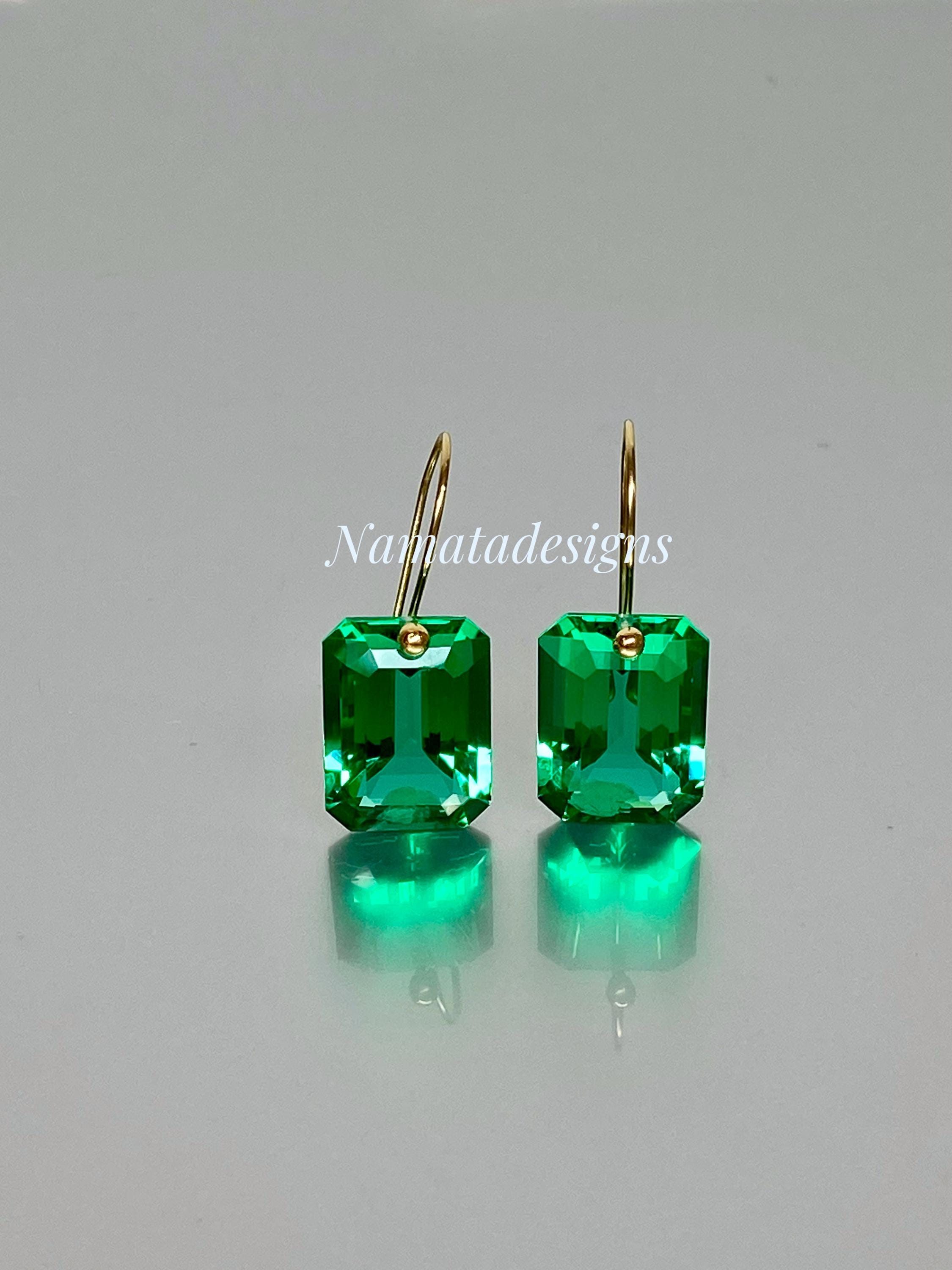 Gold Colombian Emerald Dangle Drop Earrings, Green stone Earrings, Statement Earrings, Emerald Jewelry Gift for Her, October Birthstone.