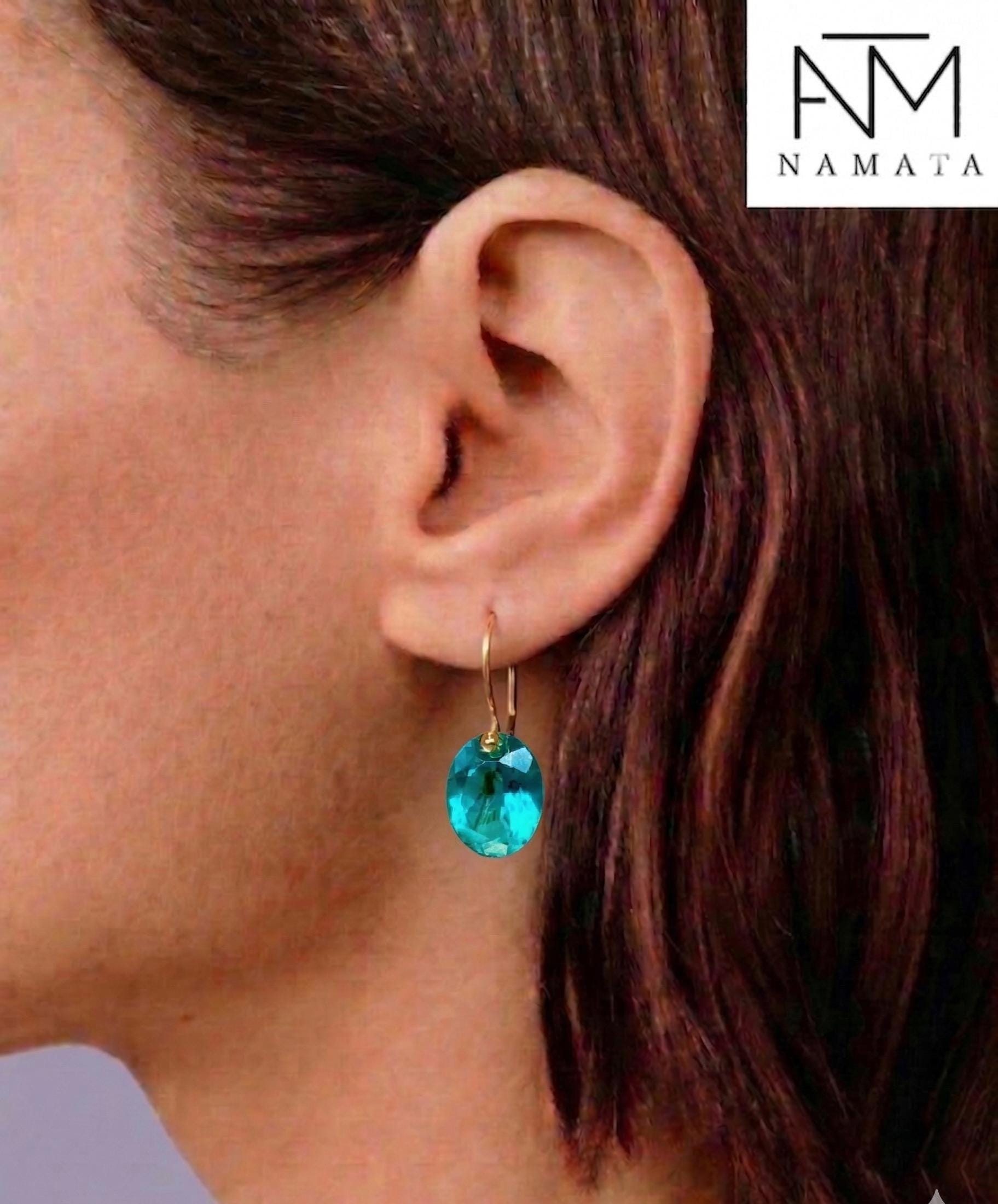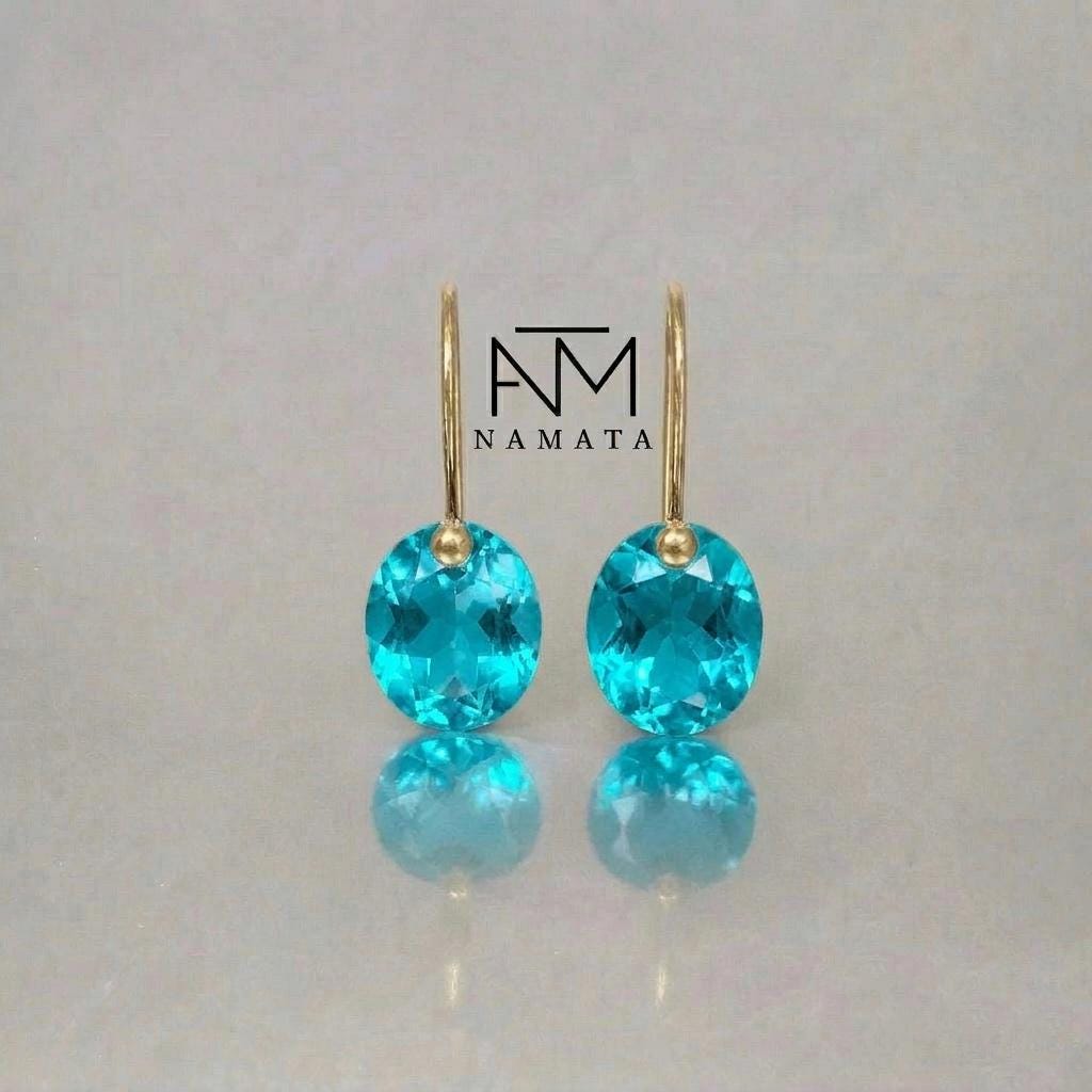 Paraiba Tourmaline Dangle Earrings, Green-Ble Earrings, Wedding Earrings, Minimalist Earrings, Christmas Gift For Her