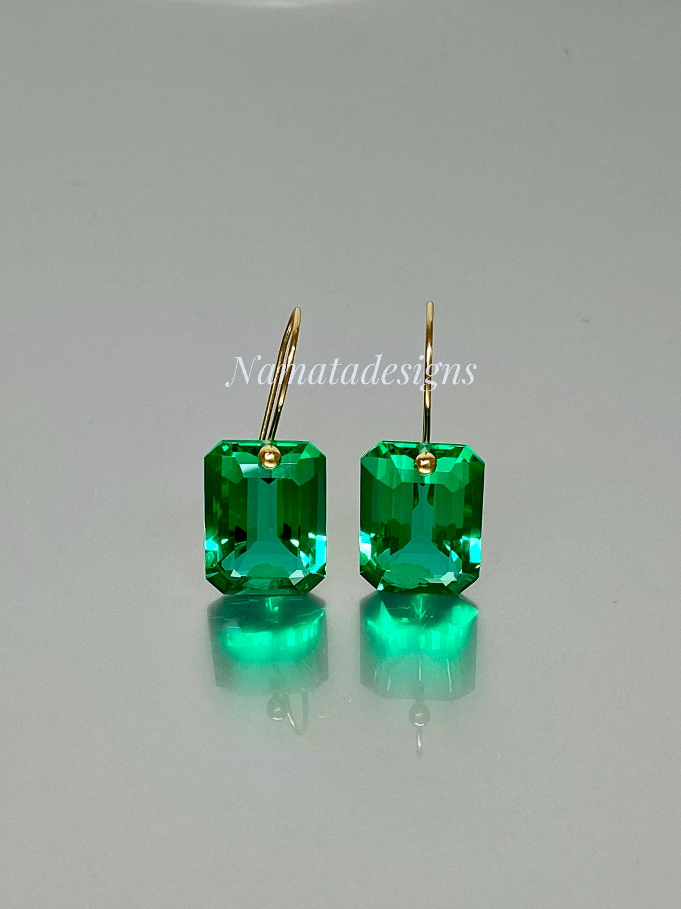 14K/18K Gold Colombian Emerald Dangle Drop Earrings, Green stone Earrings, Statement Earrings, Emerald Jewelry, October Birthstone.