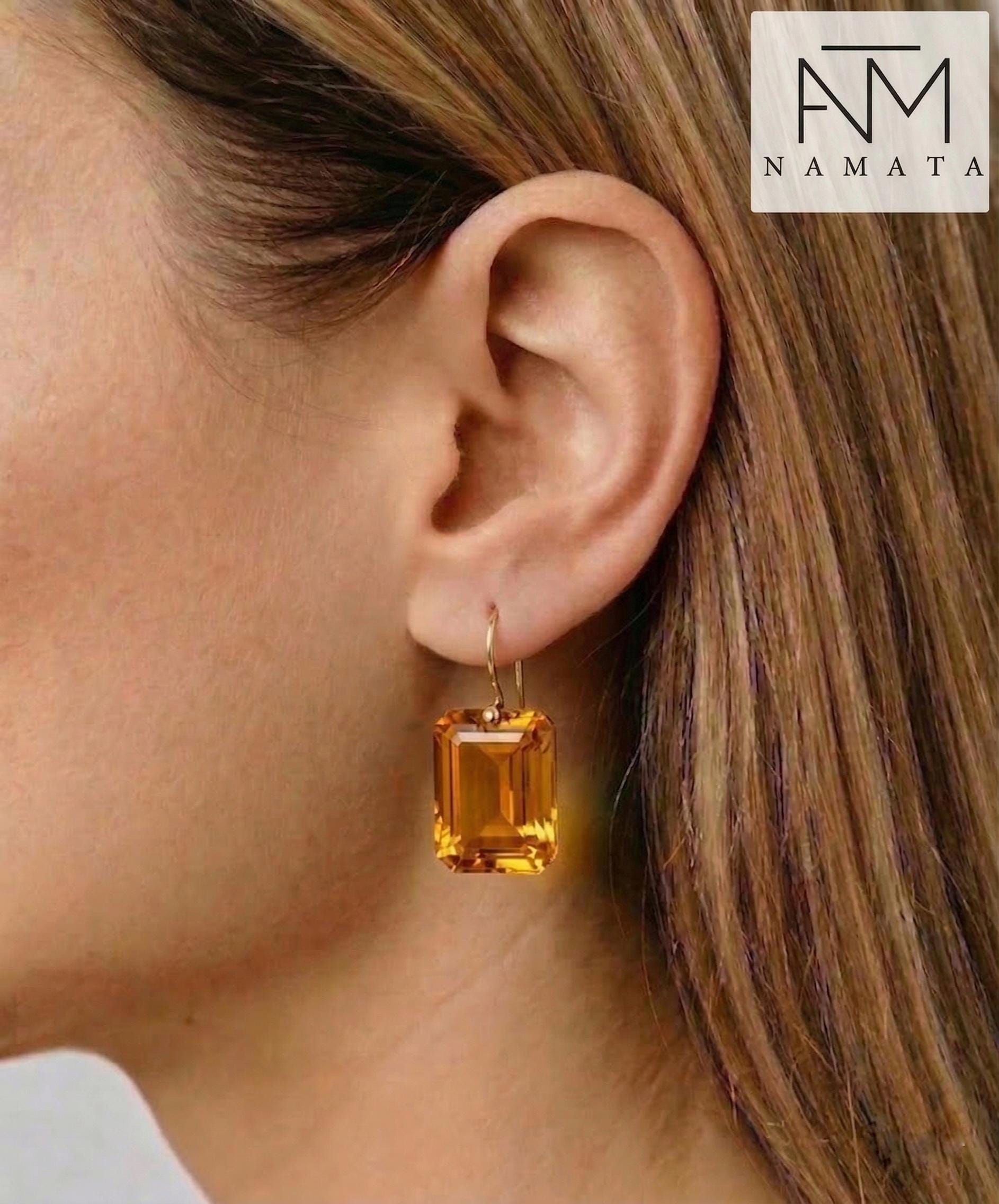 14K/18K Gold Madeira Citrine Dangle Earrings, Yellow Stone Earrings, Statement Earrings, May Birthstone, Citrine Jewelry Gift For Women