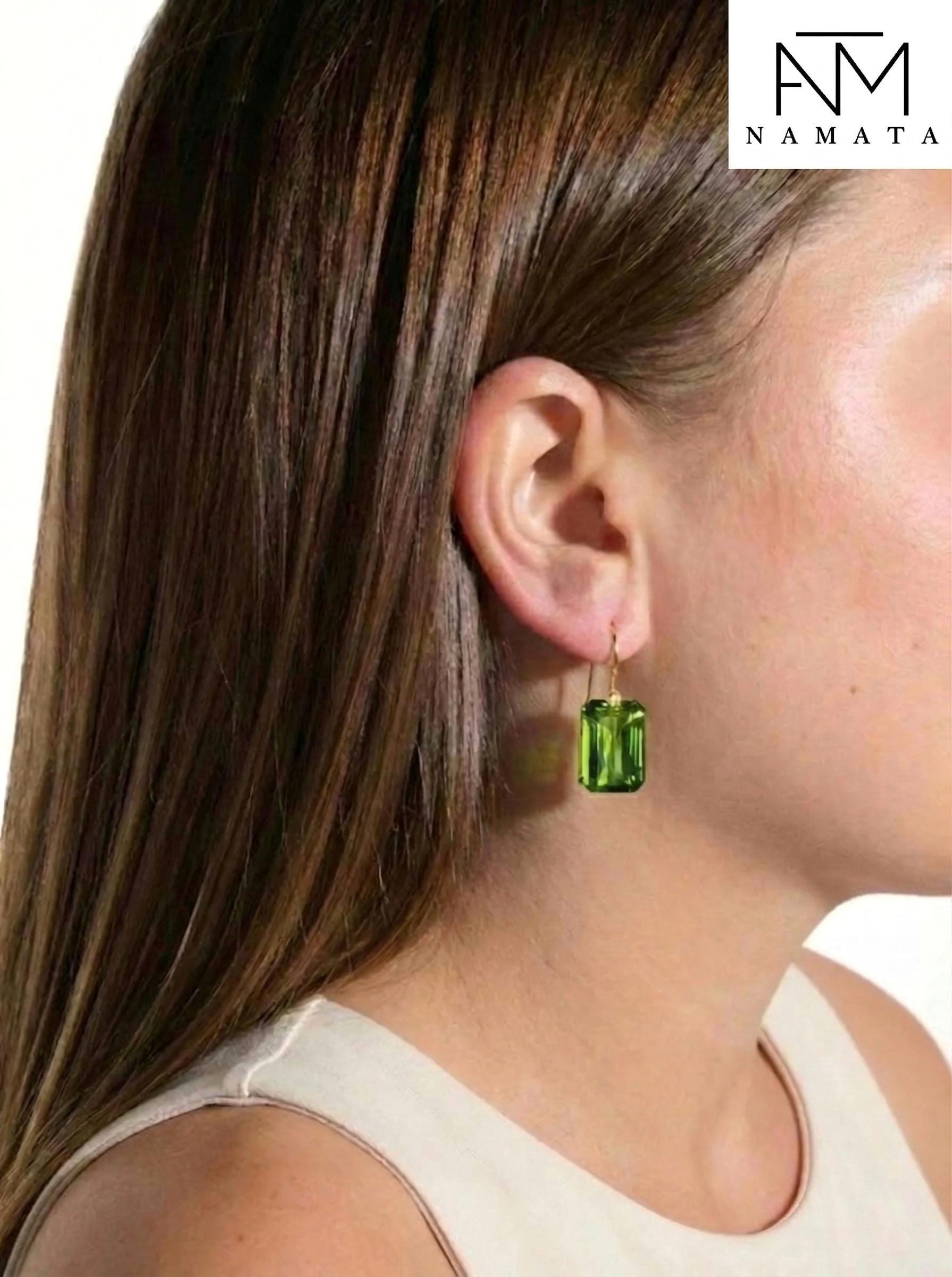 Turn heads with these stunning peridot drop earrings. Featuring flawless rectangular drops in a rich, clear deep green, they bring a fresh burst of color and elegance to any outfit.