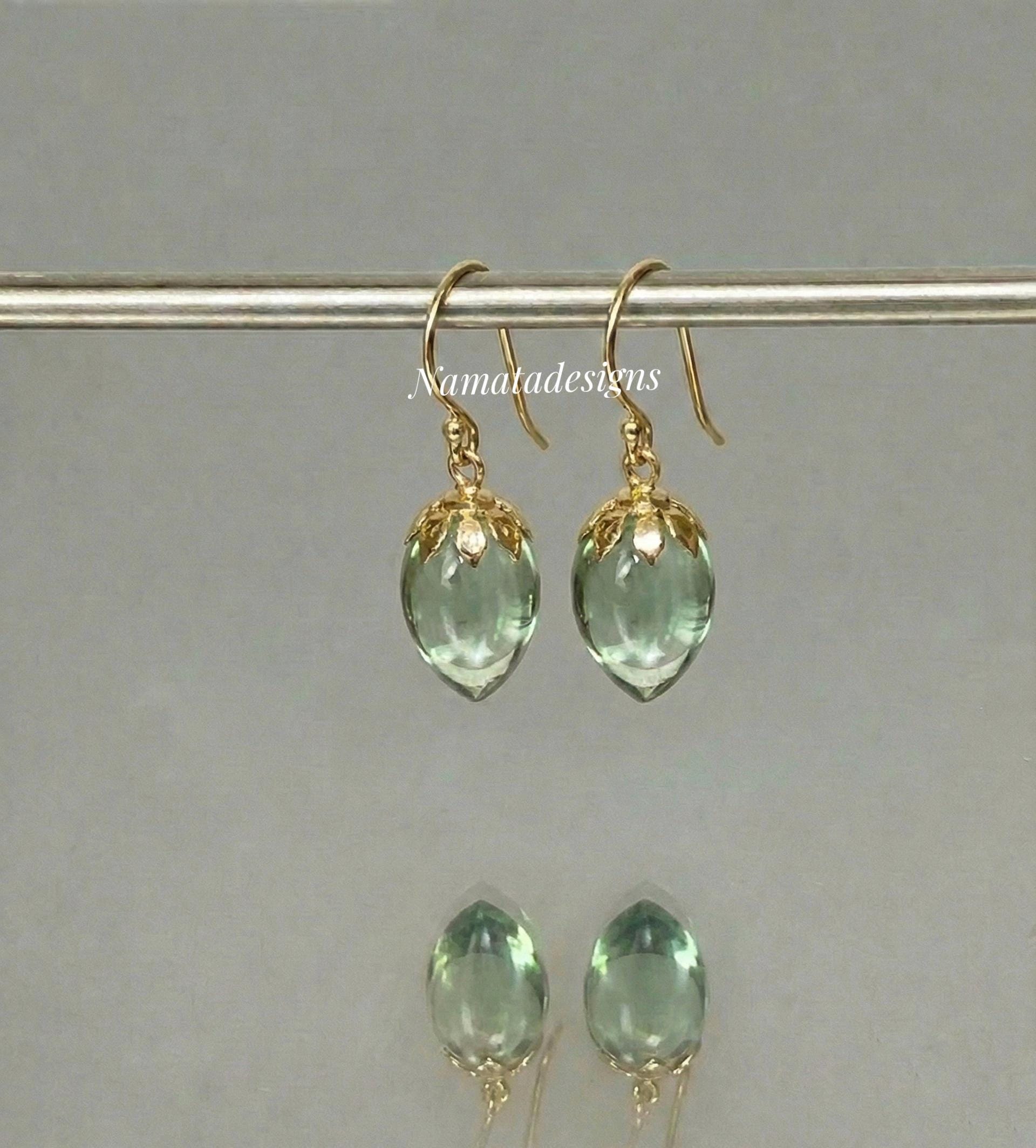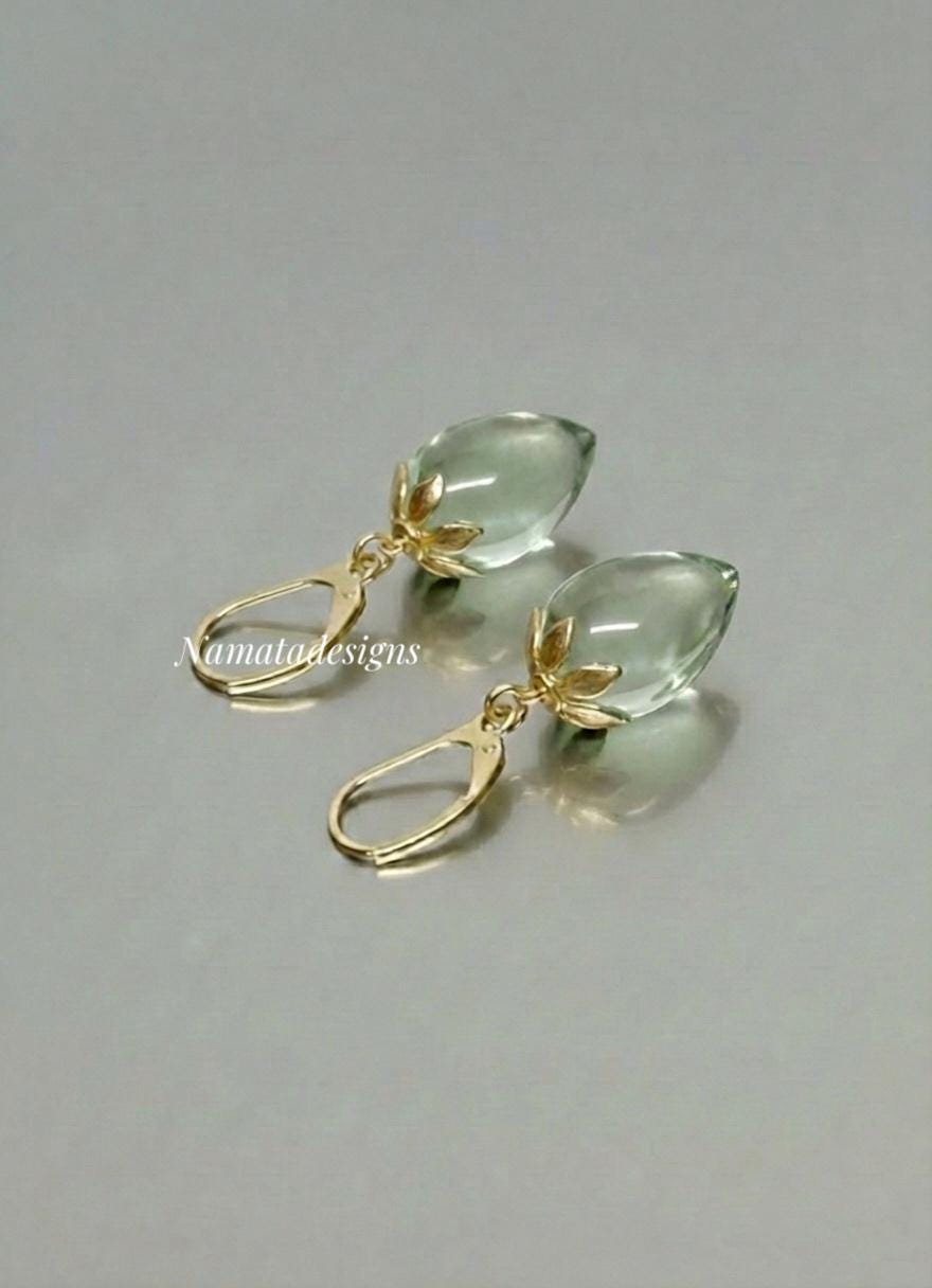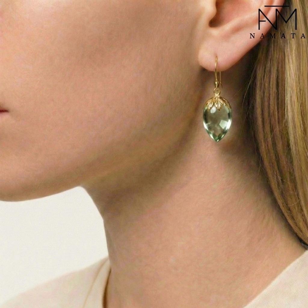 * Gemstone: Green Amethyst / Prasiolite (light green), inverted teardrop