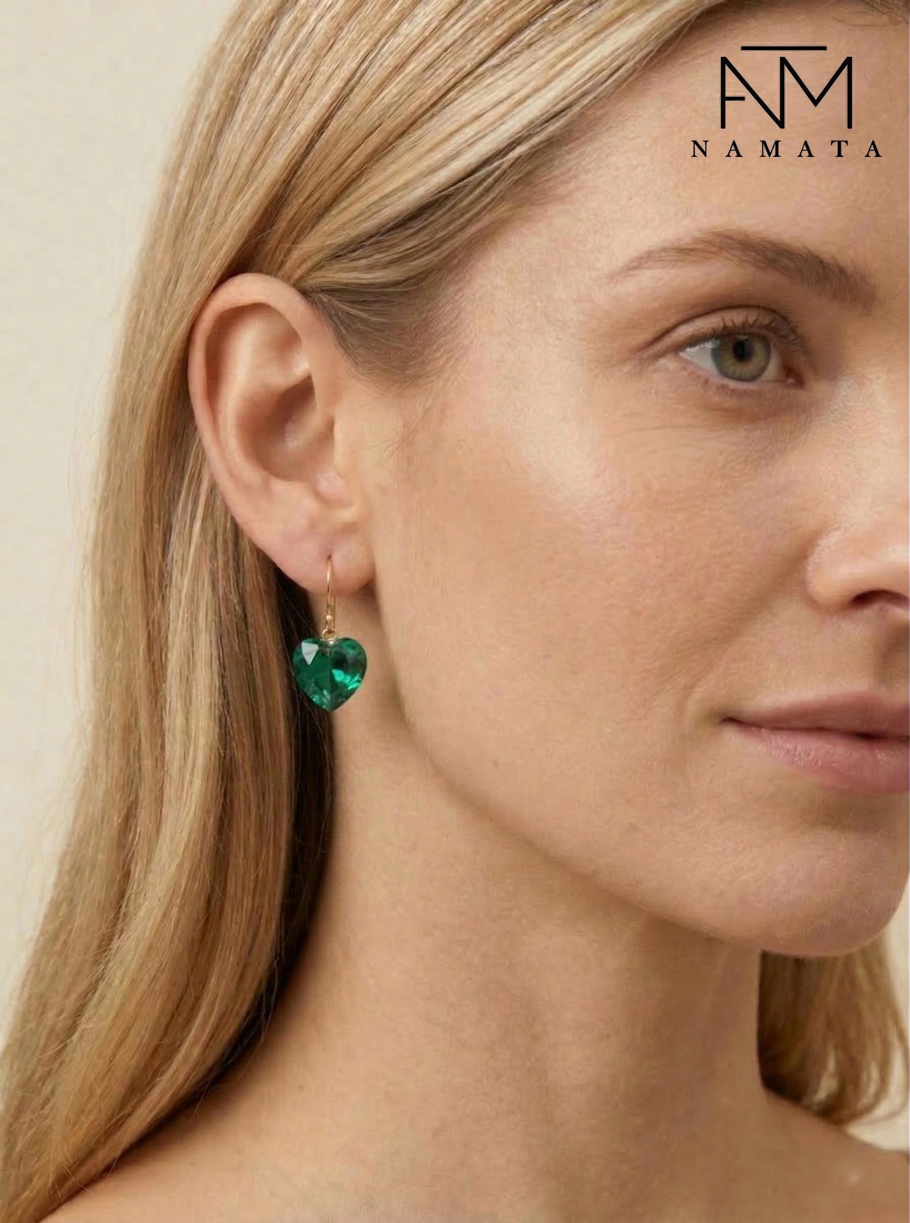 Colombian Emerald Heart Earrings, October Birthstone Gift, Emerald Jewelry For Her