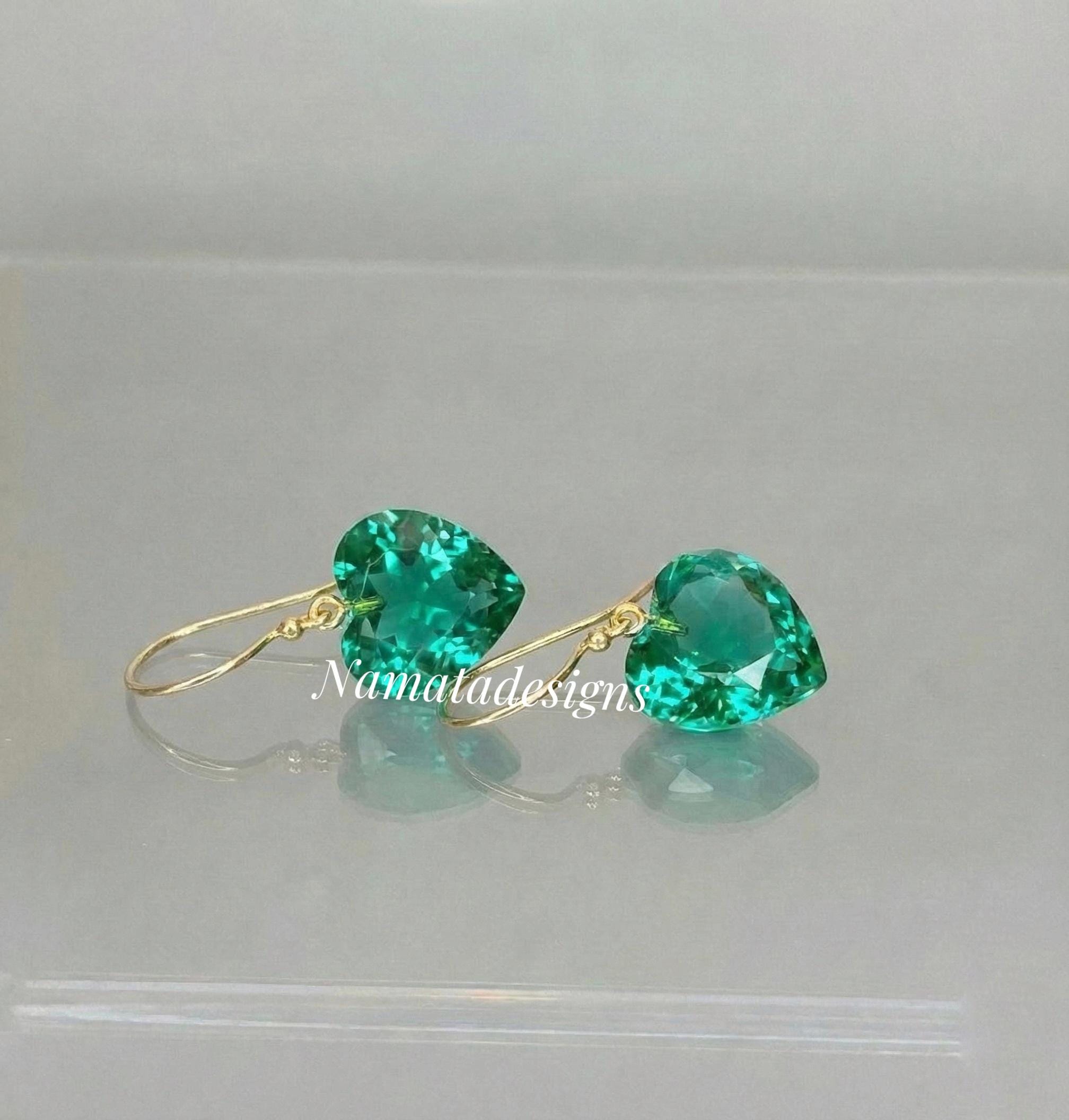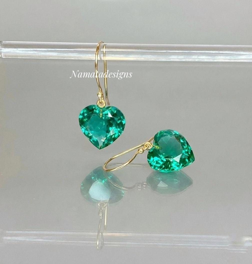 14K Gold Colombian Emerald Heart Earrings, October Birthstone, Heart Earrings, Emerald Jewelry Gift For Her, Mother's Day Gift.