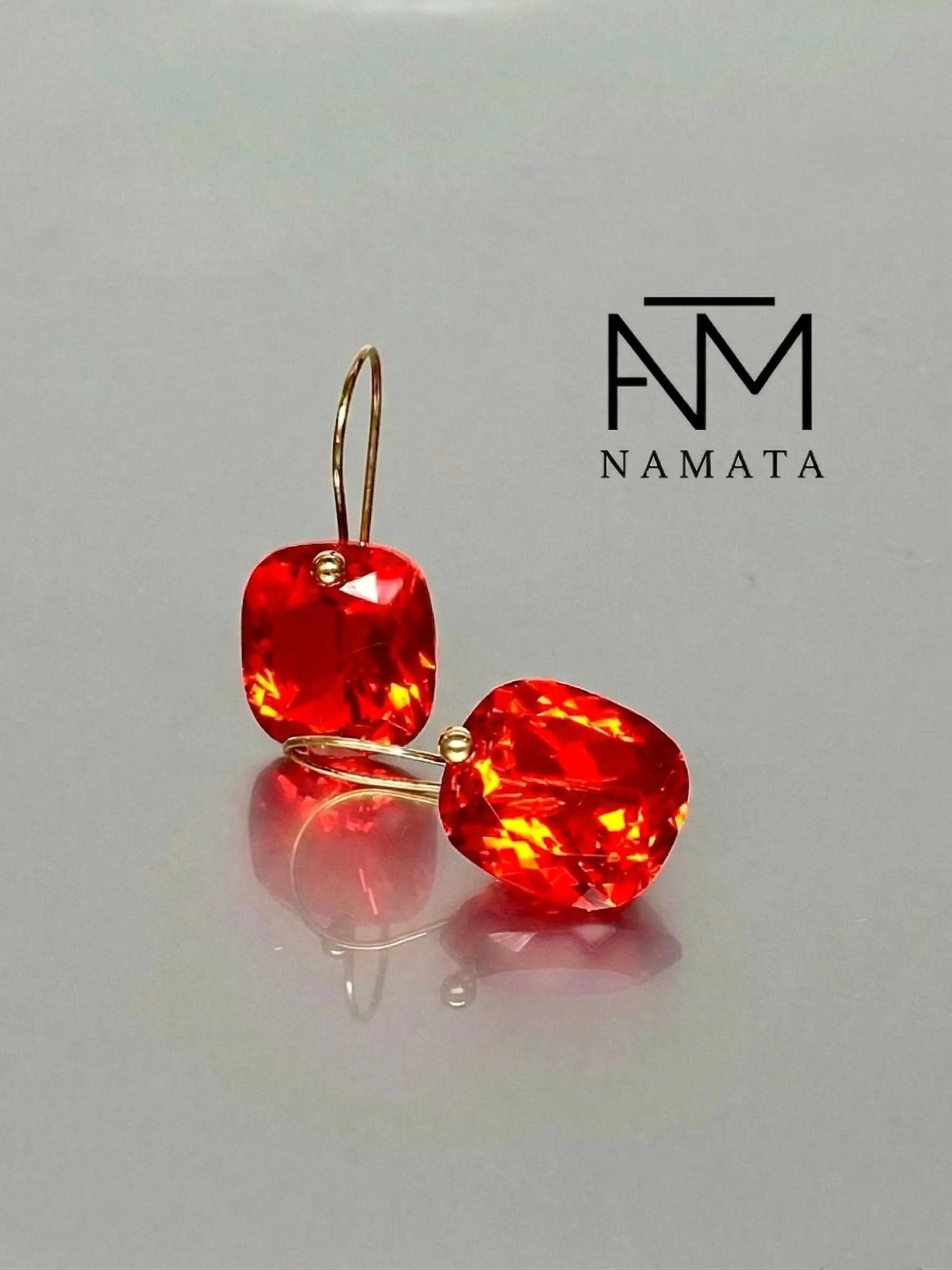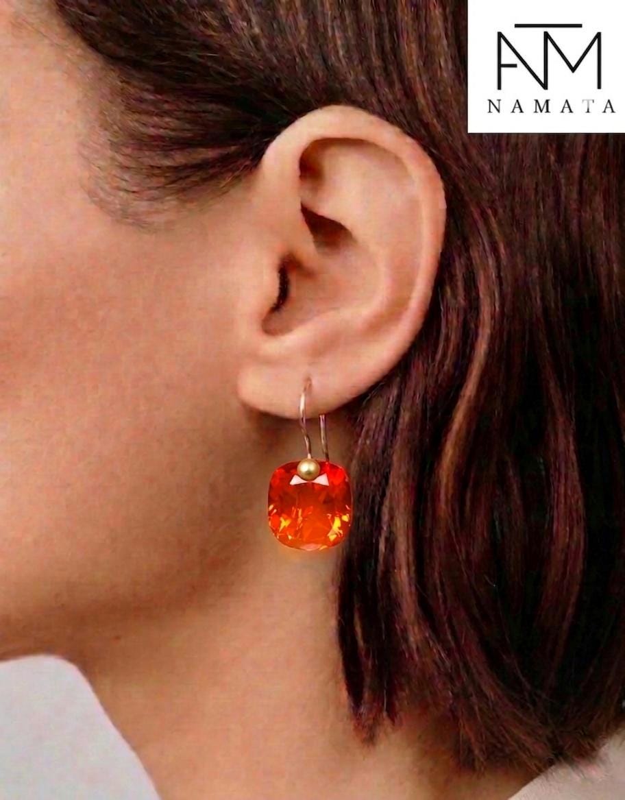 Beautiful fire opal drop earrings, featuring flawlessly faceted stones that radiate with intense flame-orange brilliance. Each drop captures light beautifully, creating a vibrant play of color and depth that brings the stones to life with every movement.