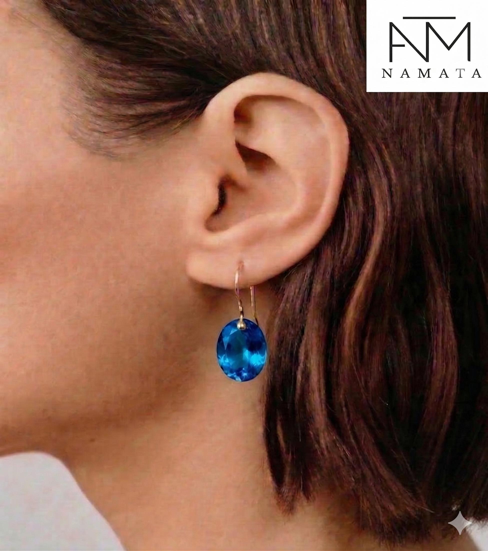 Gorgeous sparkly Swiss blue Topaz earrings. The Faceted ovals are flawless and eye-clean and have a beautiful, vivid, clear, bright blue color. The earrings are elegant and minimalist, and have a luxurious look.