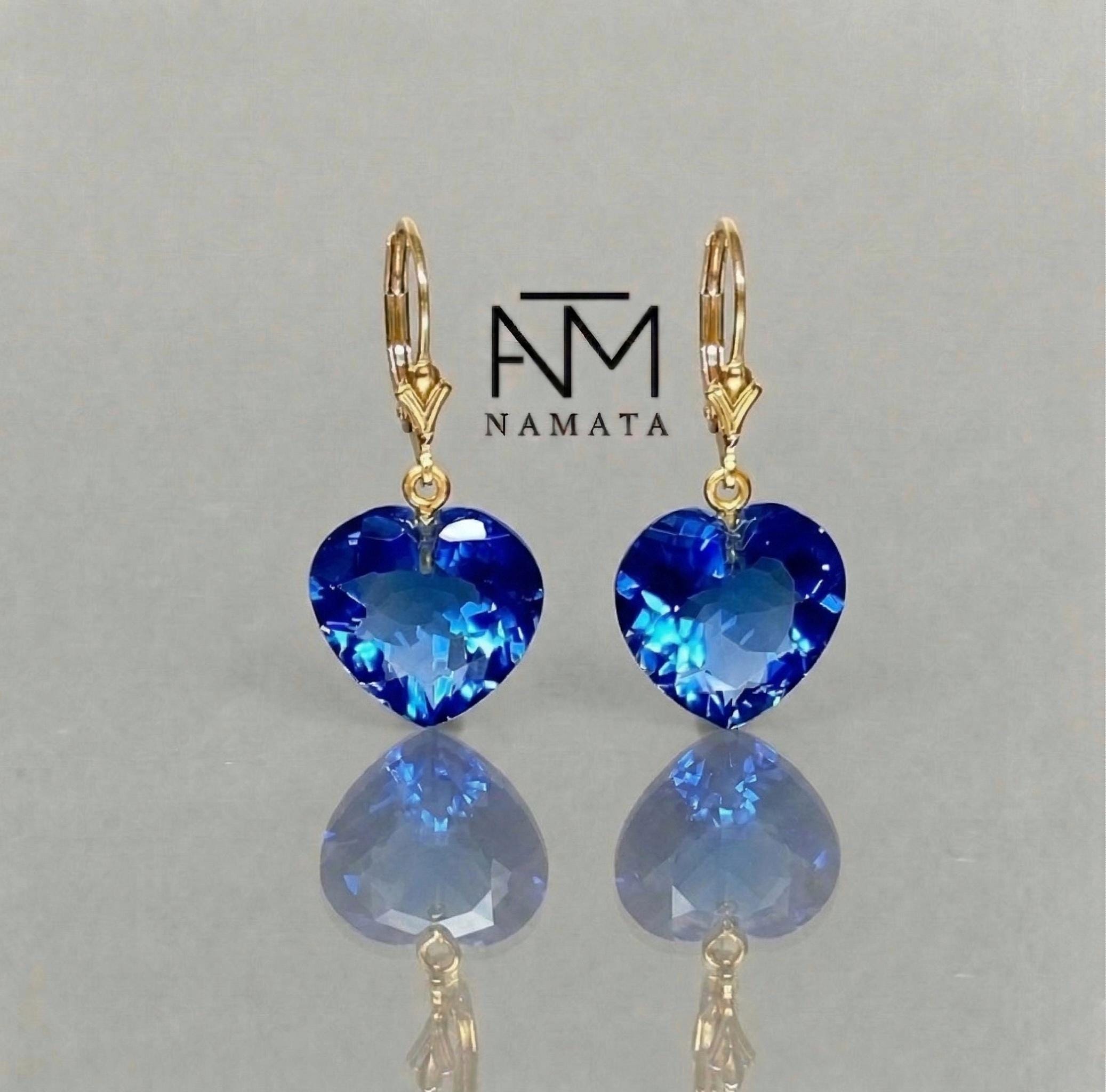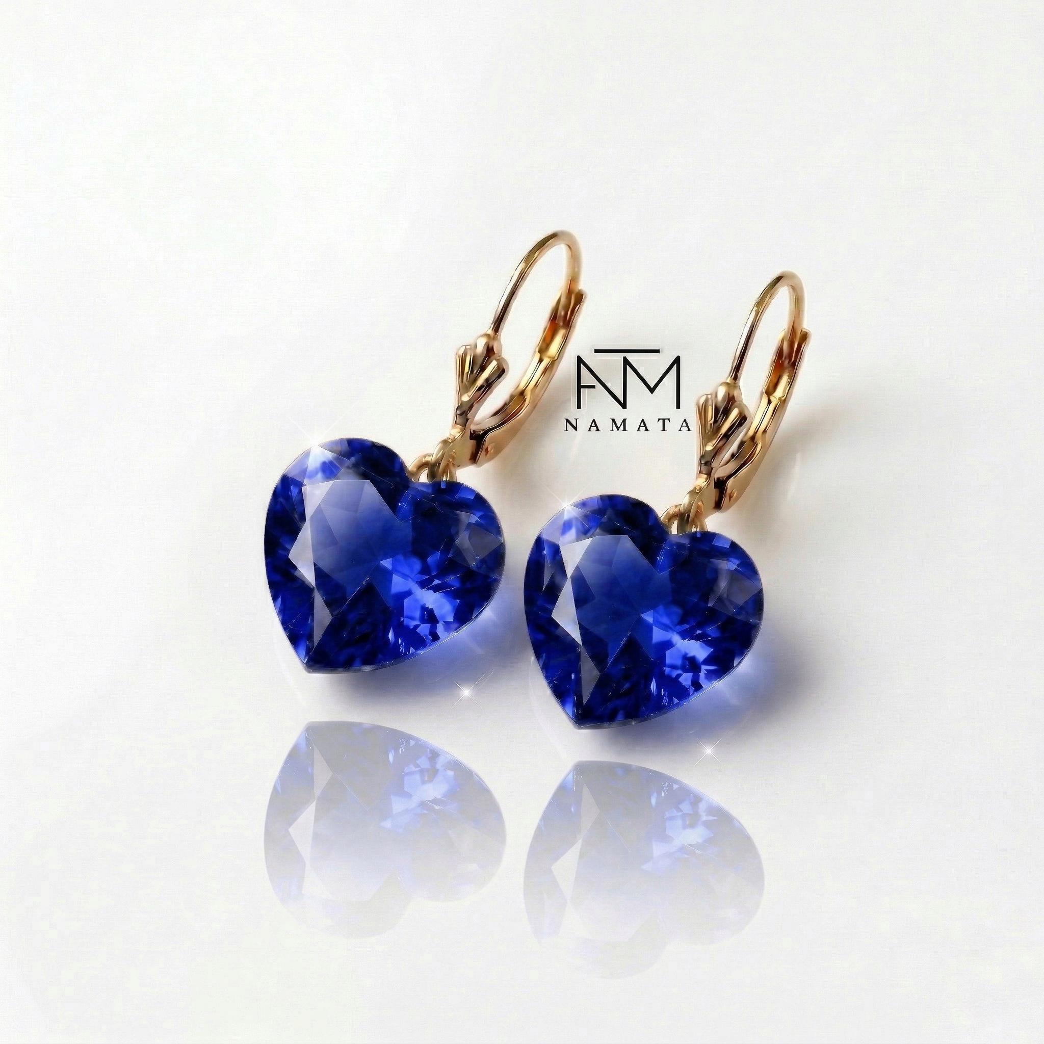 Featuring flawless faceted heart-shaped tanzanite stones in a clear, radiant blue-violet hue, these earrings reflect light beautifully, revealing depth, brilliance, and a luxurious sparkle with every movement.