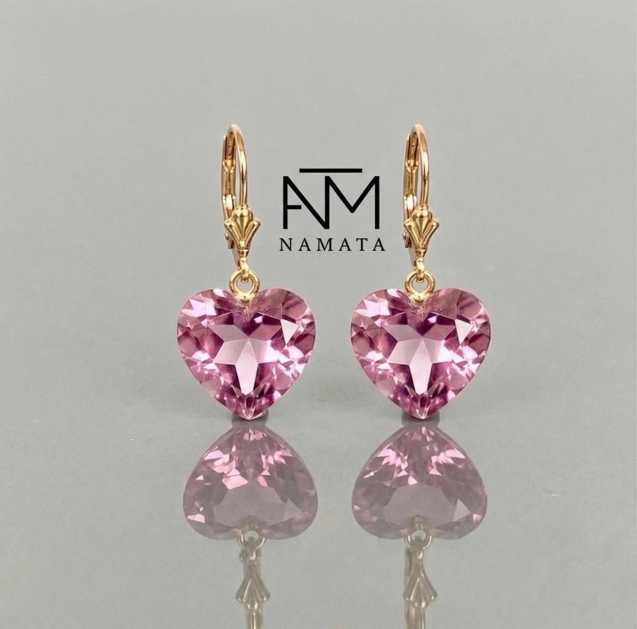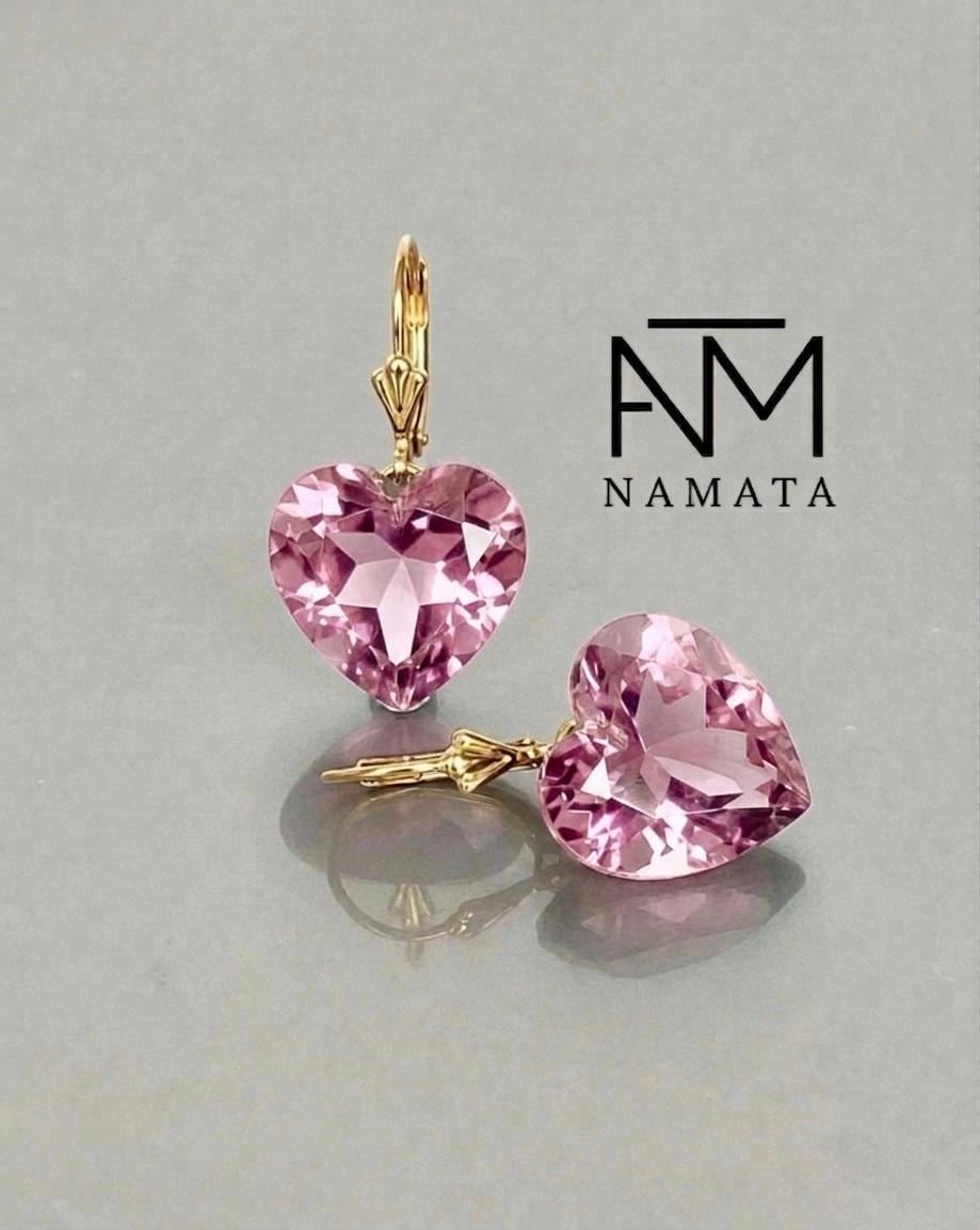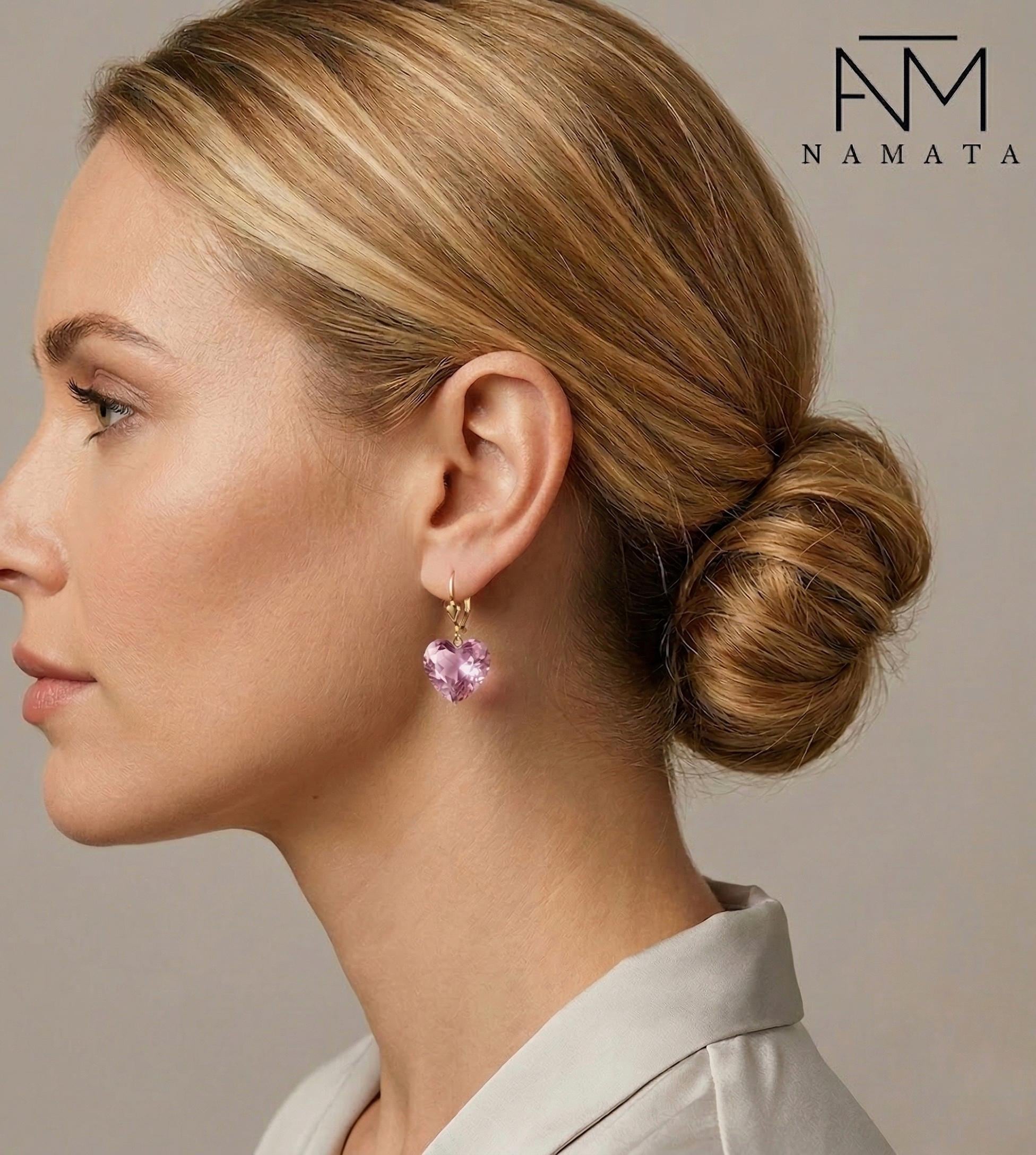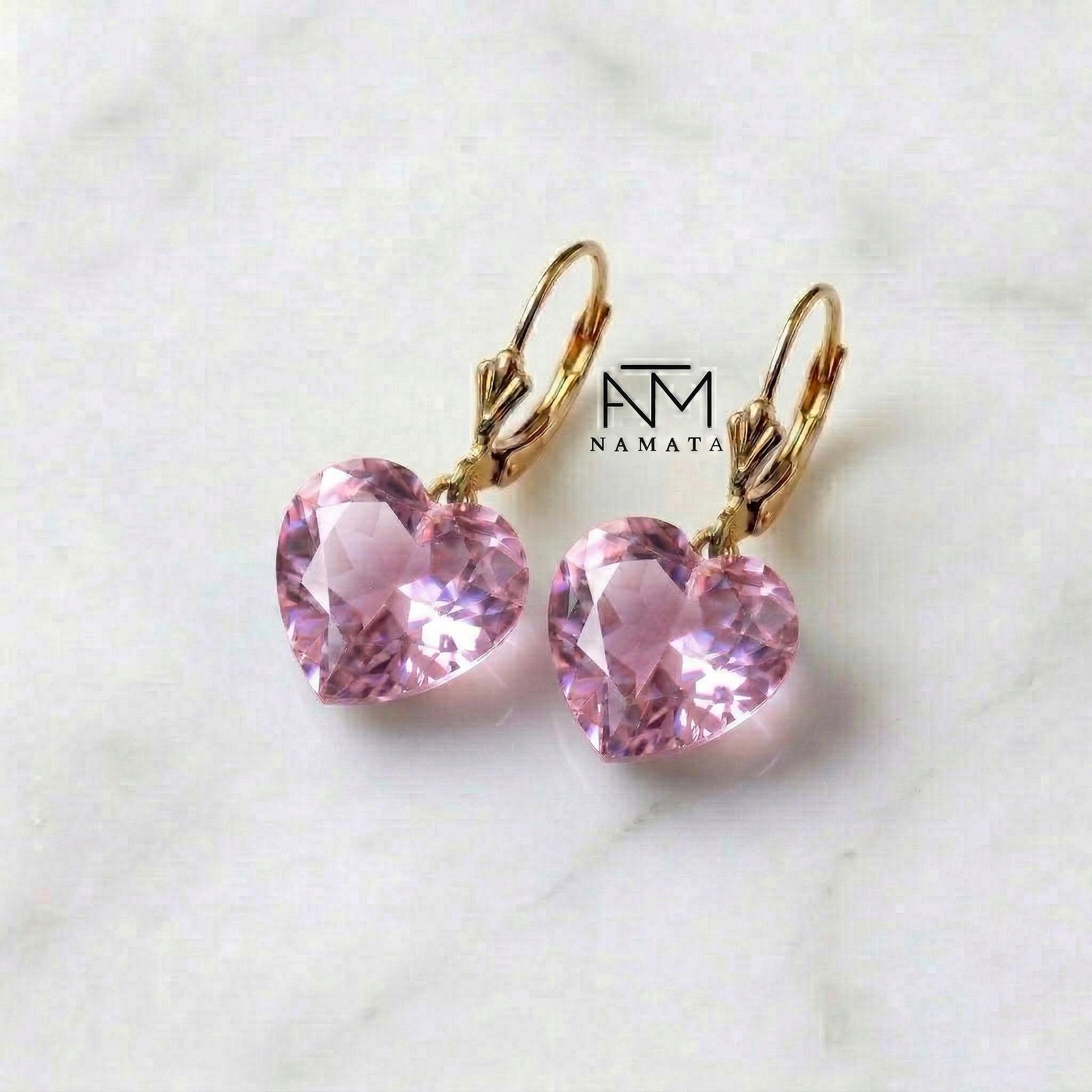 Perfect as romantic heart earrings, bridal jewelry, or a meaningful gift for her, these timeless pink gemstone earrings add a touch of elegance and femininity to any outfit — from everyday wear to special occasions.