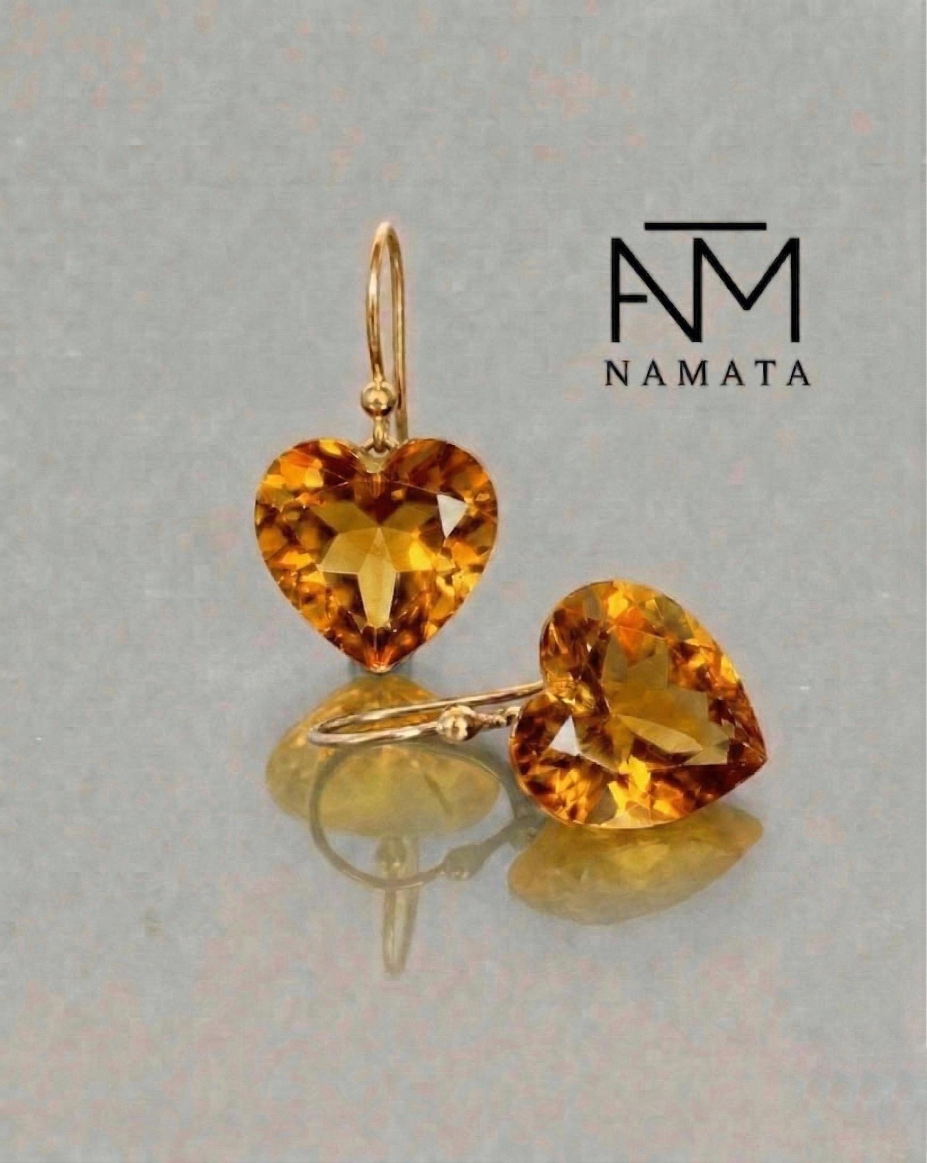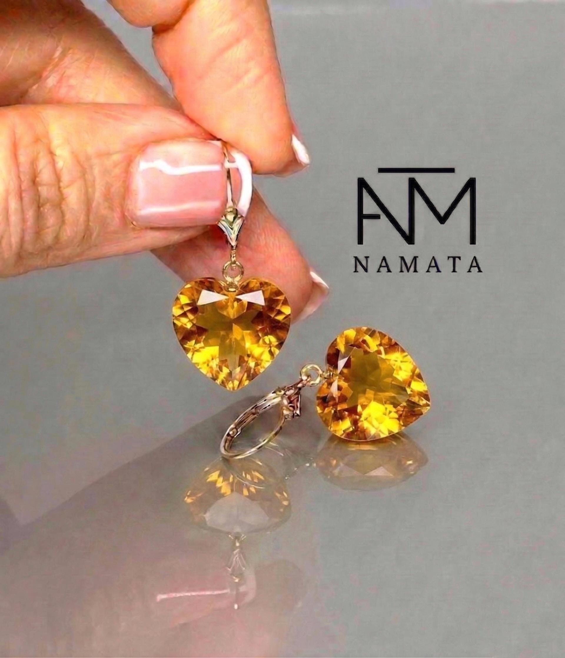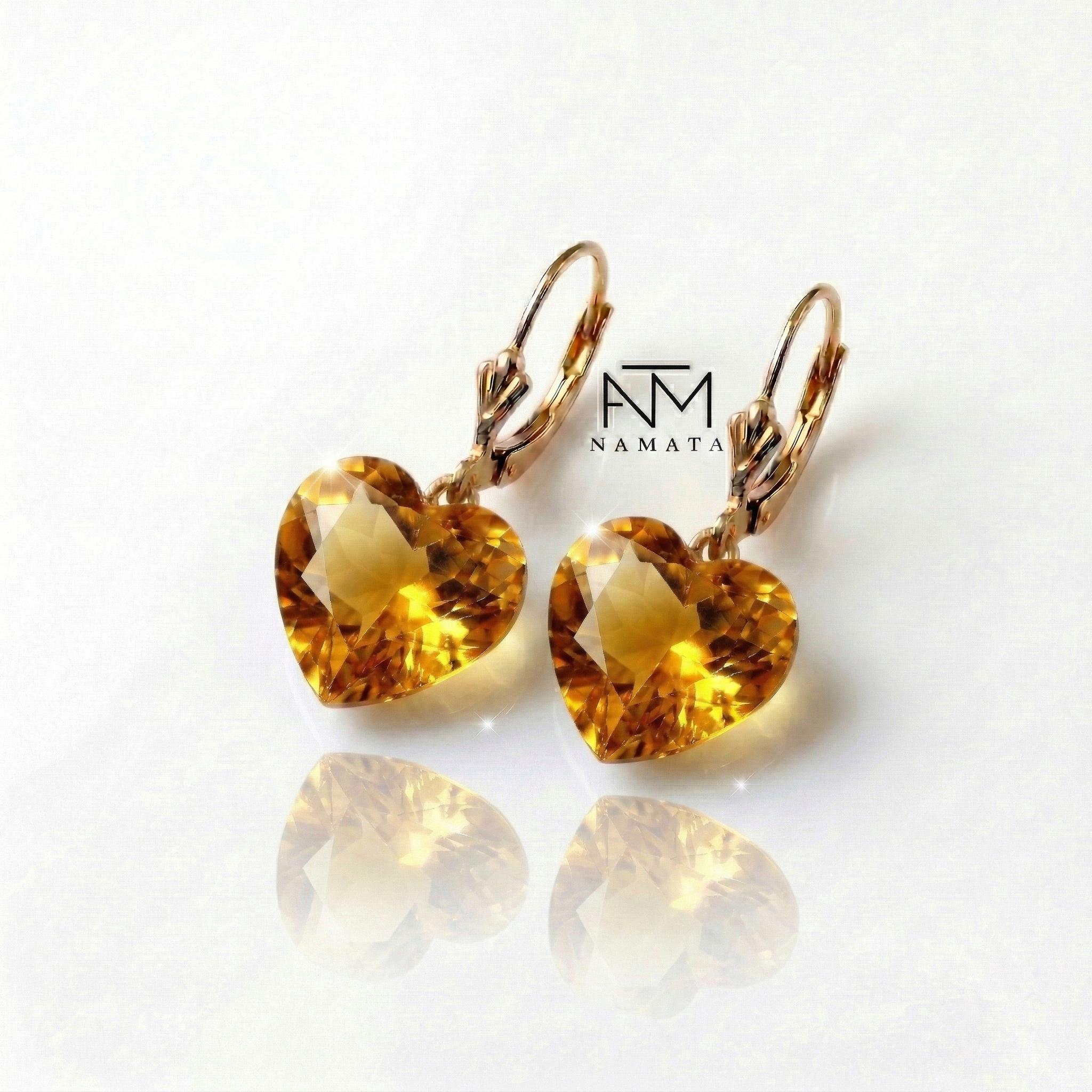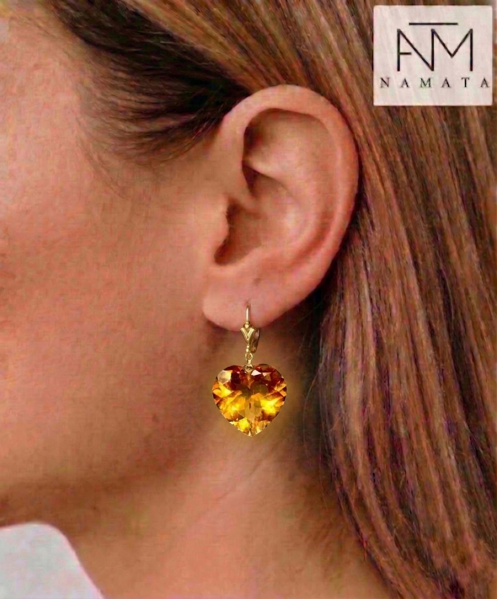 Gorgeous sparkly golden citrine earrings. The Faceted heart-shaped drops are flawless and have beautiful golden colors. The drops are attached to secure 24k gold vermeil/Sterling French ear wires or lever backs. The earrings are elegant and have a luxurious look.