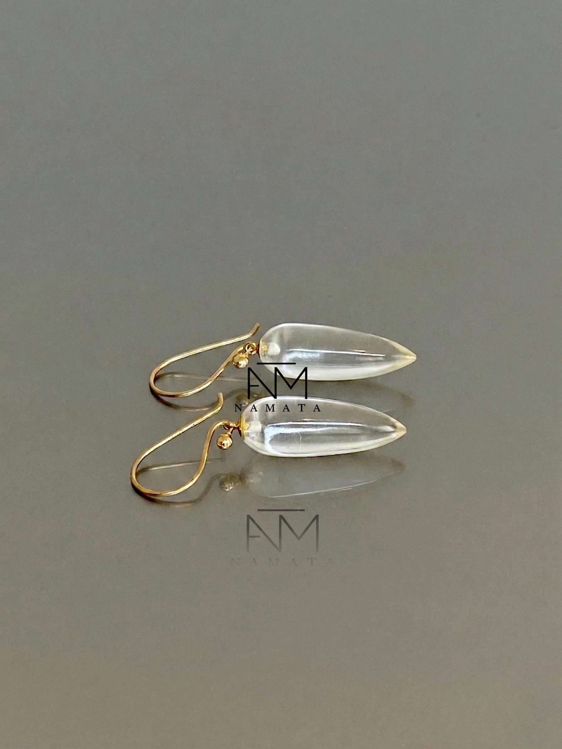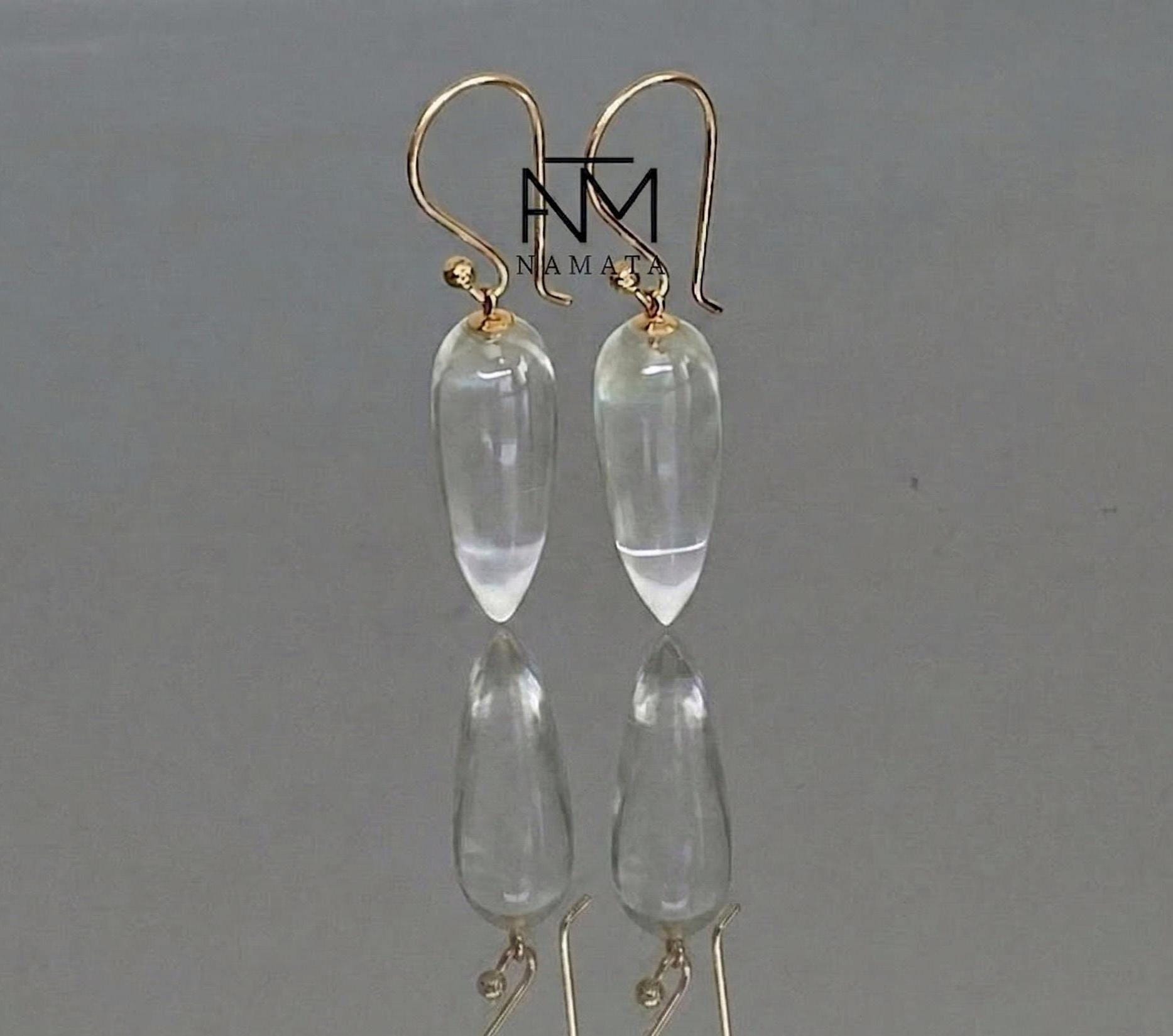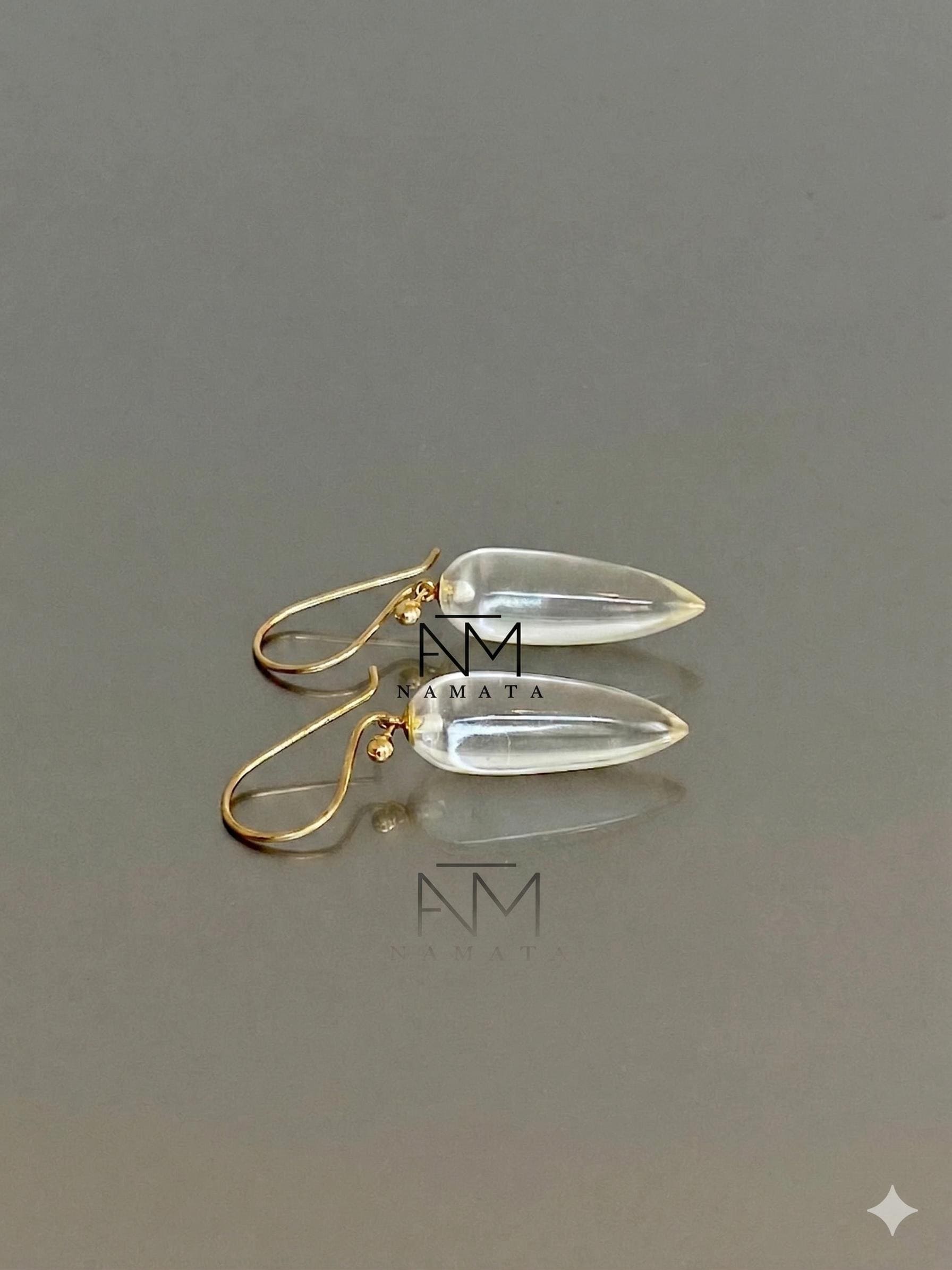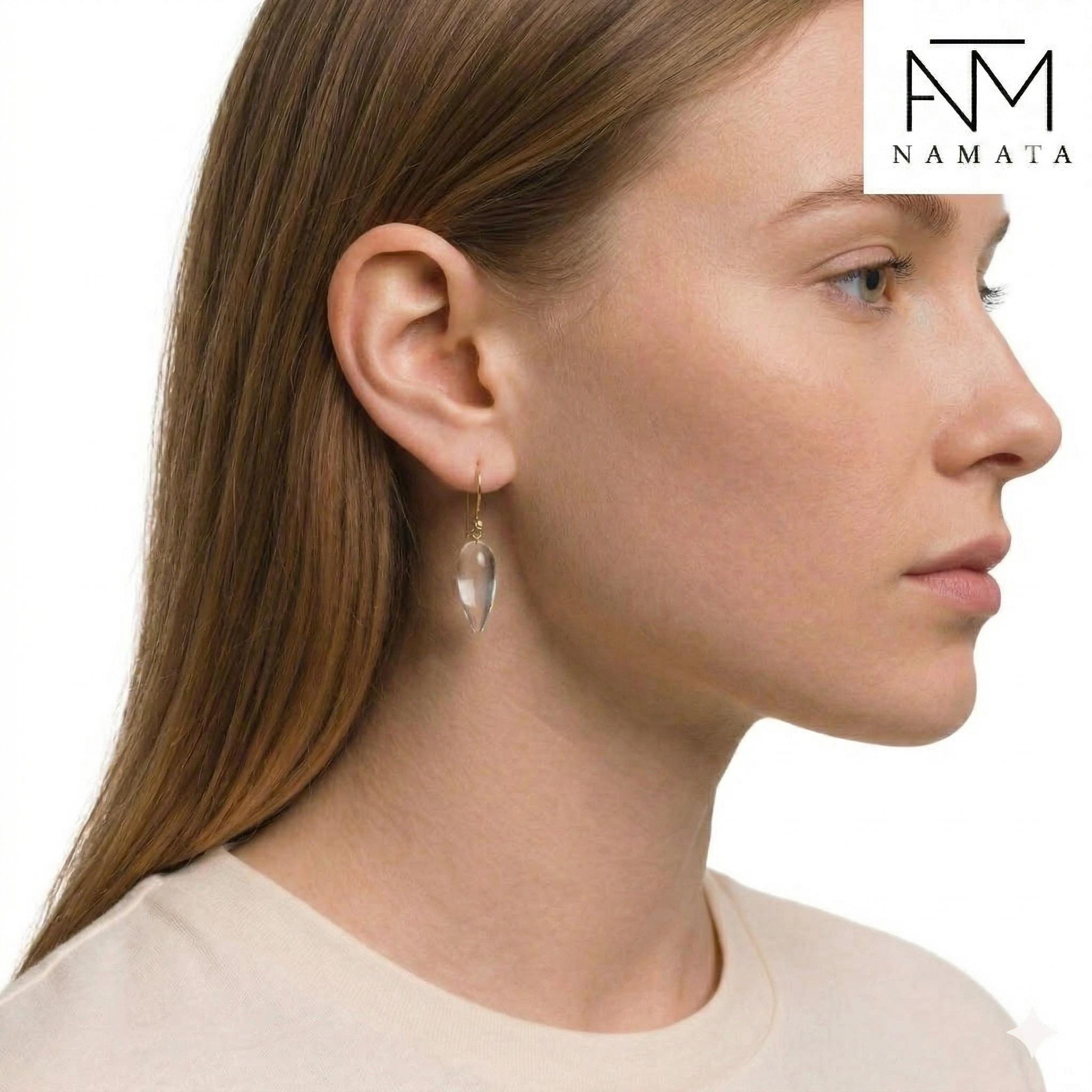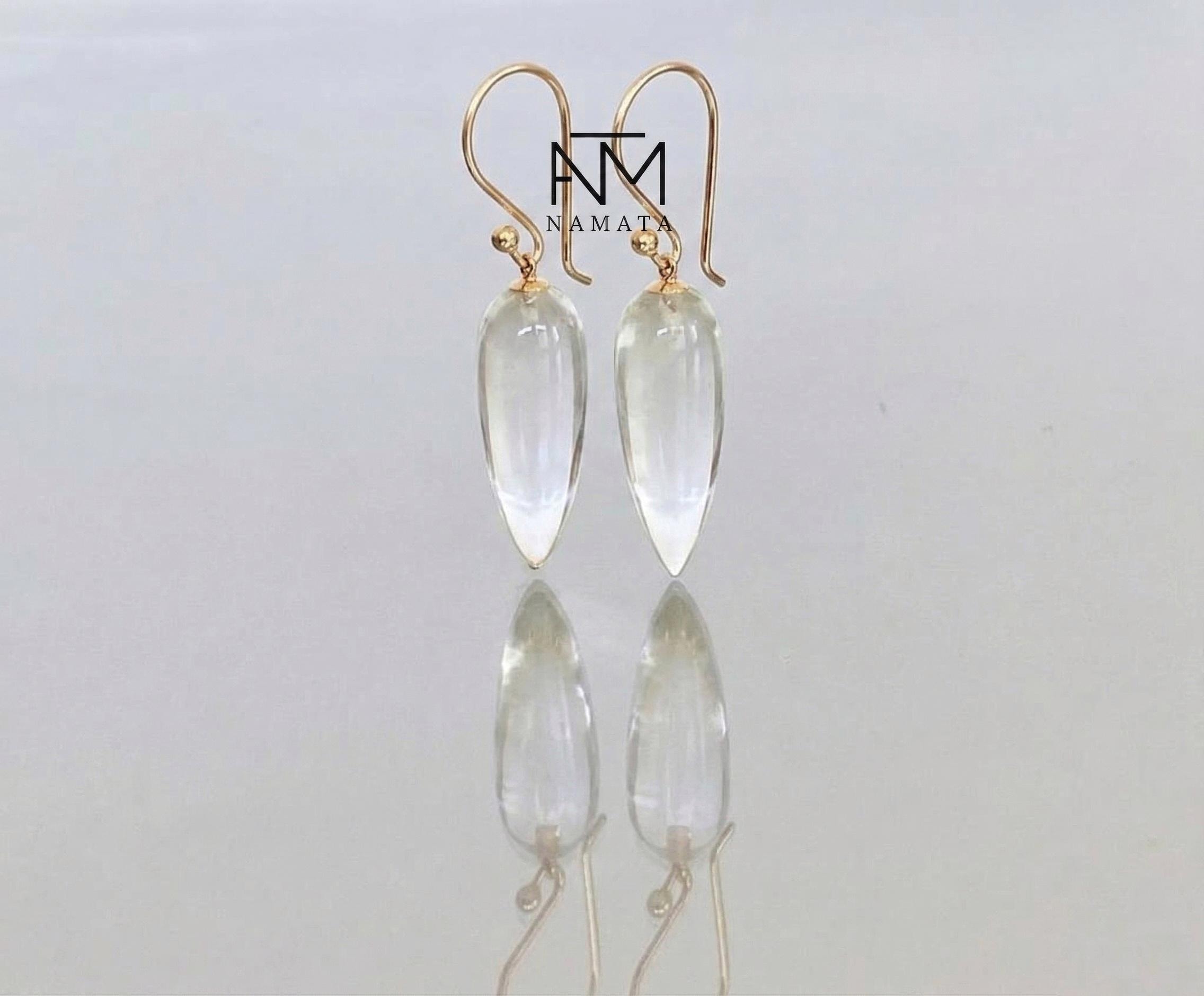 Each crystal drop is expertly crafted and securely attached to 24k gold vermeil \14 K solid-gold ear wires, featuring a polished ball end for a unique, refined finish. The ear wires are stamped as proof of 14K solid gold, and carefully smoothed to ensure a comfortable, irritation-free wearing experience.