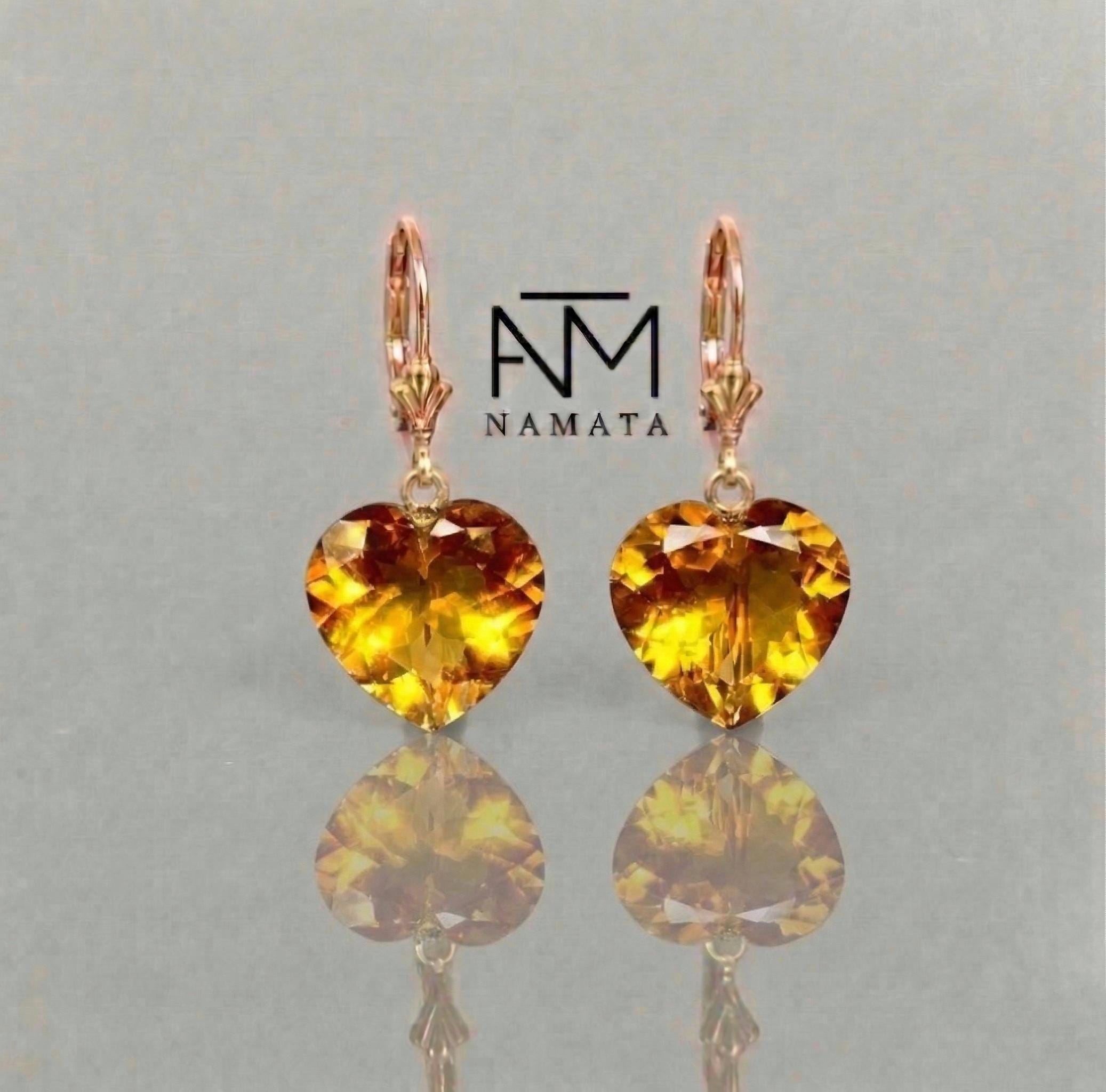 Gorgeous sparkly golden citrine earrings. The Faceted heart-shaped drops are flawless and have beautiful golden colors. The drops are attached to secure 24k gold vermeil/Sterling French ear wires or lever backs. The earrings are elegant and have a luxurious look.