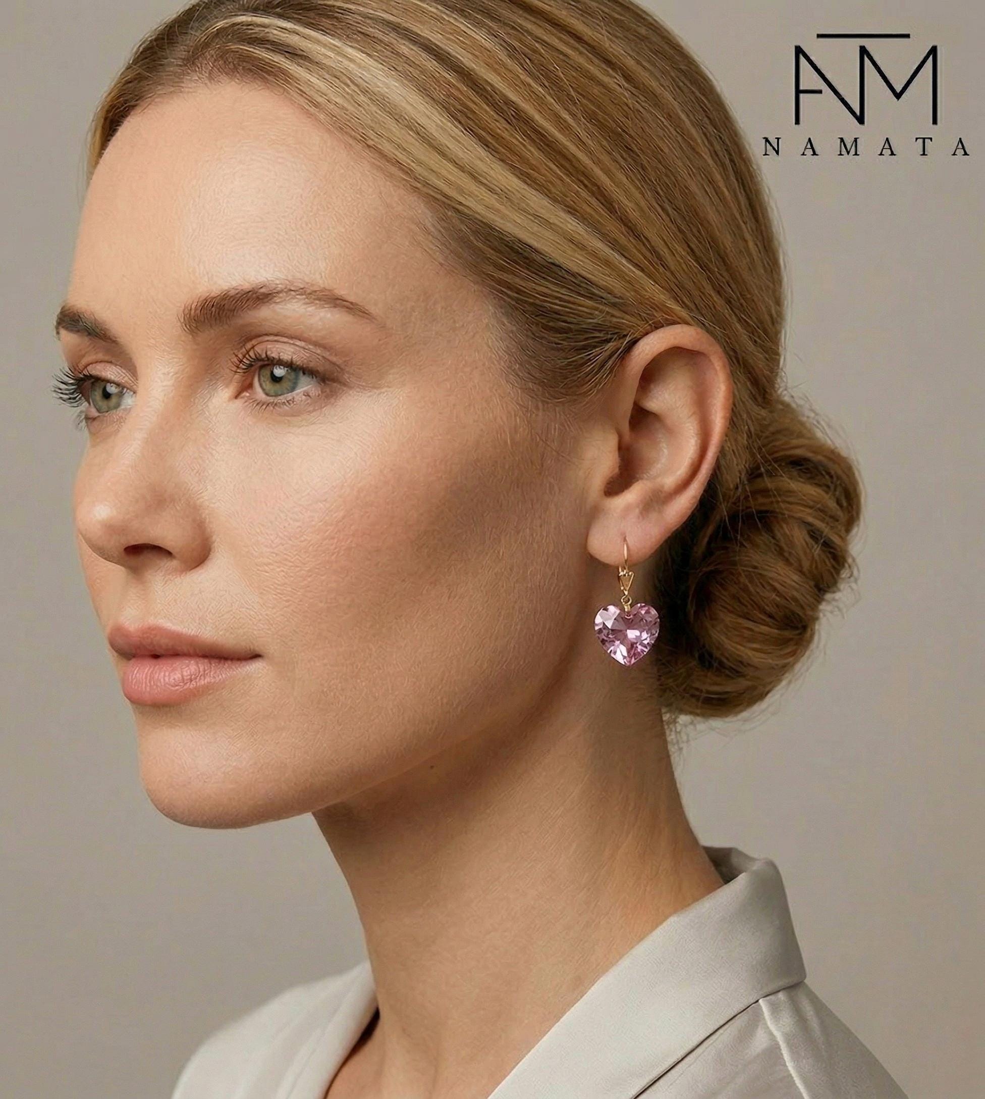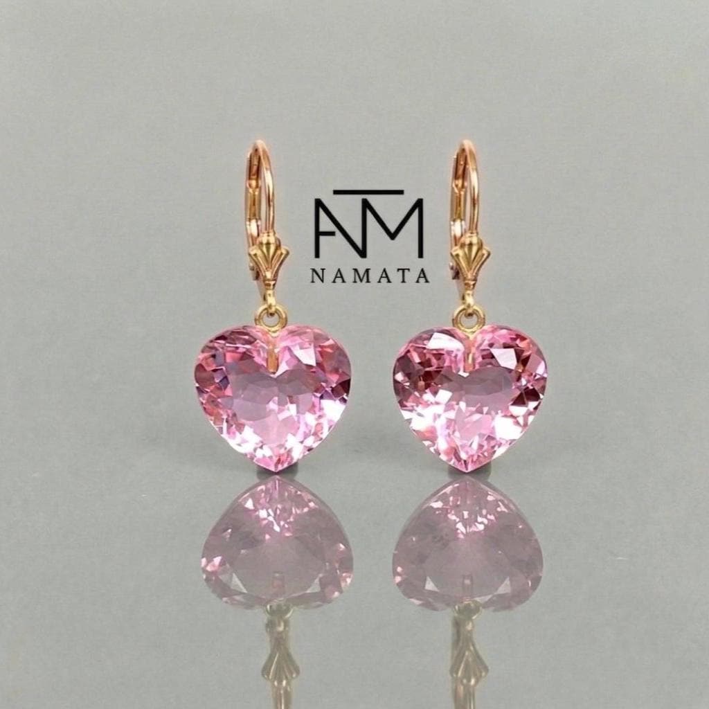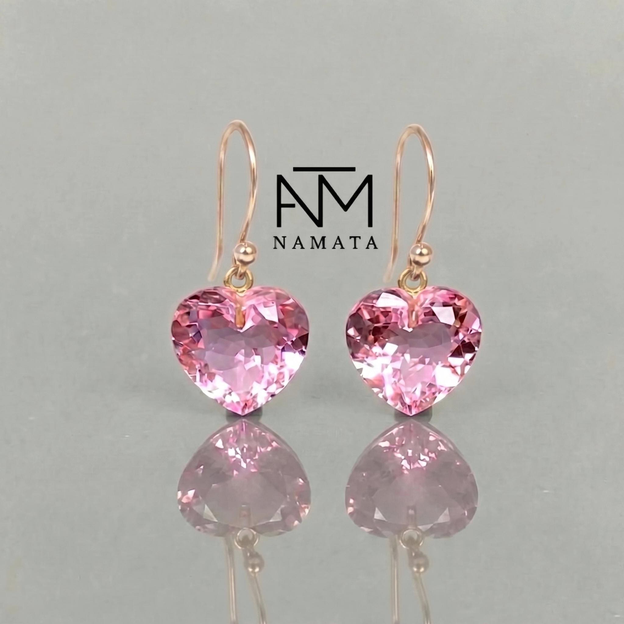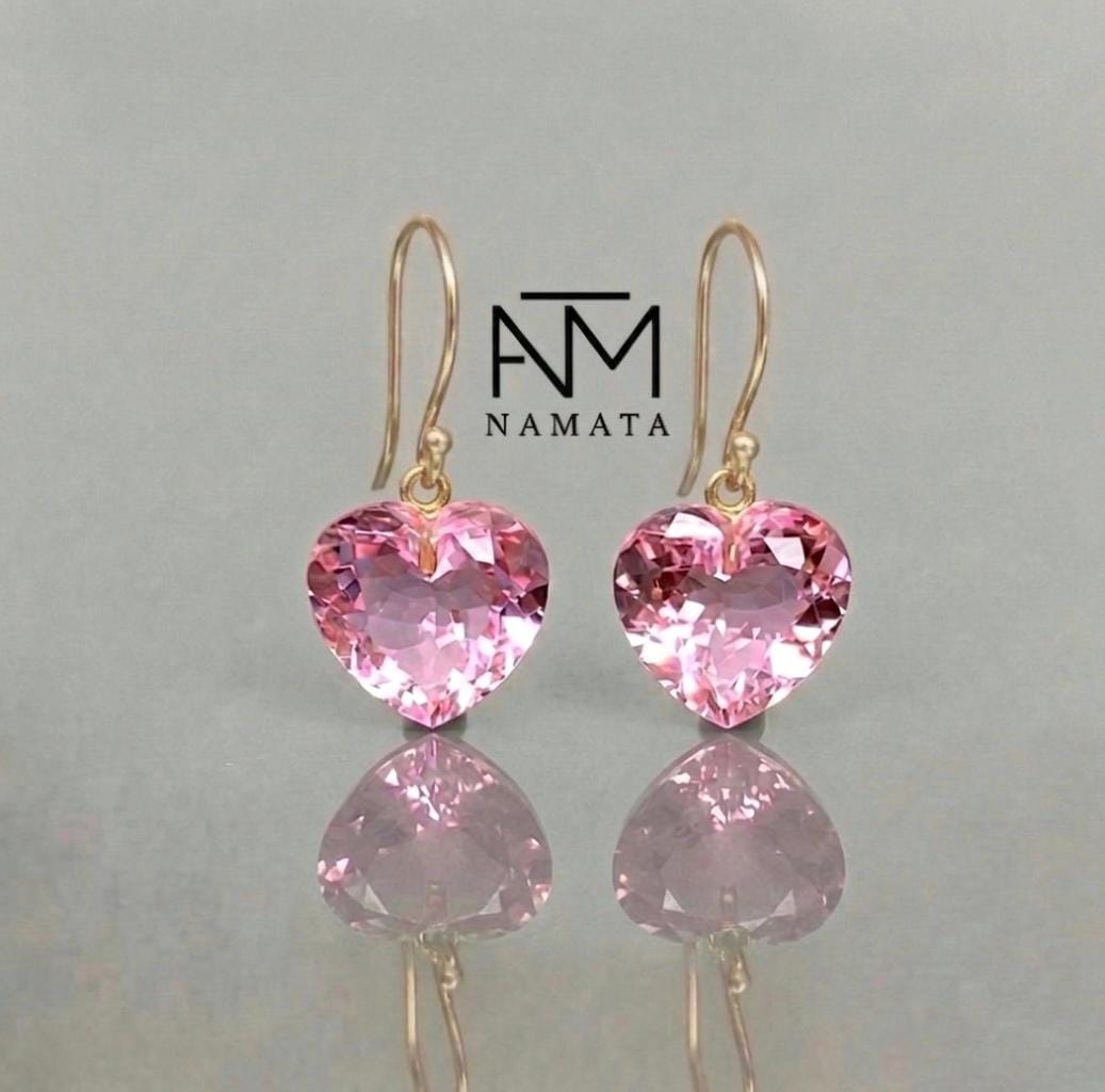 Perfect as romantic heart earrings, bridal jewelry, or a meaningful gift for her, these timeless pink gemstone earrings add a touch of elegance and femininity to any outfit — from everyday wear to special occasions.