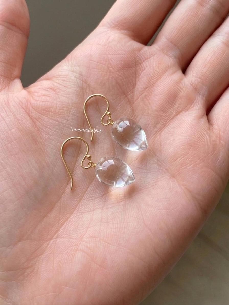 Beautiful, clear rock crystal quartz earrings. The fine, clear acorns are attached to 24K Gold vermeil ear wires. These are elegant, unique, and perfect earrings to go with any outfit.