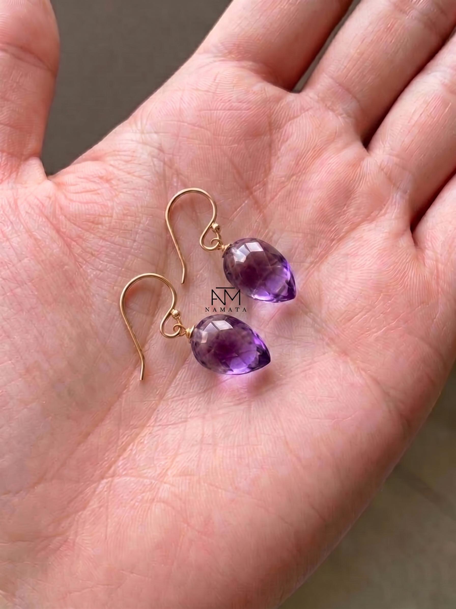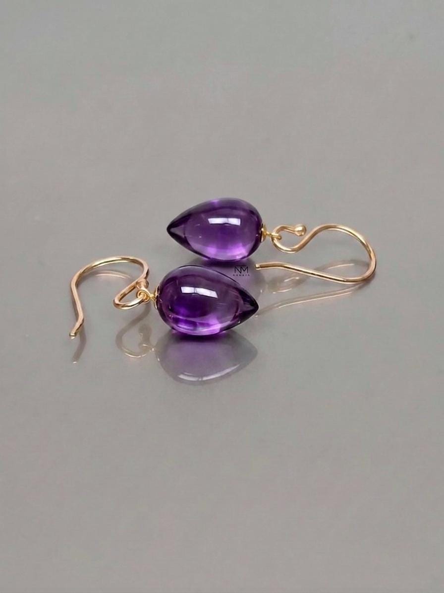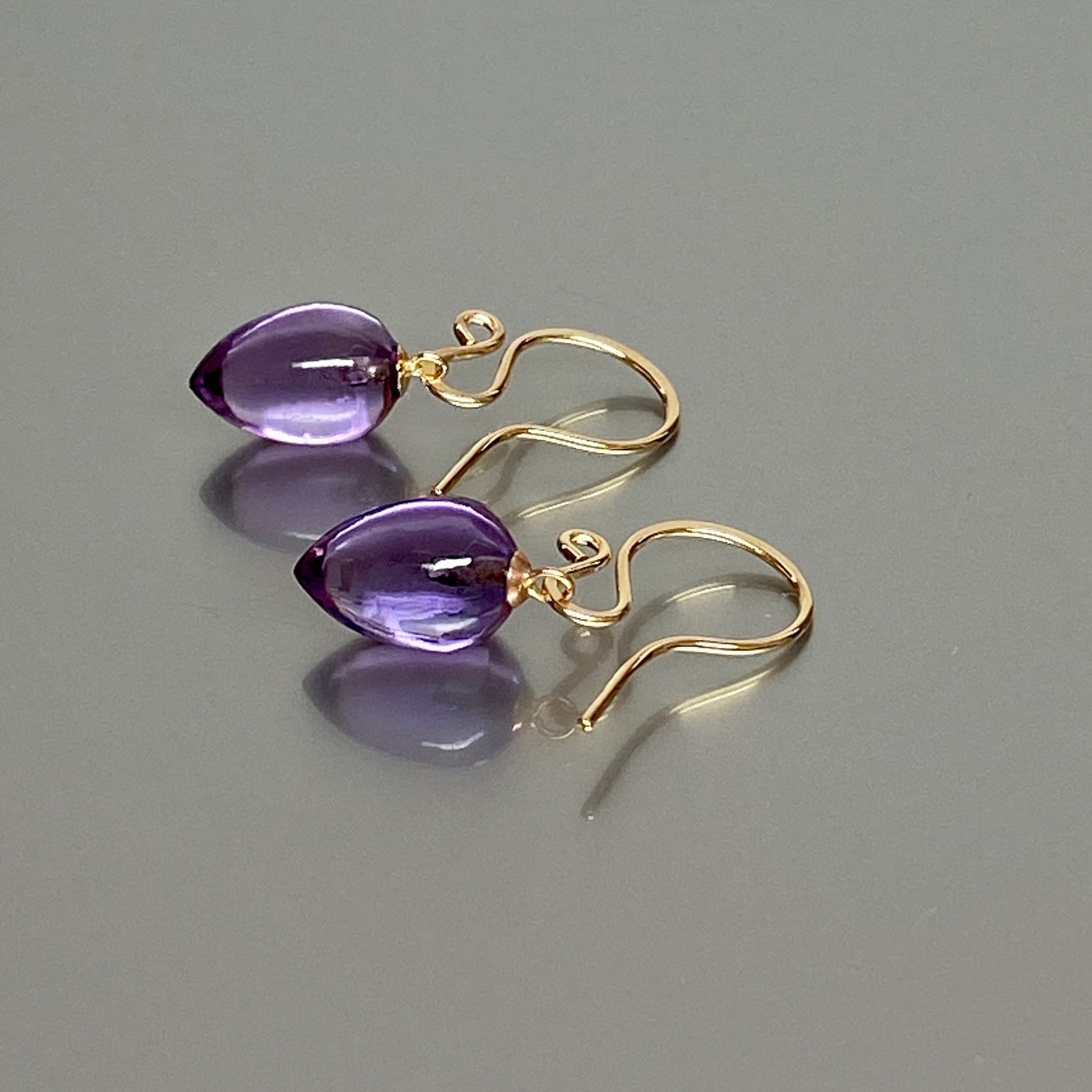 Stunning, juicy Brazilian Amethyst drop earrings. The Amethyst acorns have great clarity and reflect light beautifully.