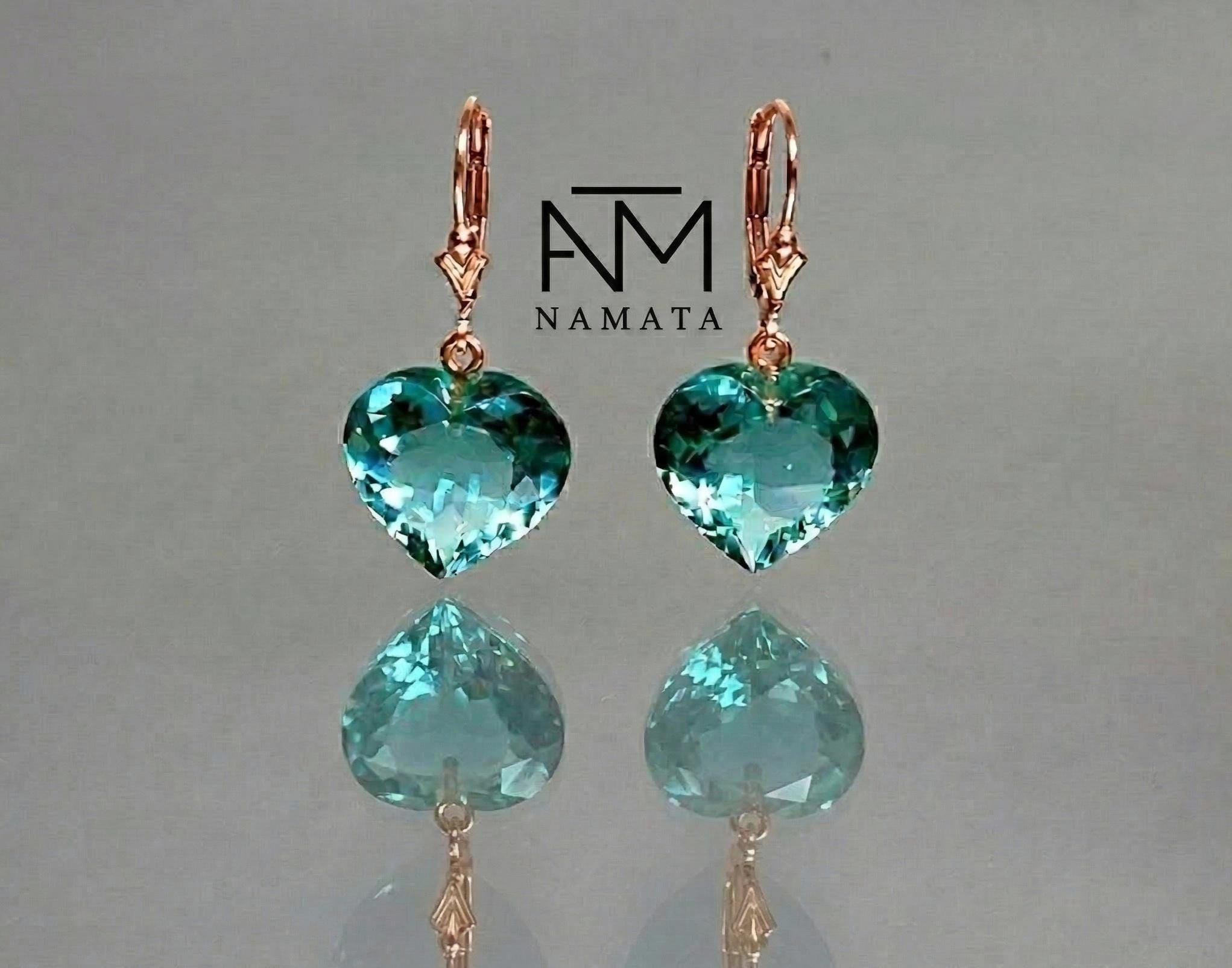 Featuring stunning heart-shaped gemstones in a vibrant blue-green hue, these earrings capture the rare, luminous glow that makes paraiba tourmaline so unique and sought after. The faceted stones reflect light beautifully, creating a radiant sparkle full of depth and brilliance.