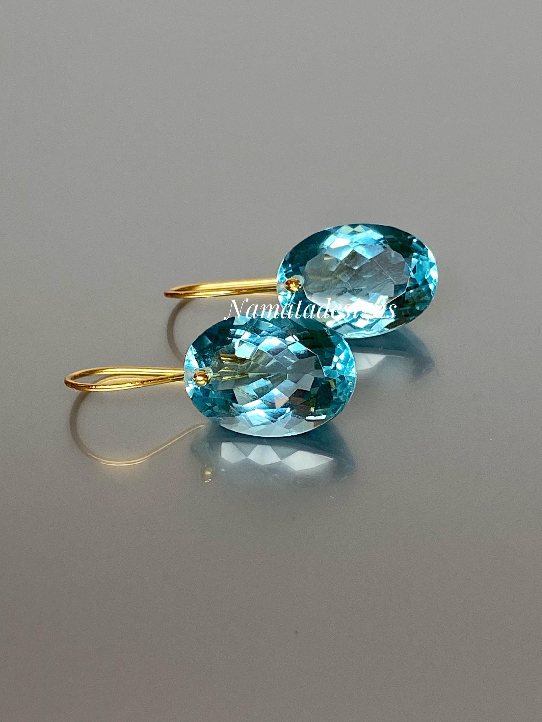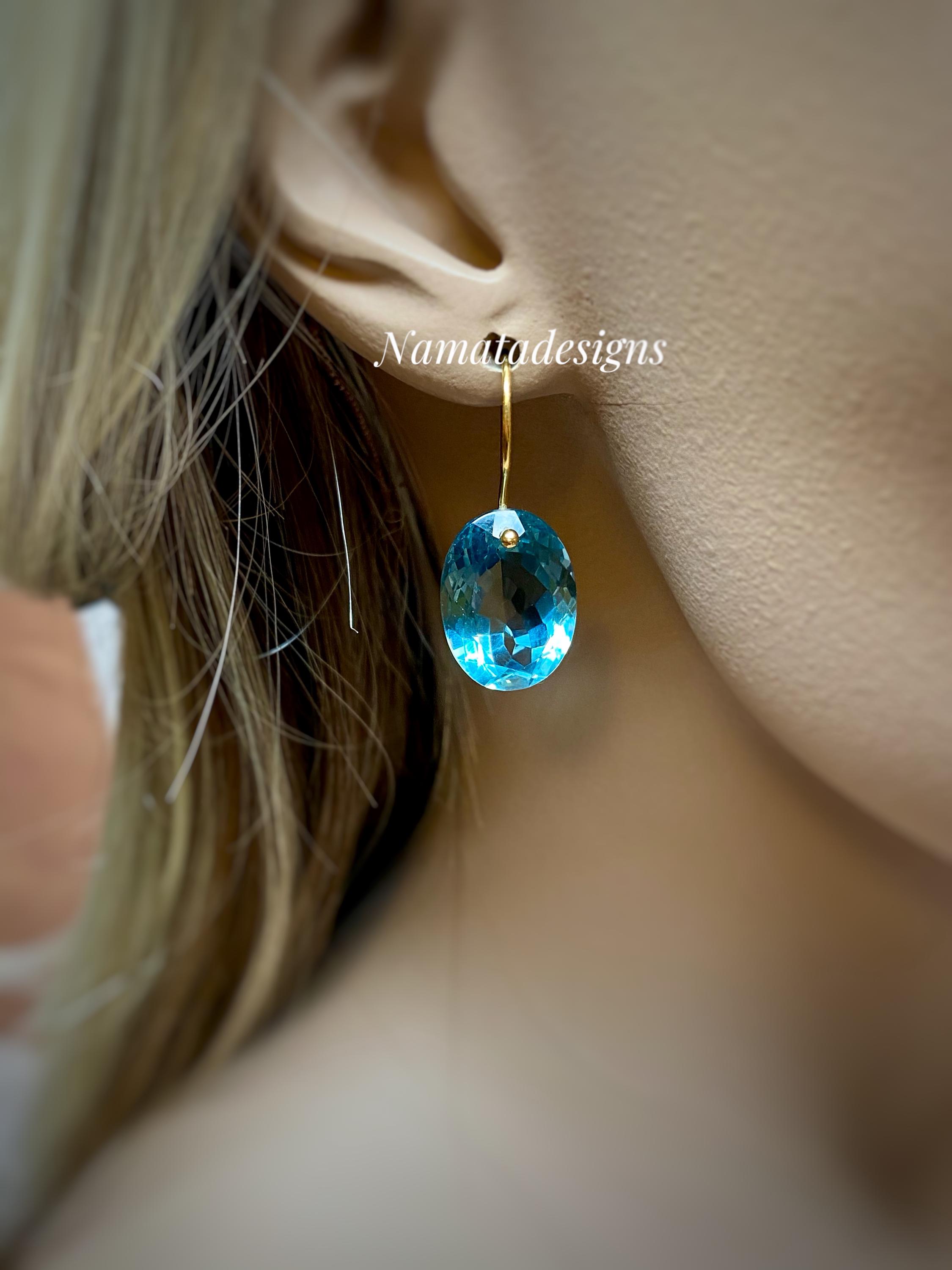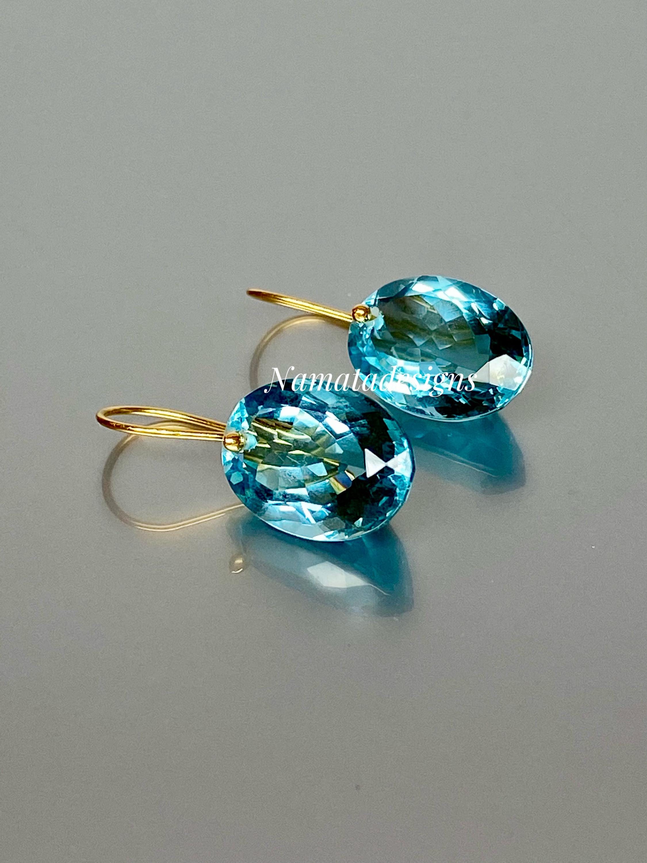Gorgeous sparkly sky blue aquamarine earrings. The Faceted oval drops are flawless and have a beautiful sky blue color. The drops are attached to 24k gold vermeil/14K SOLID GOLD ear wires. The earrings are elegant and have a lux look.