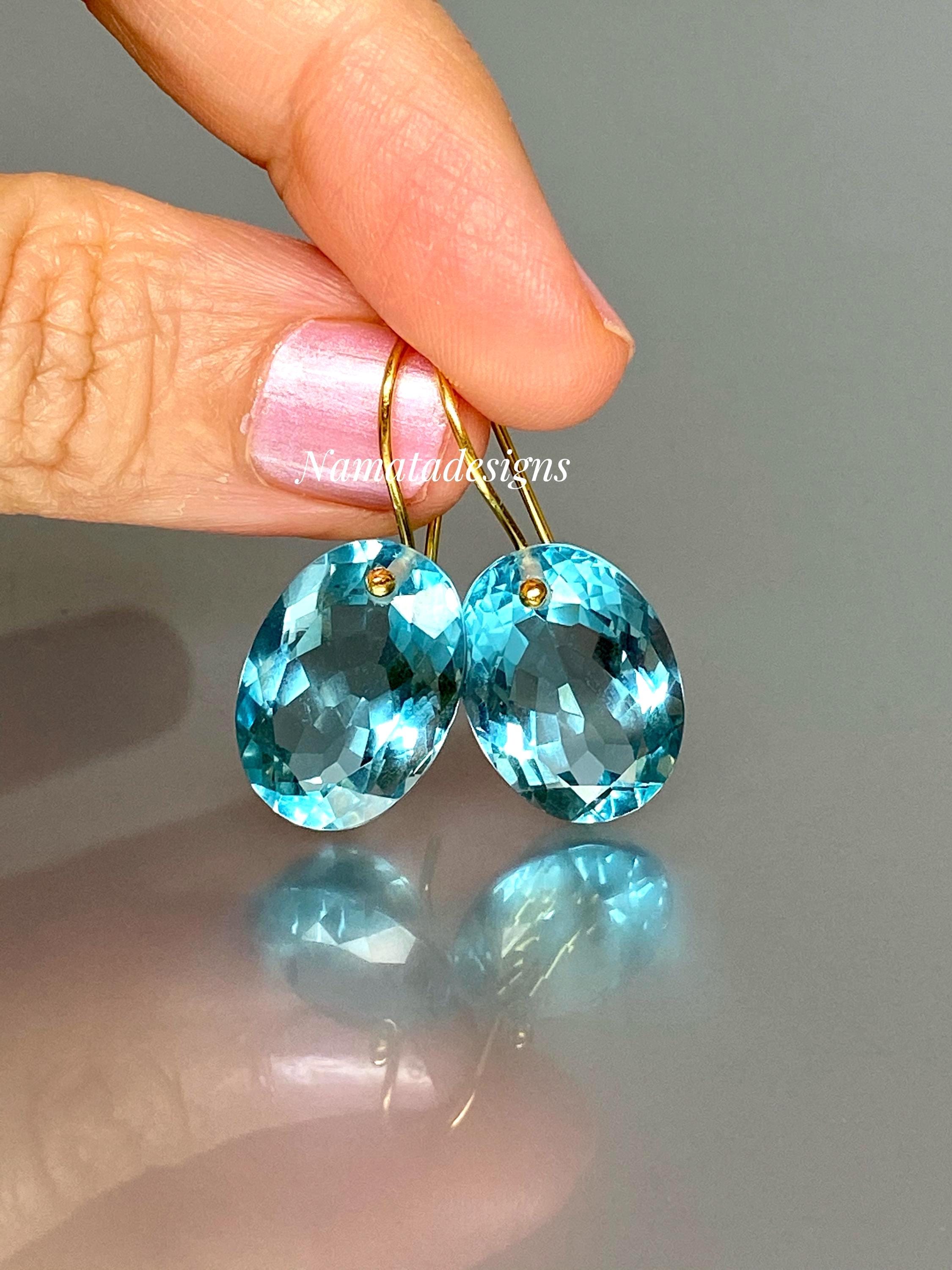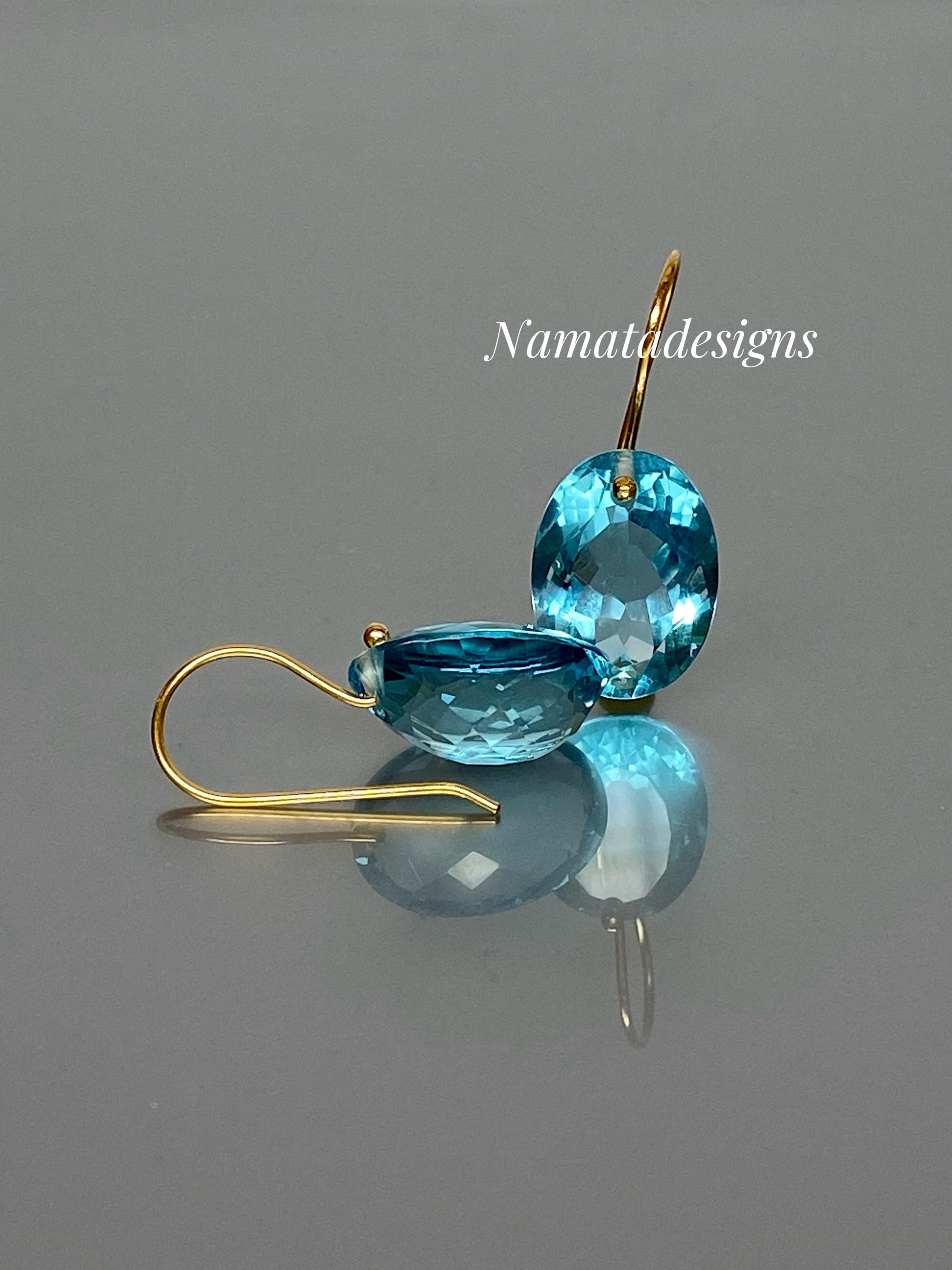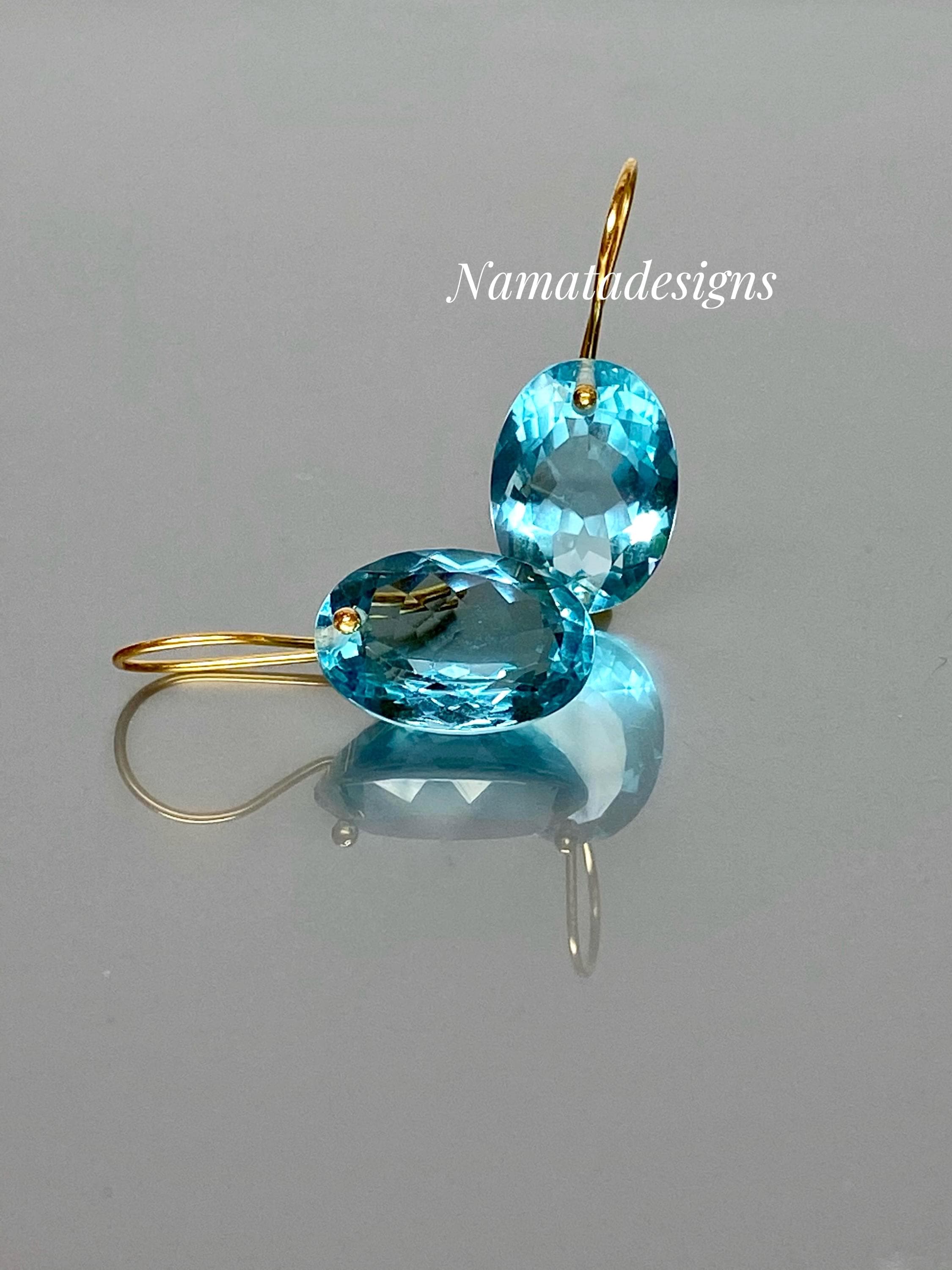 Gorgeous sparkly sky blue aquamarine earrings. The Faceted oval drops are flawless and have a beautiful sky blue color. The drops are attached to 24k gold vermeil/14K SOLID GOLD ear wires. The earrings are elegant and have a lux look.