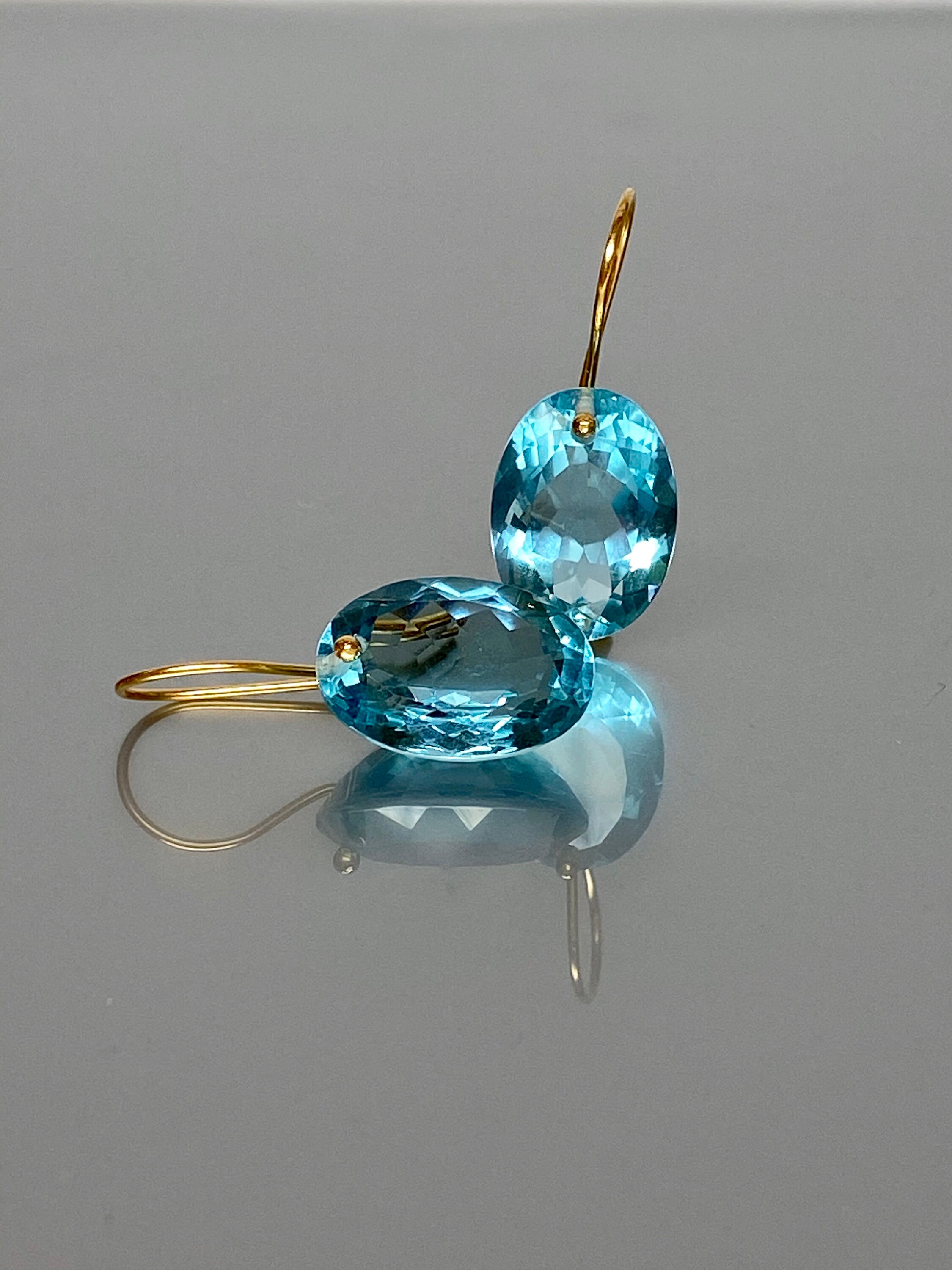 Gorgeous sparkly sky blue aquamarine earrings. The Faceted oval drops are flawless and have a beautiful sky blue color. The drops are attached to 24k gold vermeil/14K SOLID GOLD ear wires. The earrings are elegant and have a lux look.