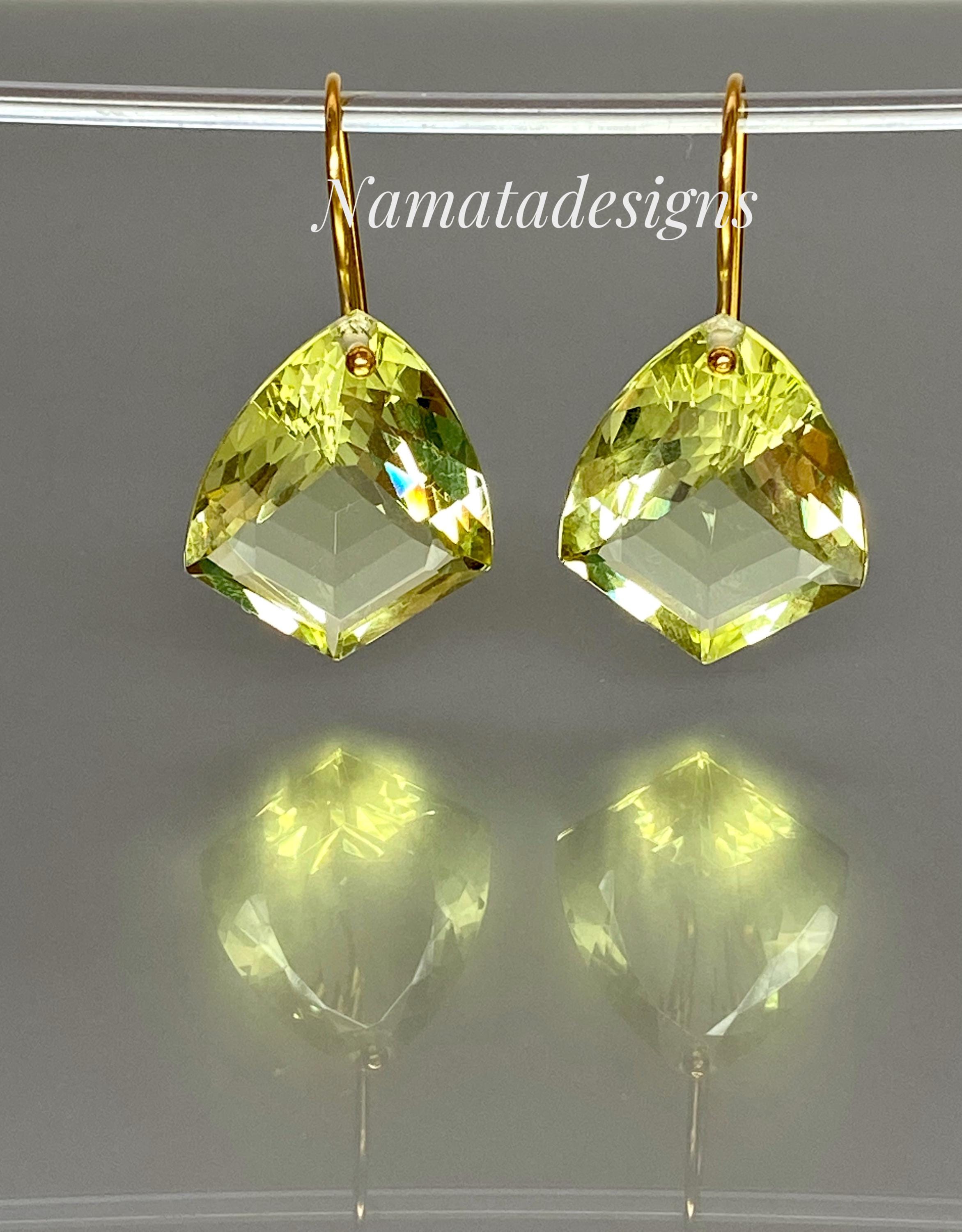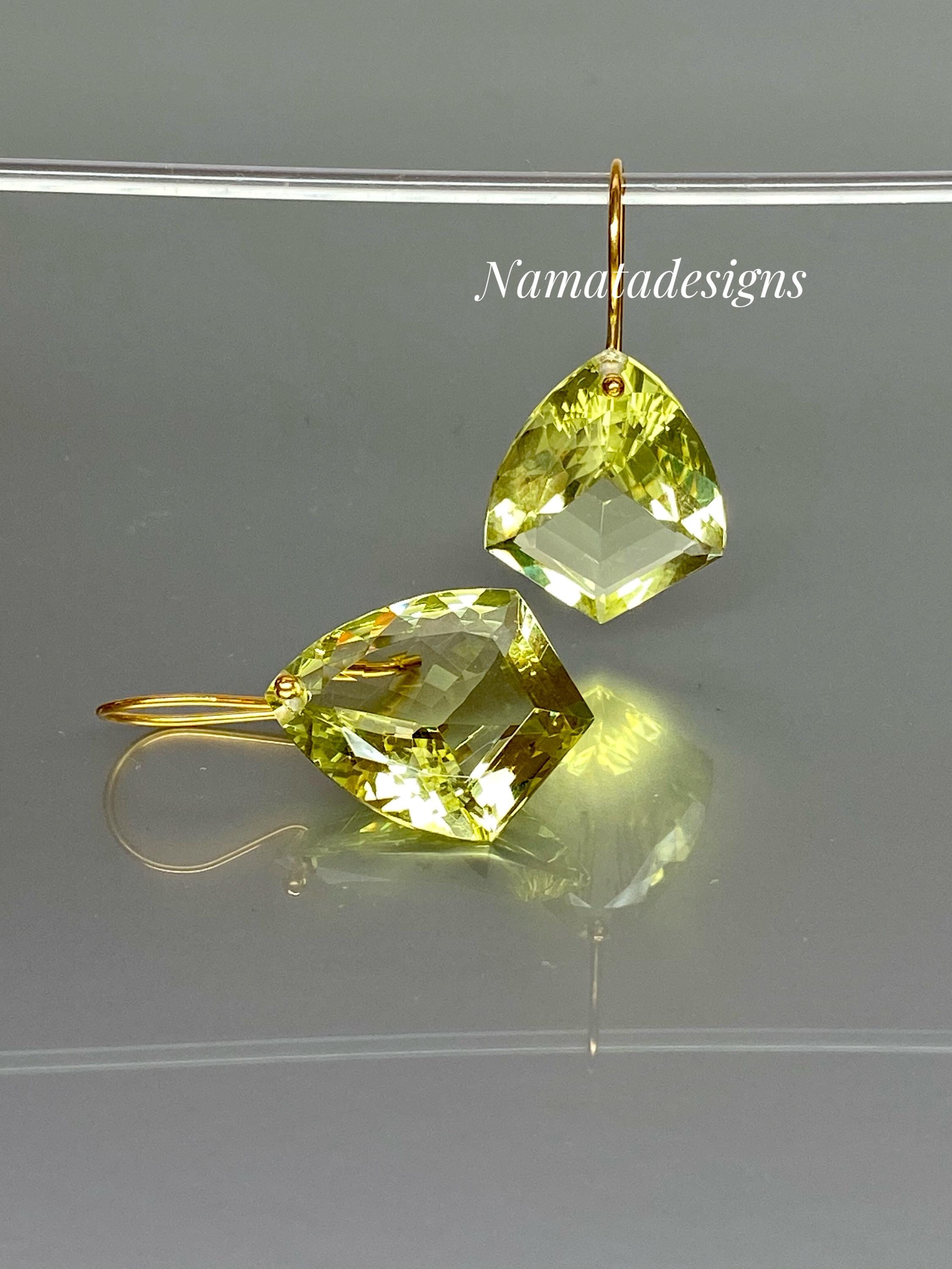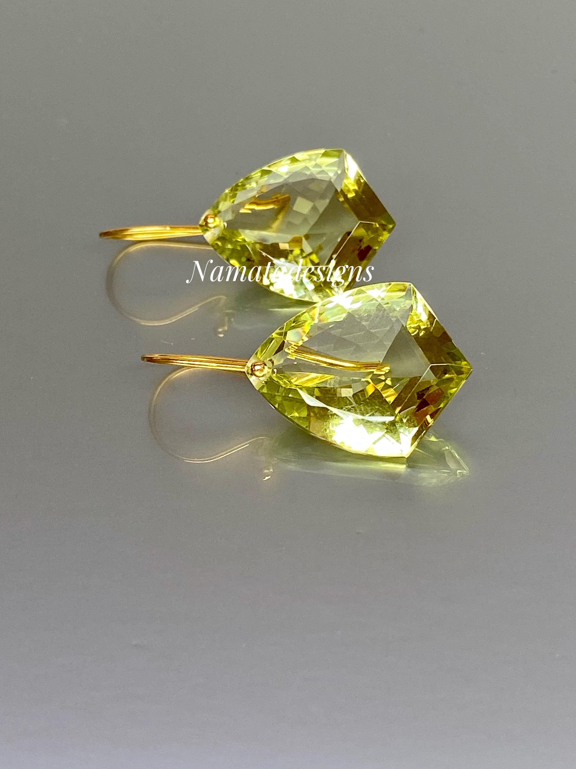 Gorgeous sparkly lemon quartz statement Earrings earrings. The Faceted shield shape drops are flawless and have a beautiful bright yellow color. The earrings are elegant and have a luxurious look.